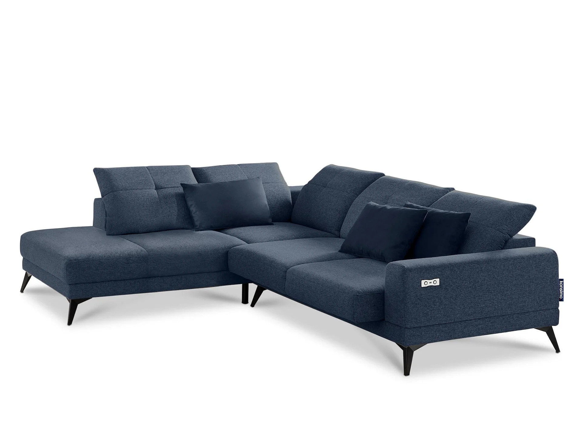 Eckgarnitur 4/5 Sitzer mit elek. Relaxfunktion - blau - DAVIDI