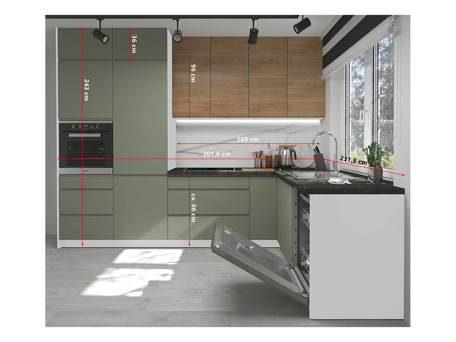 WINKELKÜCHE AVELLINO reed green / Pembroke / weiß 10-teilig mit Arbeitsplatte