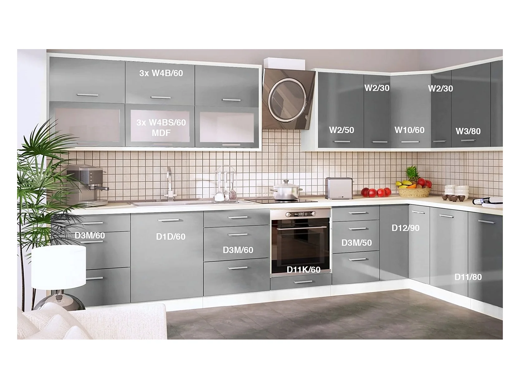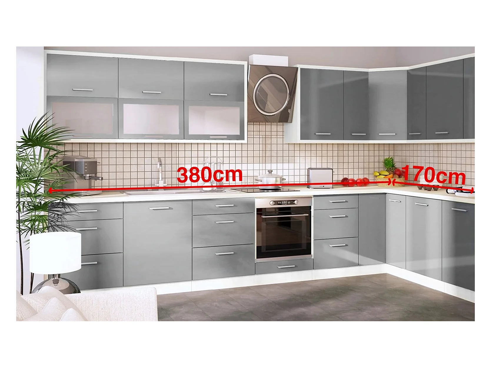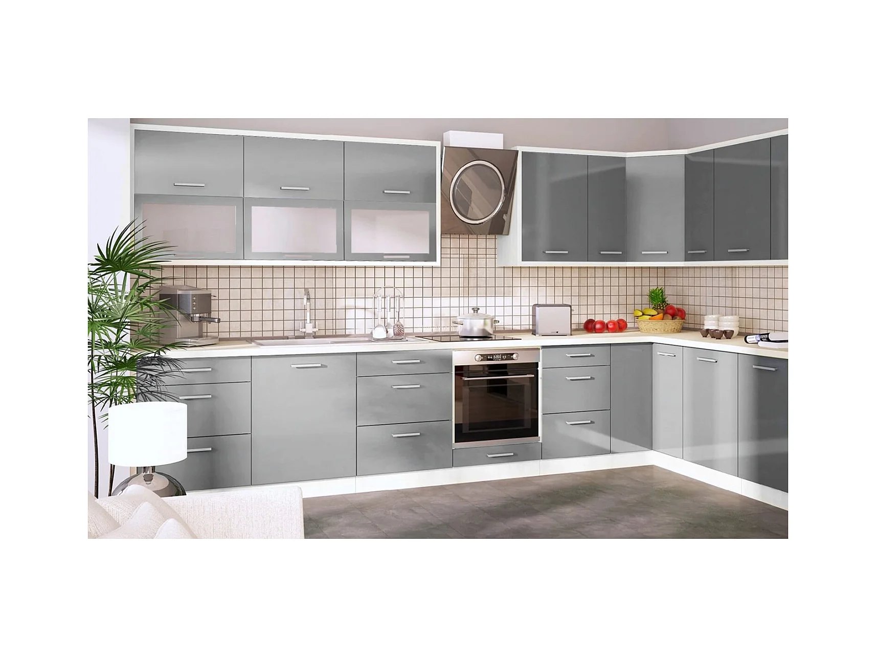 WINKELKÜCHE Brerra weiß / fenstergrau hochglanz 18-teilig