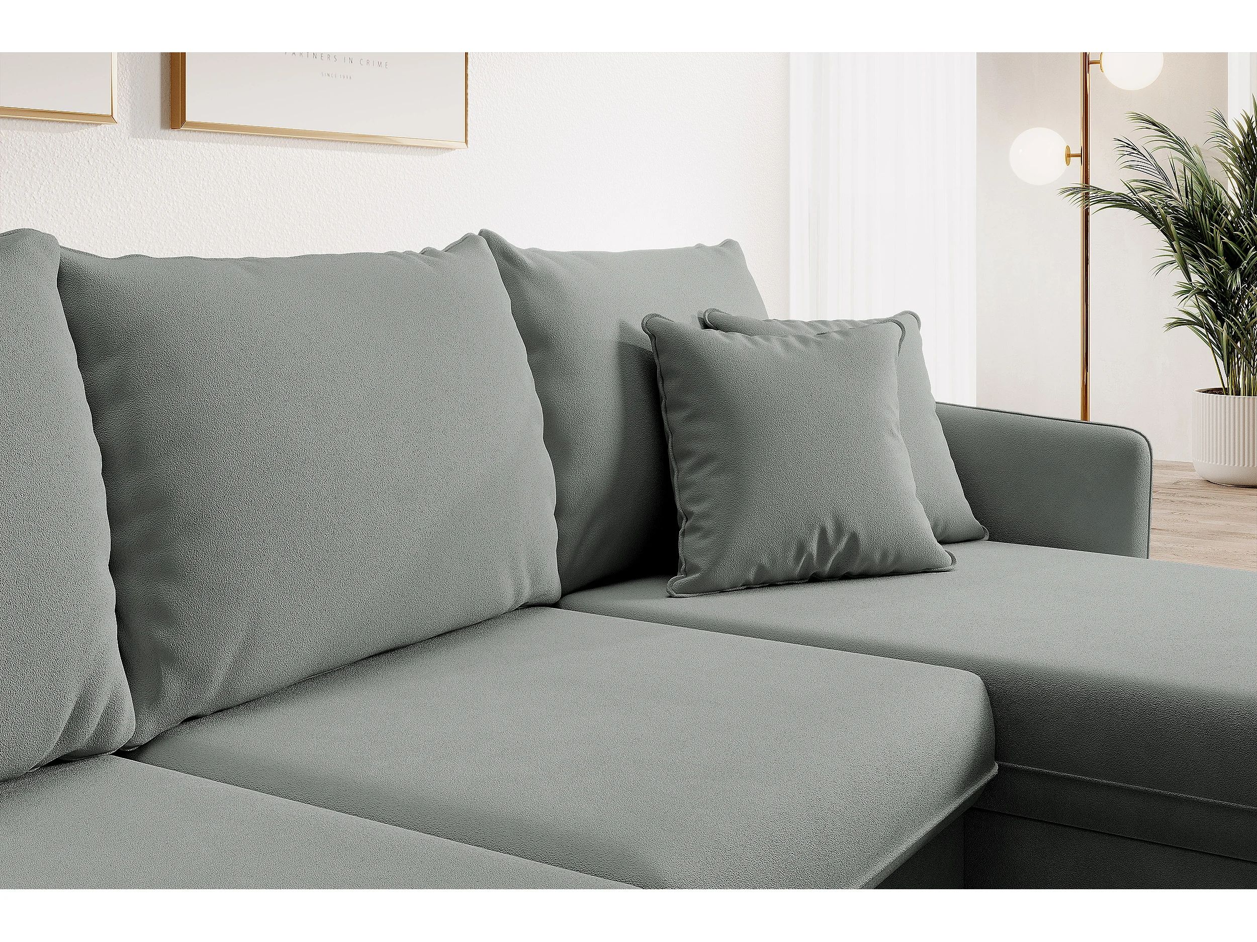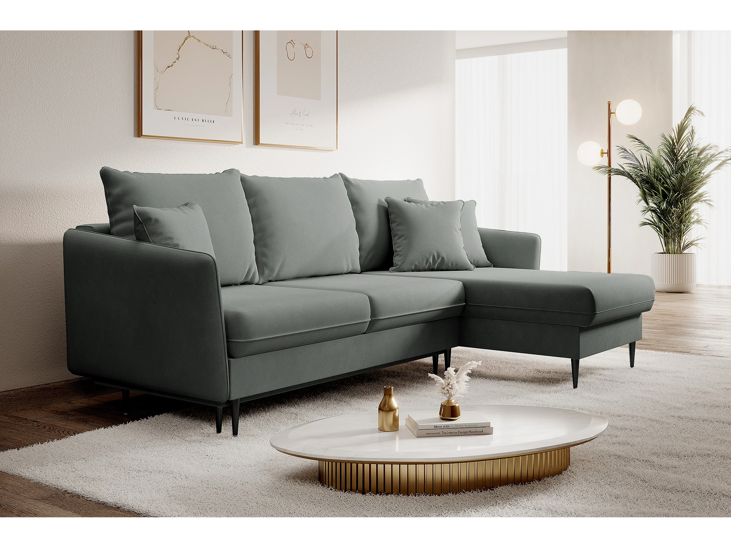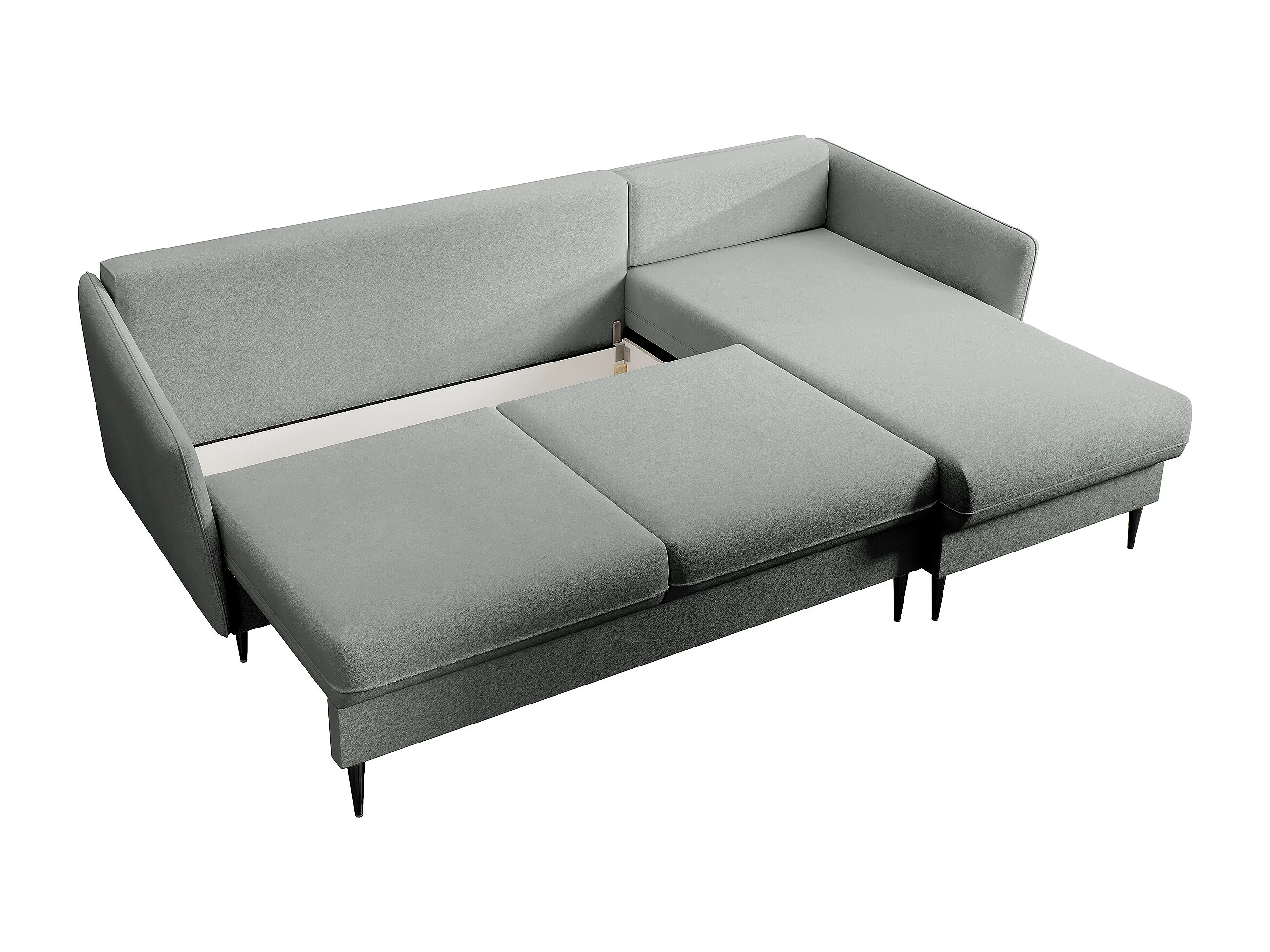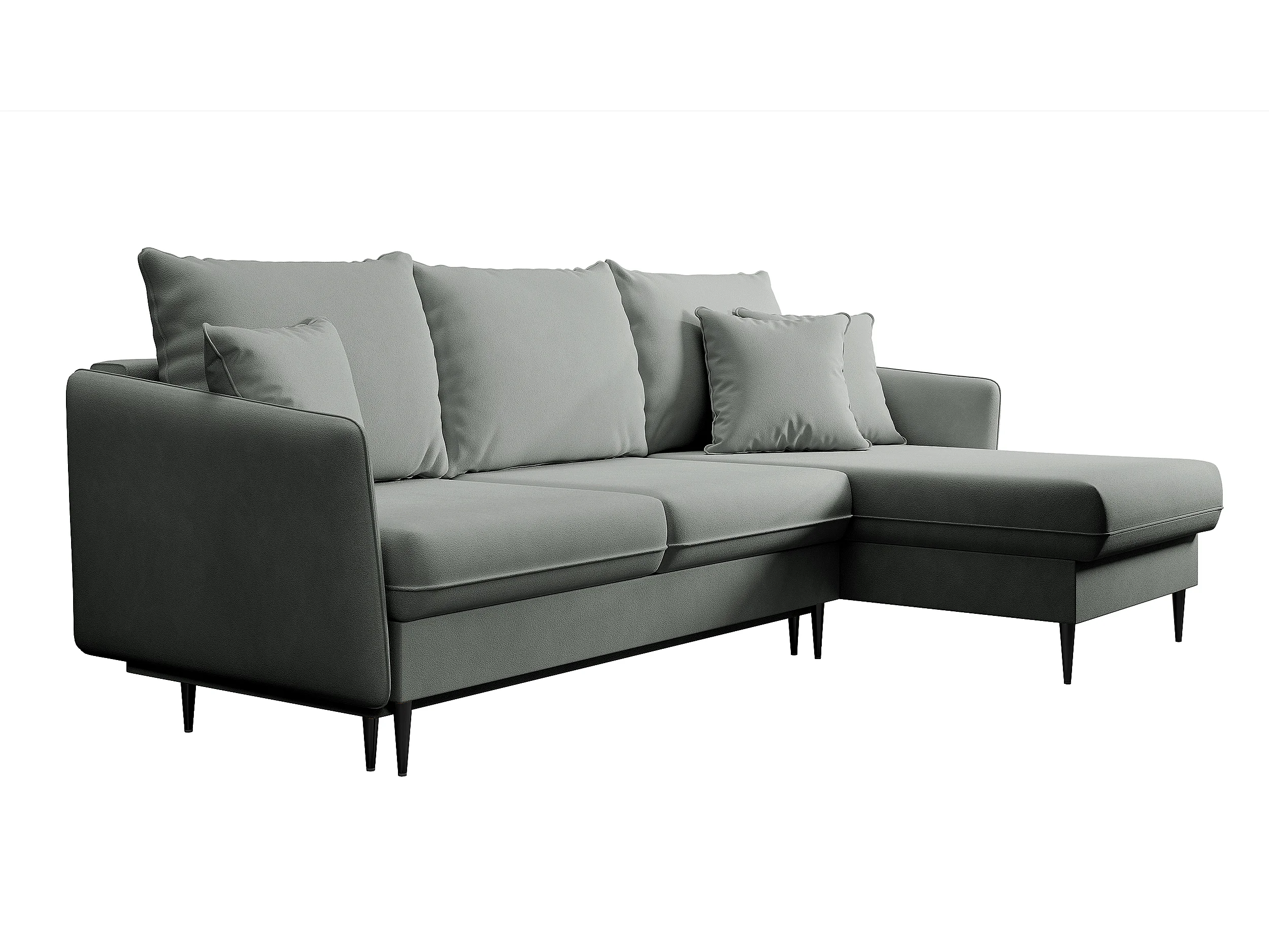 Ecksofa - 223 cm - mit Schlaffunktion - hydrophober Samt - grau - schwarze Füße - VOLIO
