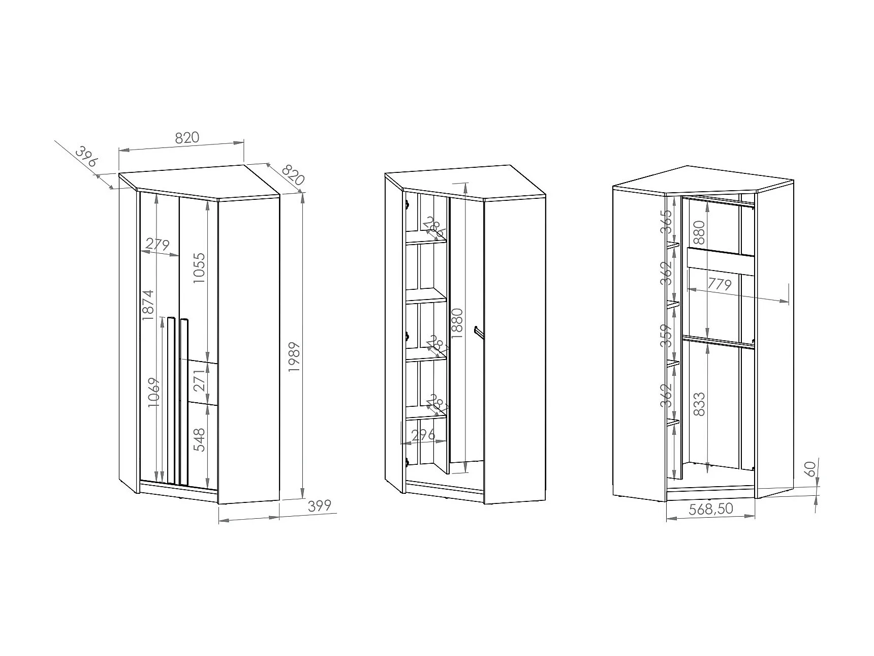 ECKSCHRANK Drop Fjord Buche / weiß / grau 82 / 82 / 199cm