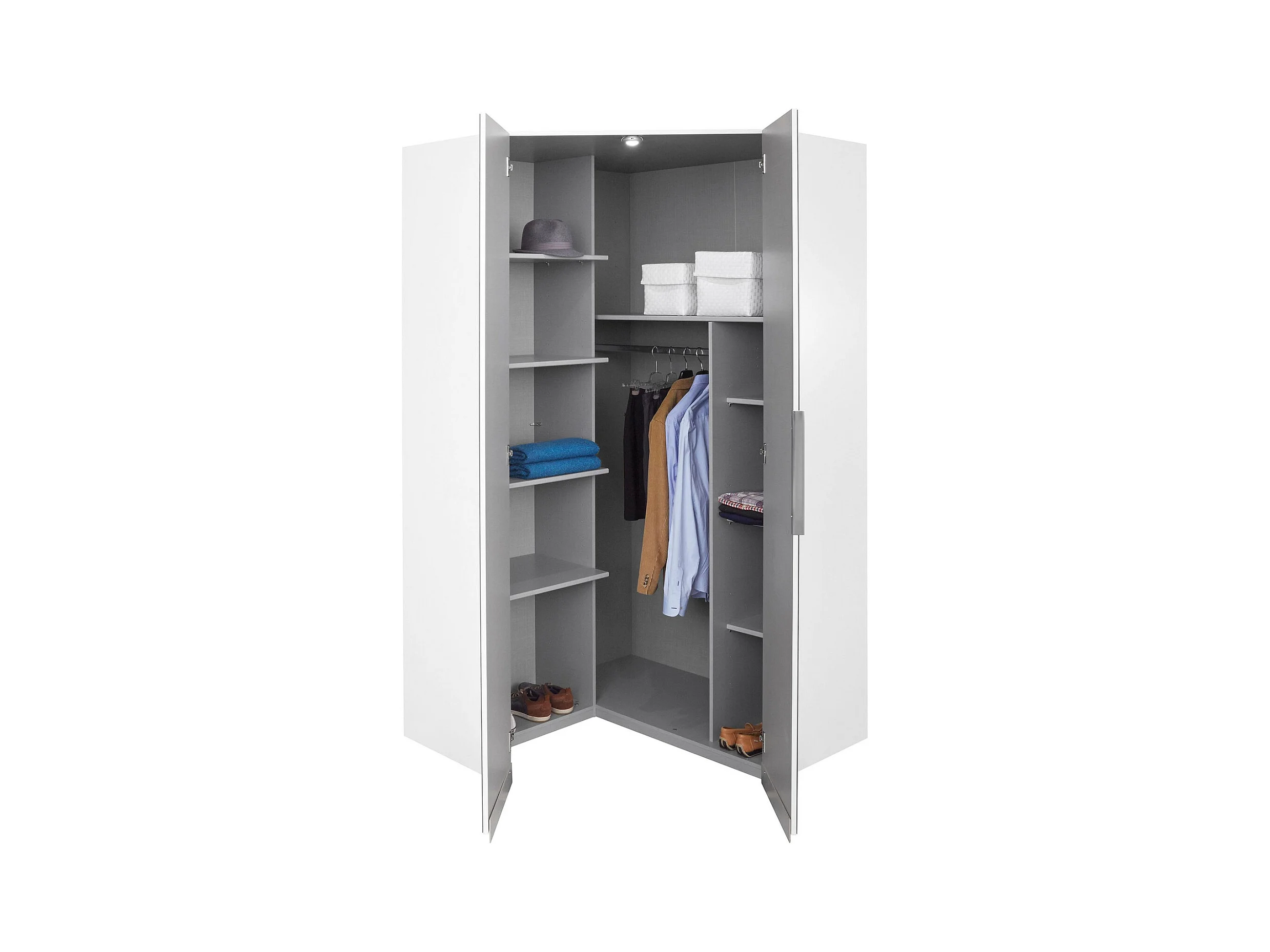 ECKSCHRANK Level weiß / Grauglas 120 / 120 / 216cm