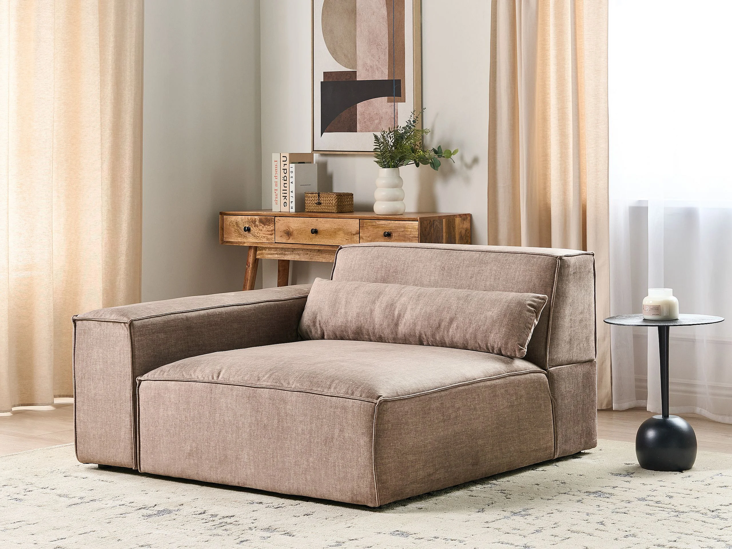 Modul Ecksessel Stoff braun Armlehne rechts Dekokissen Eckteil Skandi Hellnar