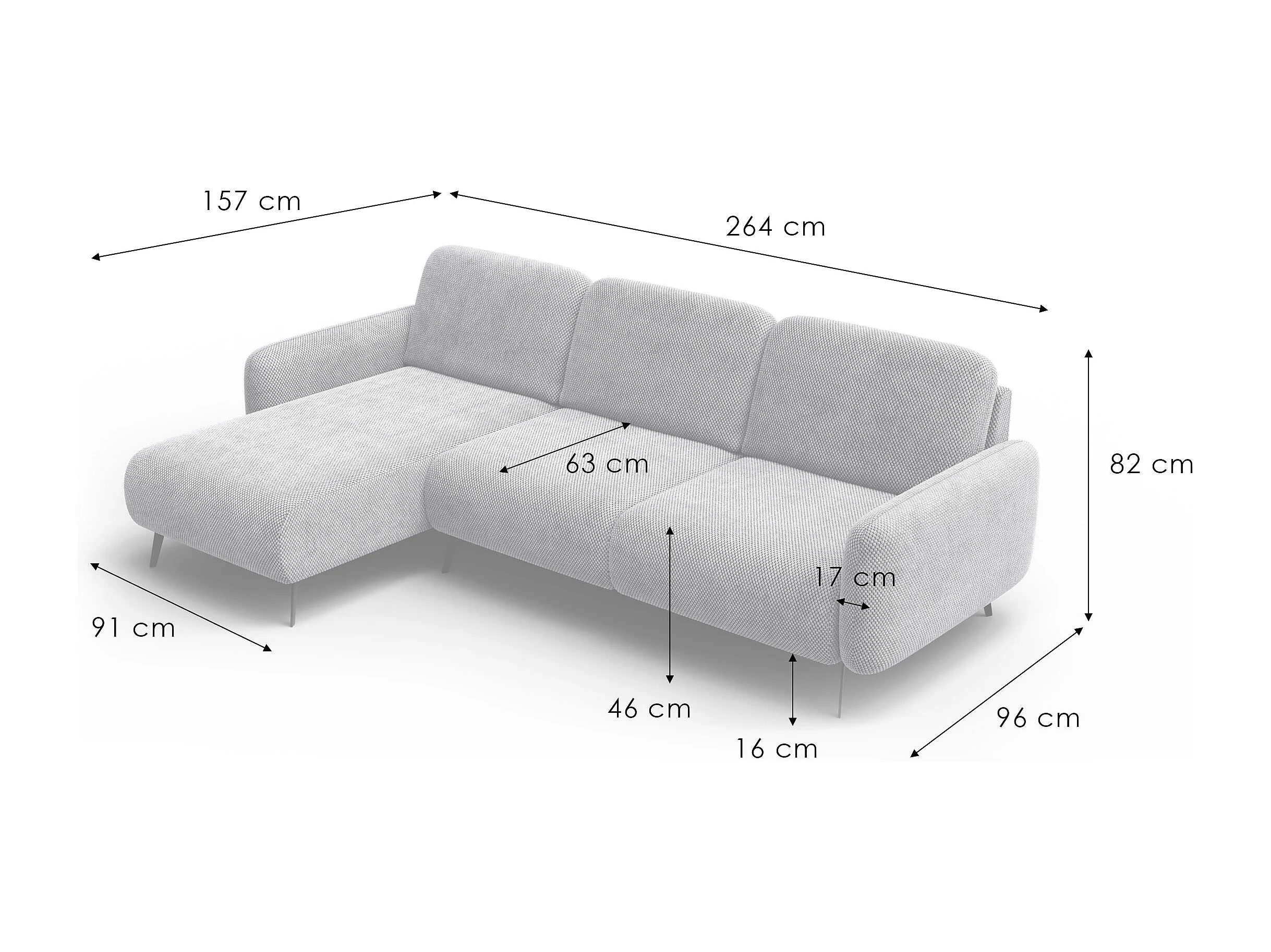 Ecksofa 4-Sitzer links FEBE, hellgrau