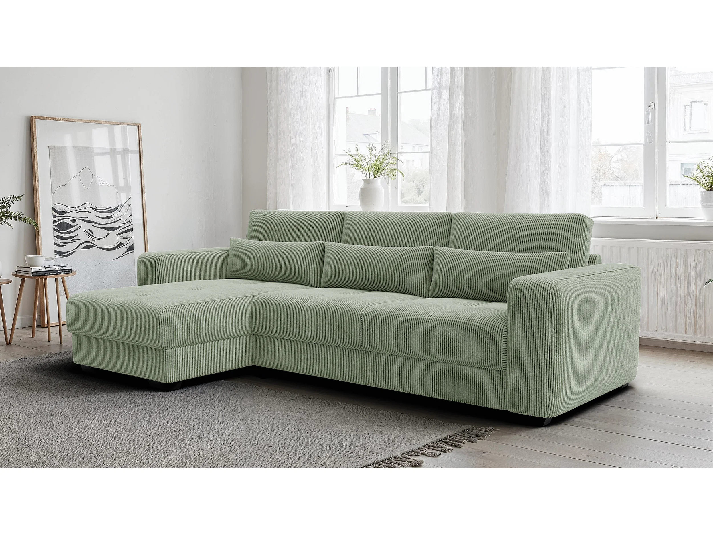 Ecksofa 4-Sitzer links OLI, salbeigrün