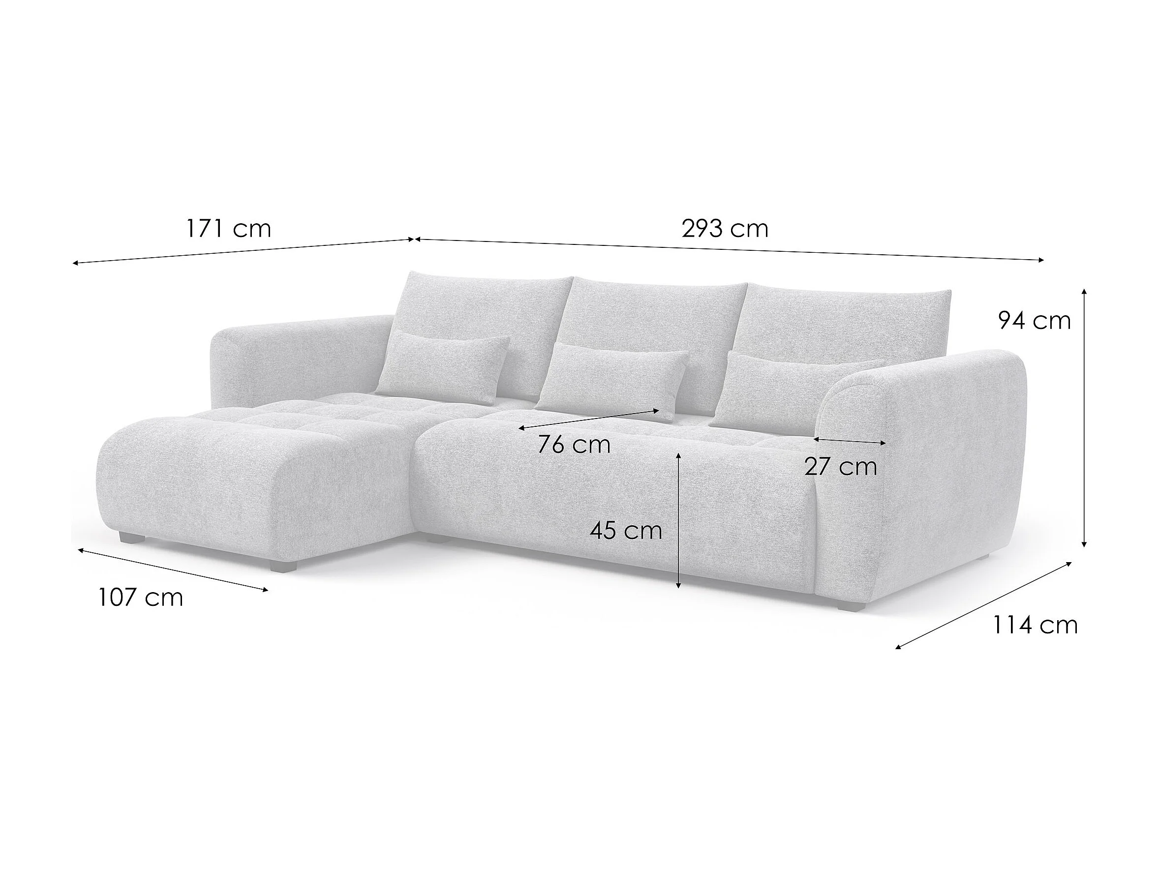 Ecksofa 4-Sitzer links SORENO, dunkelgrau