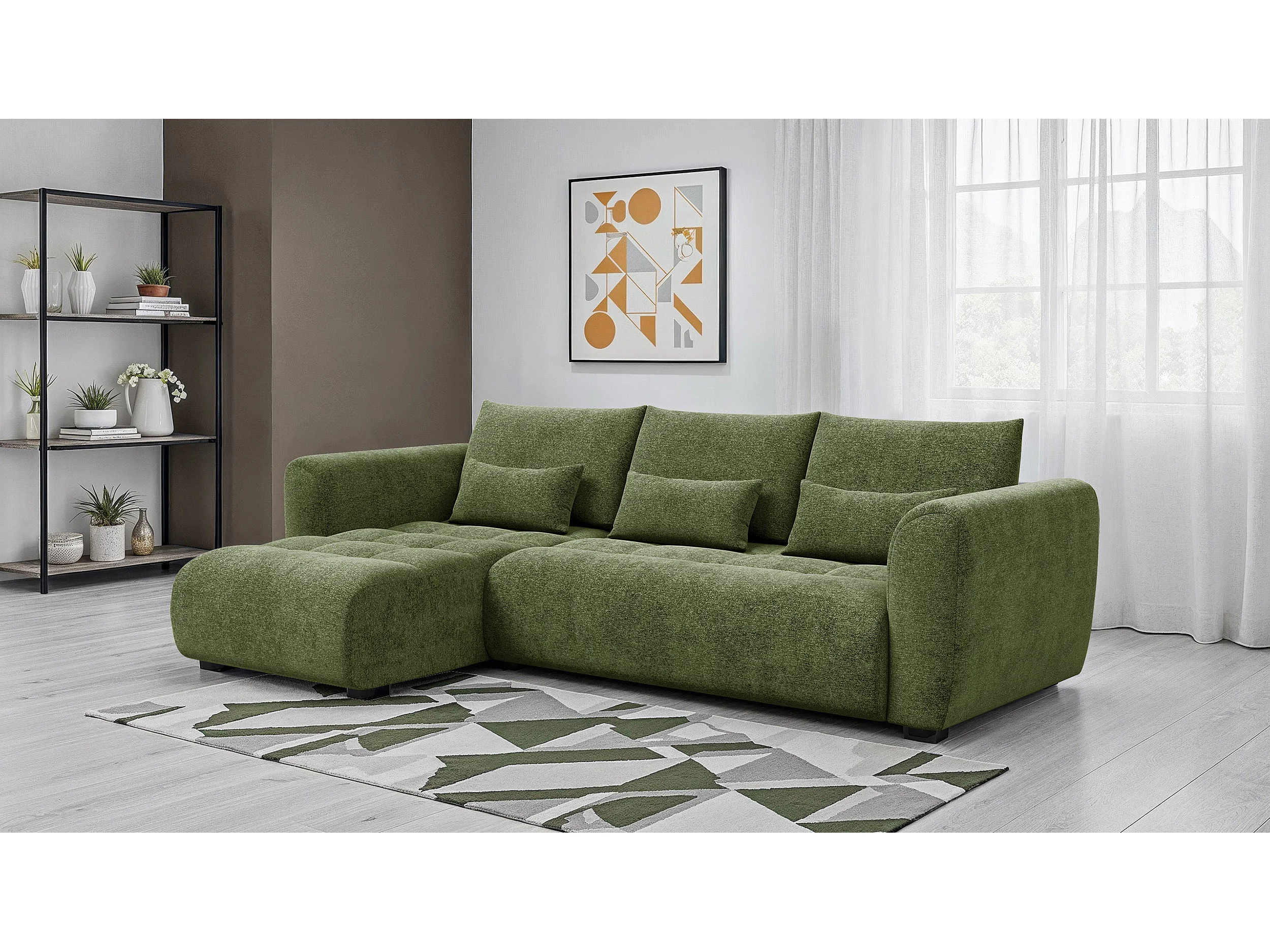 Ecksofa 4-Sitzer links SORENO, dunkelgrün