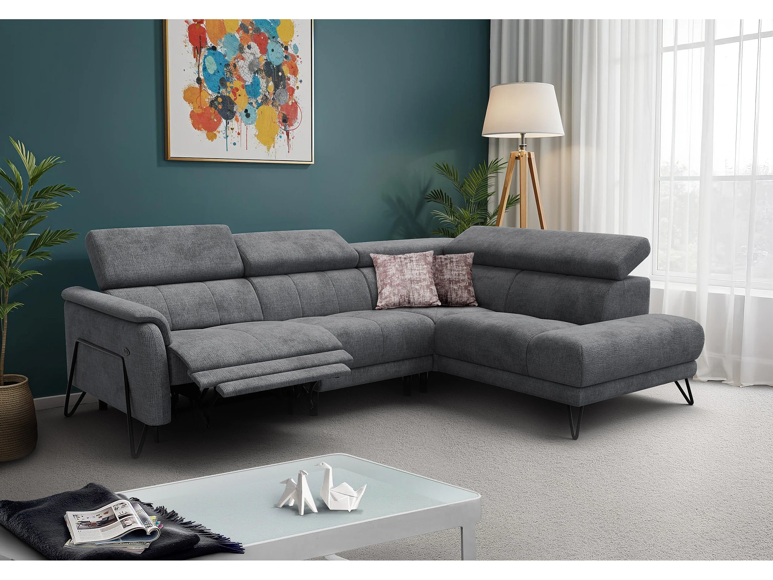 Ecksofa 5-Sitzer mit Relax RODEN, dunkelgrau