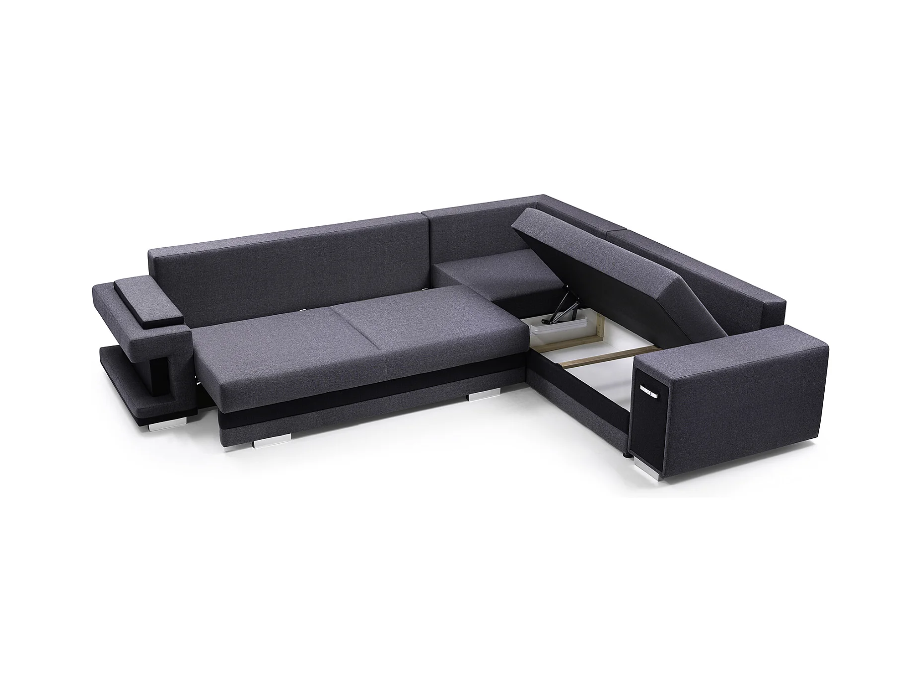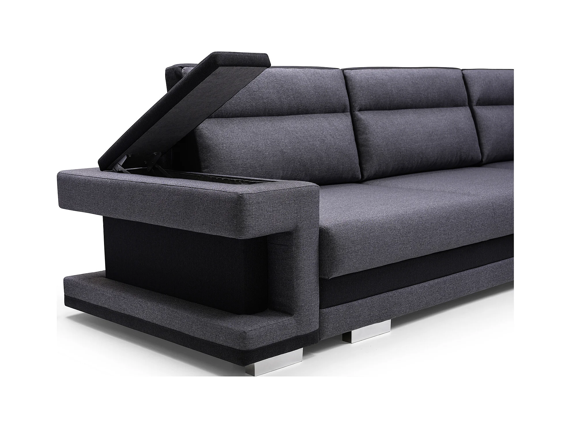 Ecksofa A2 Mit Schlaffunktion Und Bettkasten, Schlafsofa Mit Stauraum, Anpassbare Seiten, Modernes Design Linke Seite, 305x272x90 cm, HELLGRAU