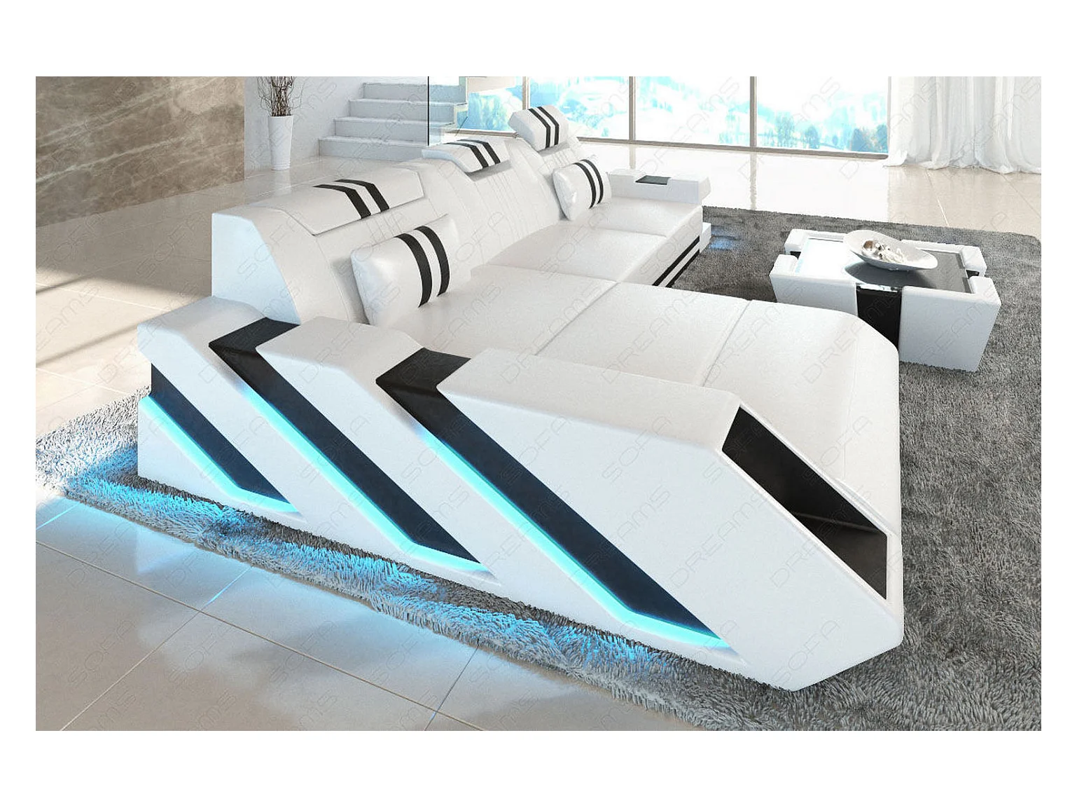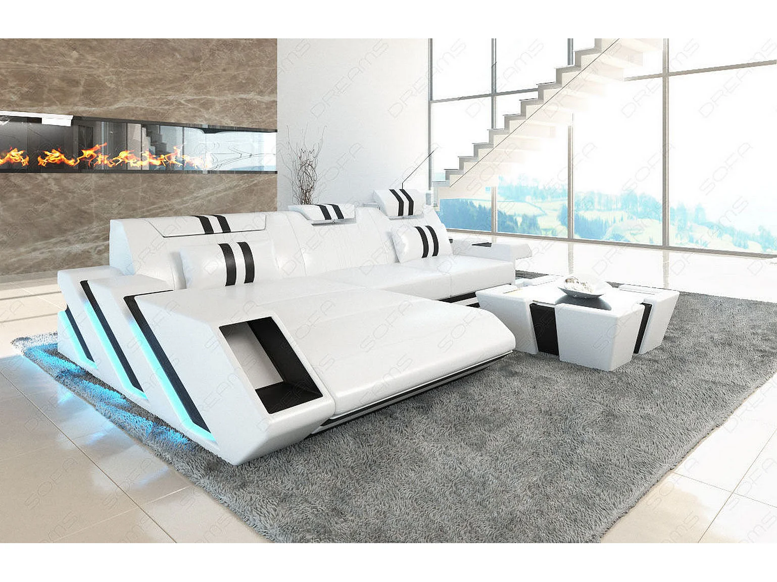 Leder Ecksofa Apollonia L Form Premium Kunstleder Weiß Schwarz Links