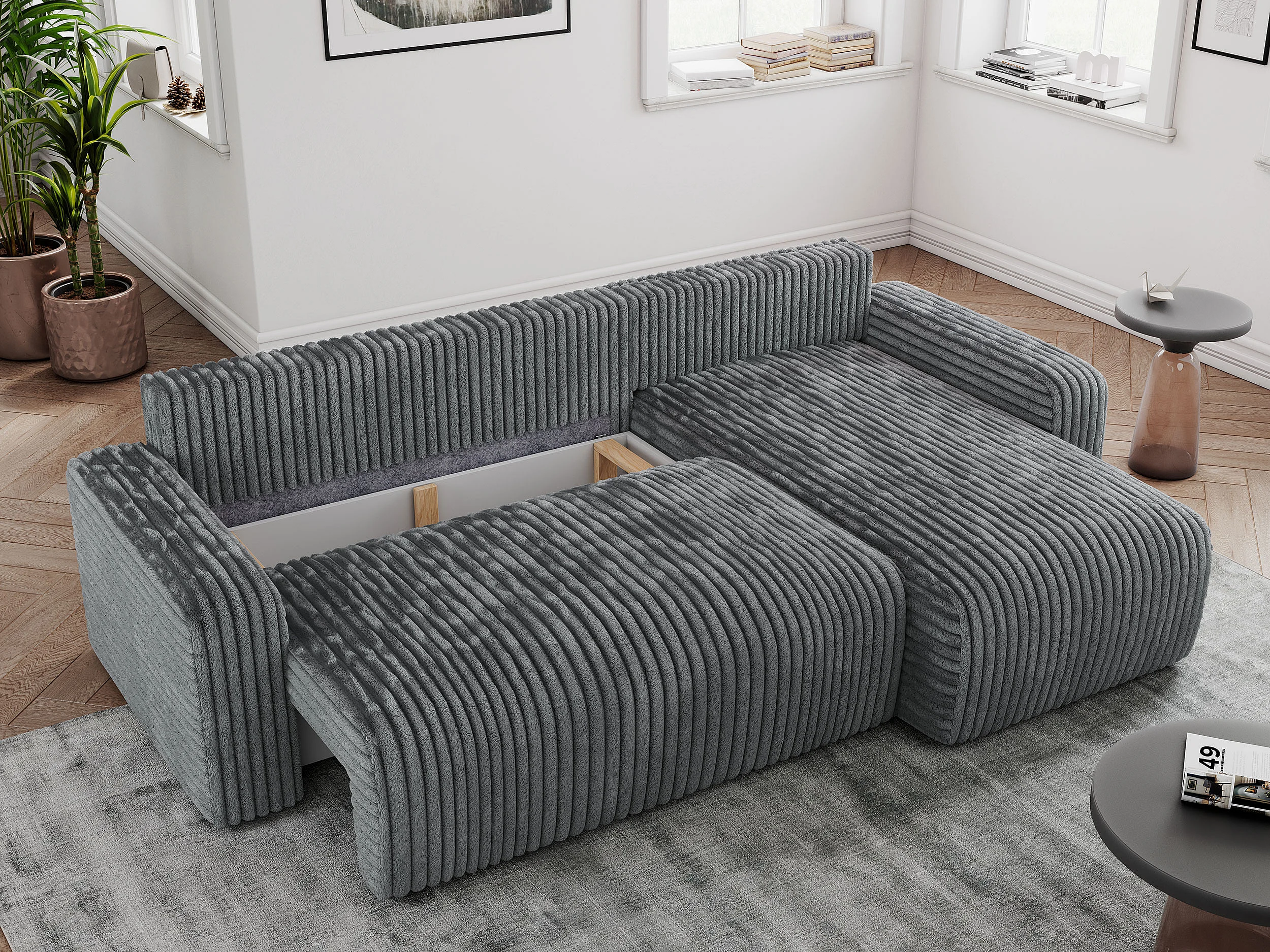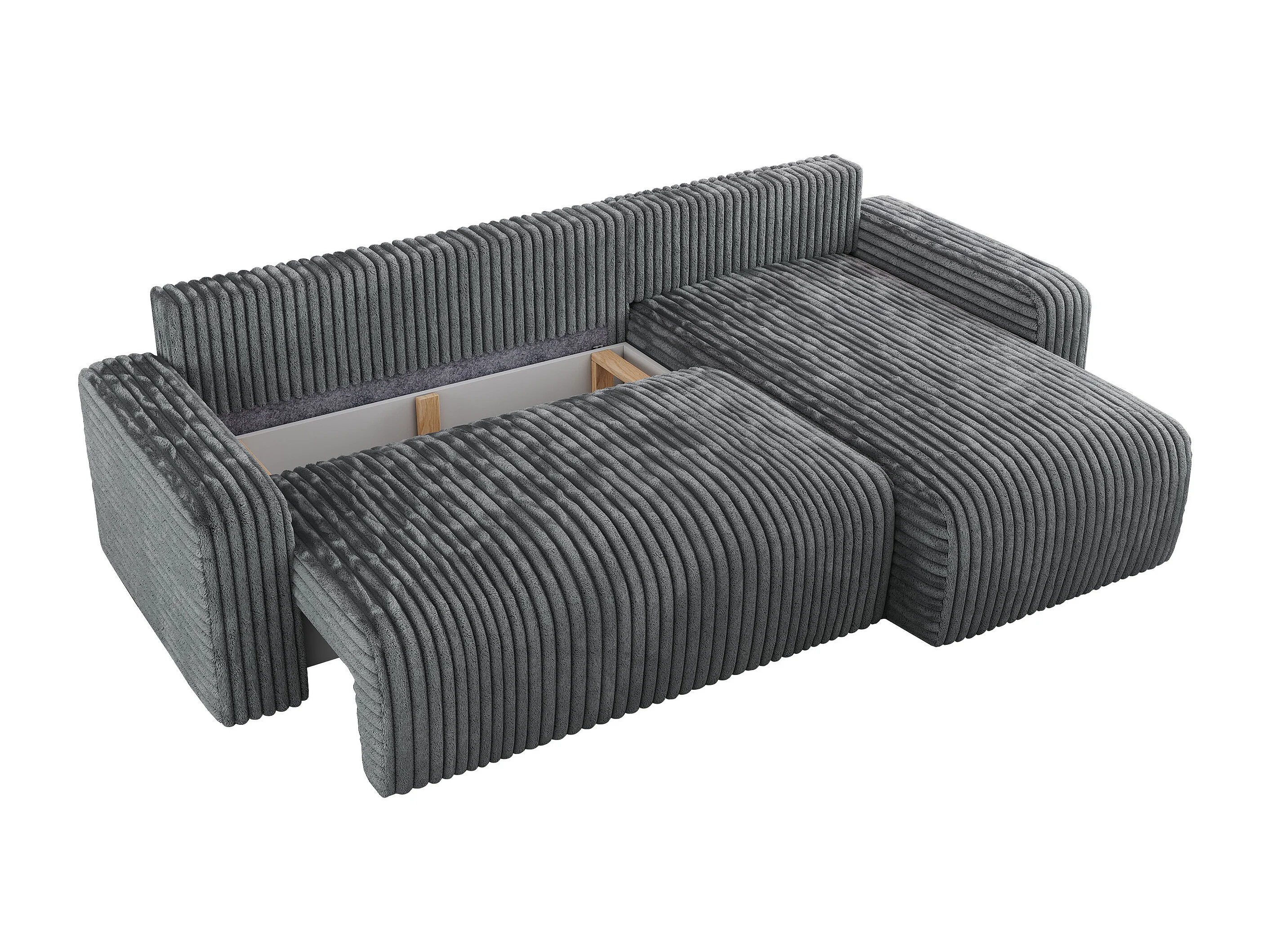 Ecksofa ARGOS - mit Schlaffunktion, Sofa mit armlehnen, Bettkasten, 3-Sitzer Sofa - Dunkelgrau Cord