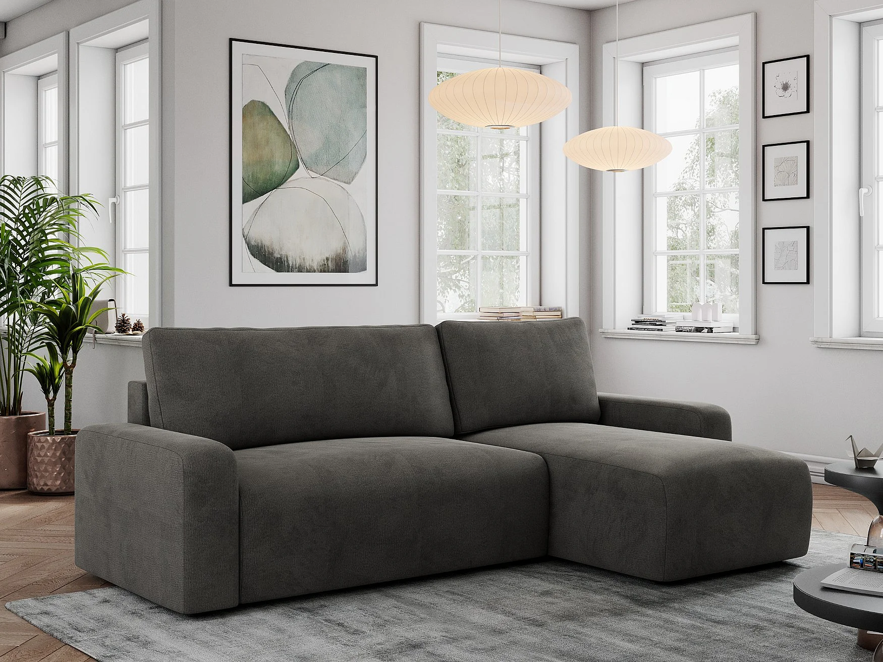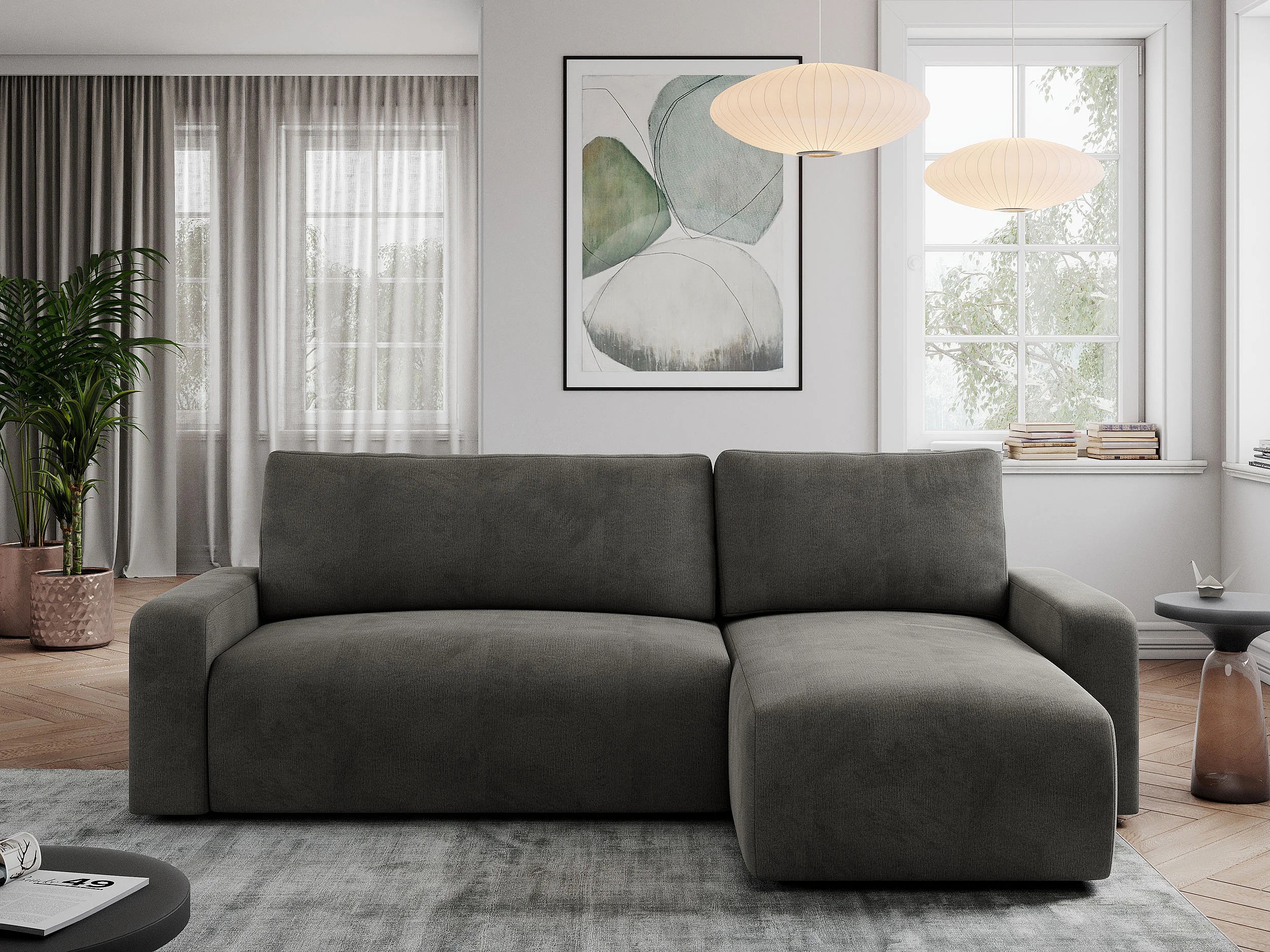 Ecksofa ARGOS - mit Schlaffunktion, Sofa mit armlehnen, Bettkasten, 3-Sitzer Sofa - Dunkelgrau Velvet