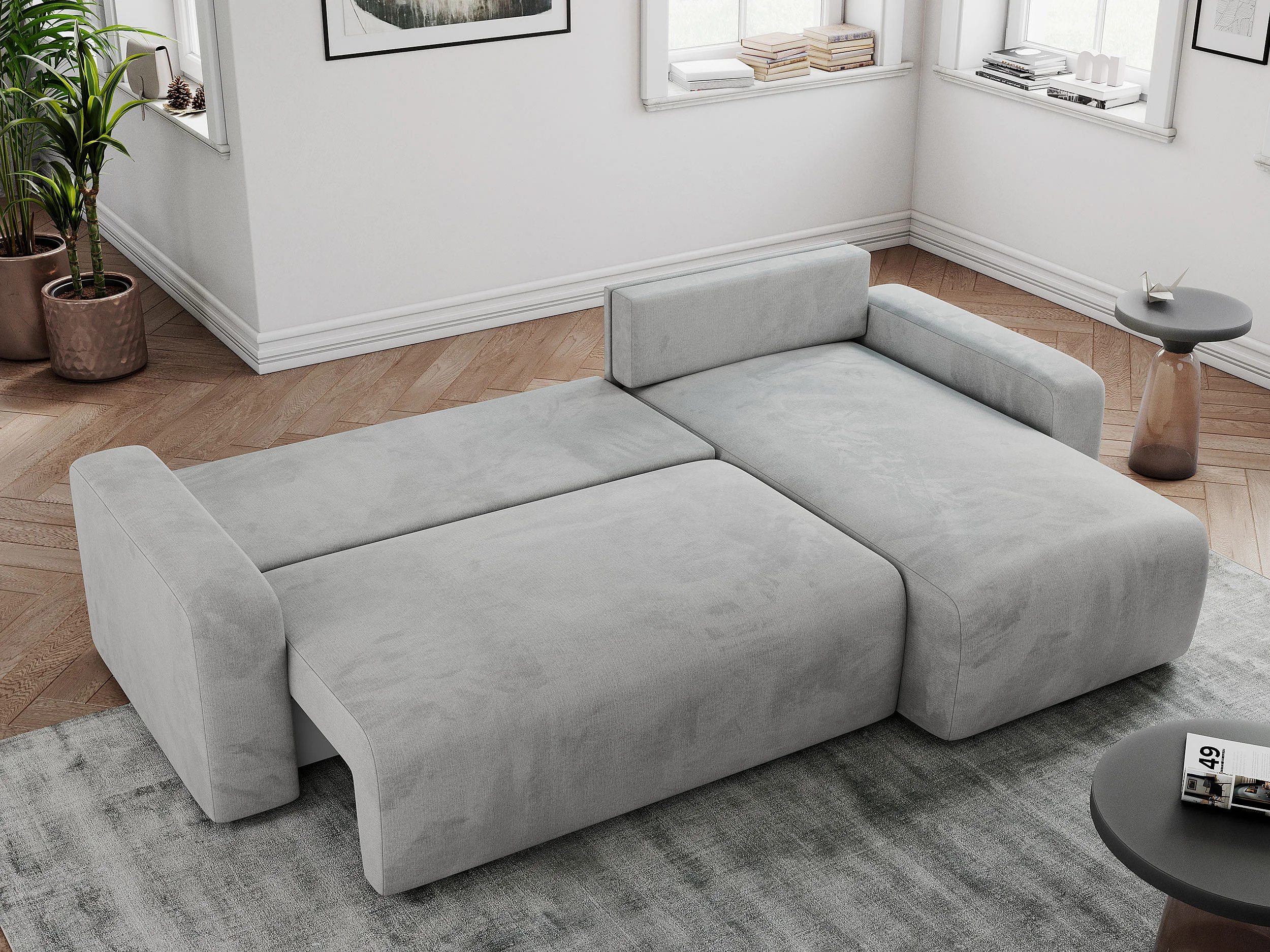 Ecksofa ARGOS - mit Schlaffunktion, Sofa mit armlehnen, Bettkasten, 3-Sitzer Sofa - Hellgrau Velvet