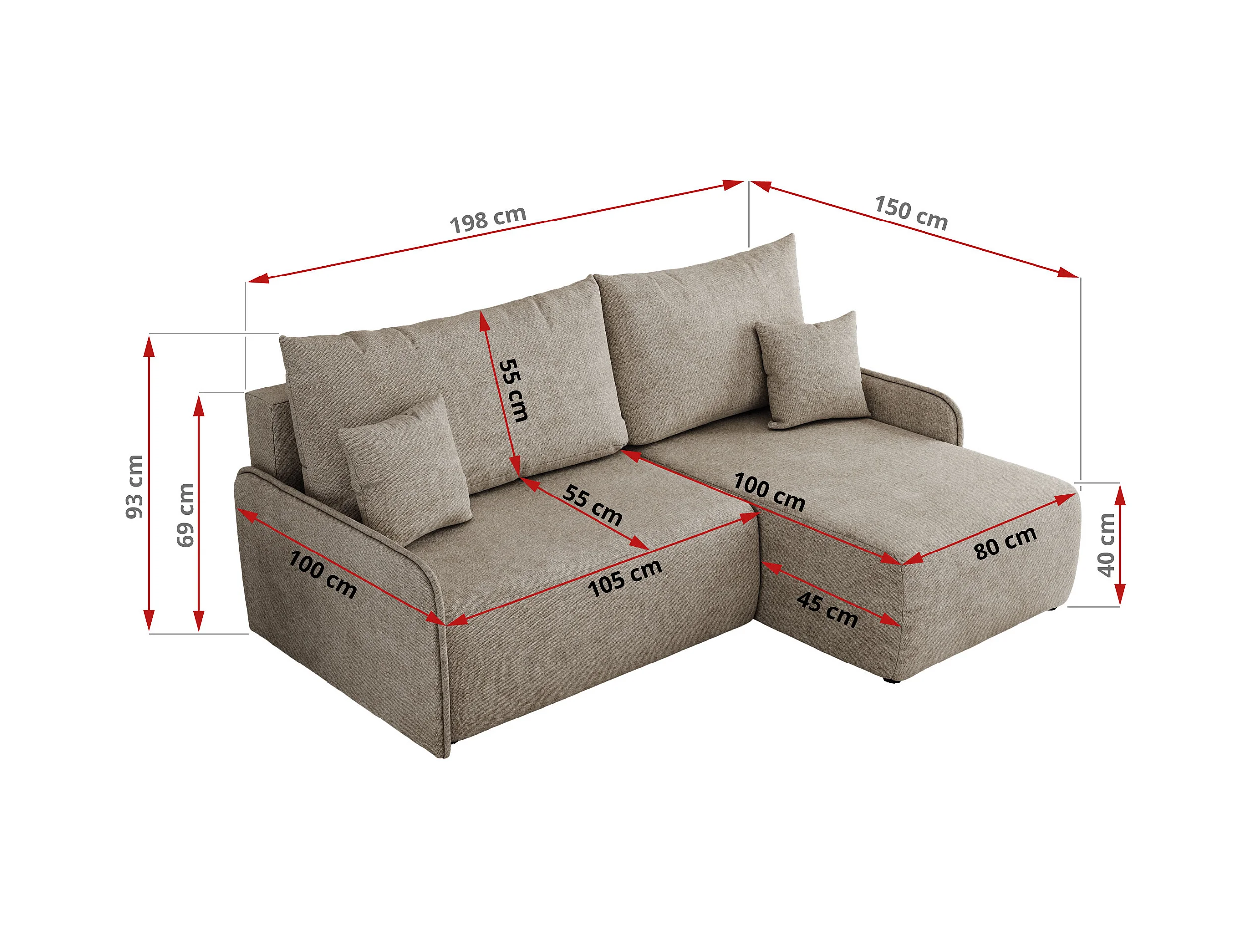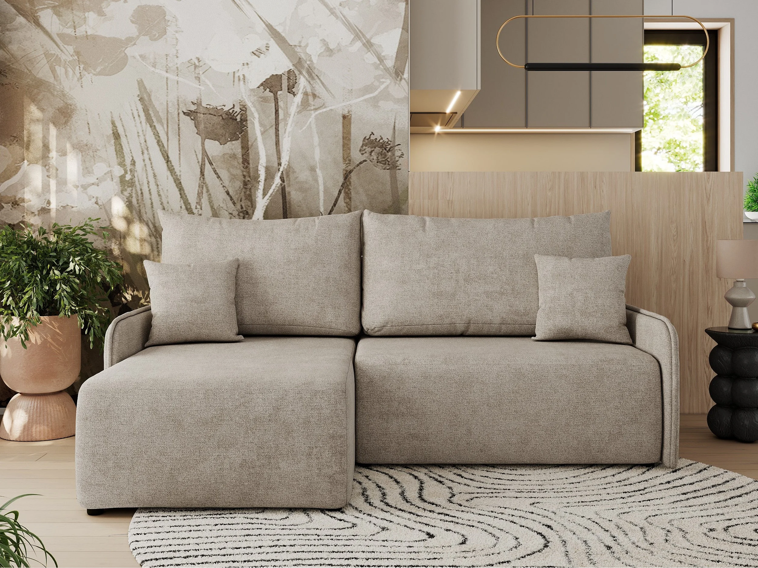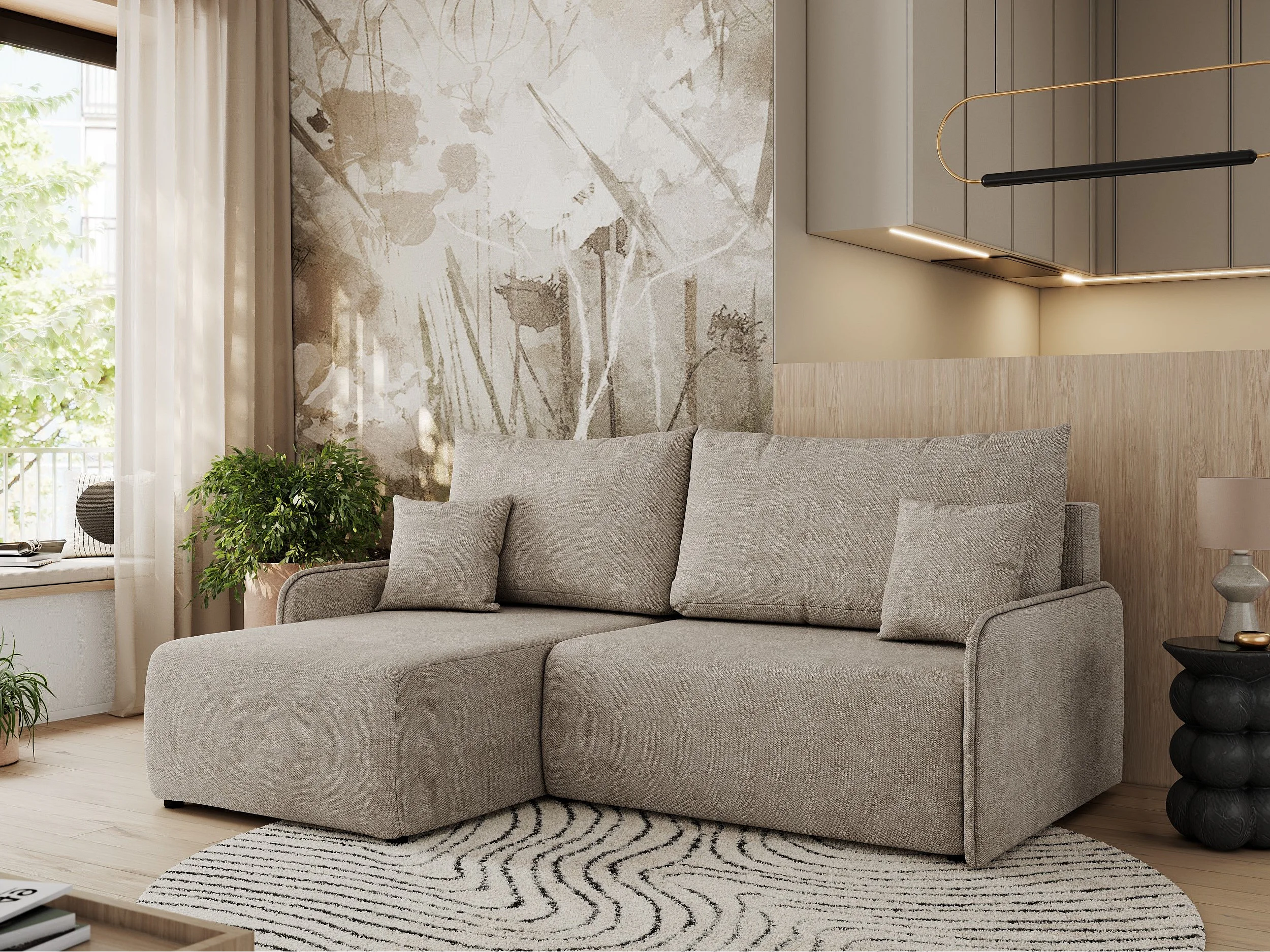 Ecksofa ARPA - L-form Schlaffsofa, Bettkasten und lose Kissen, Armlehnen - Beige Struktur - Ecke Links