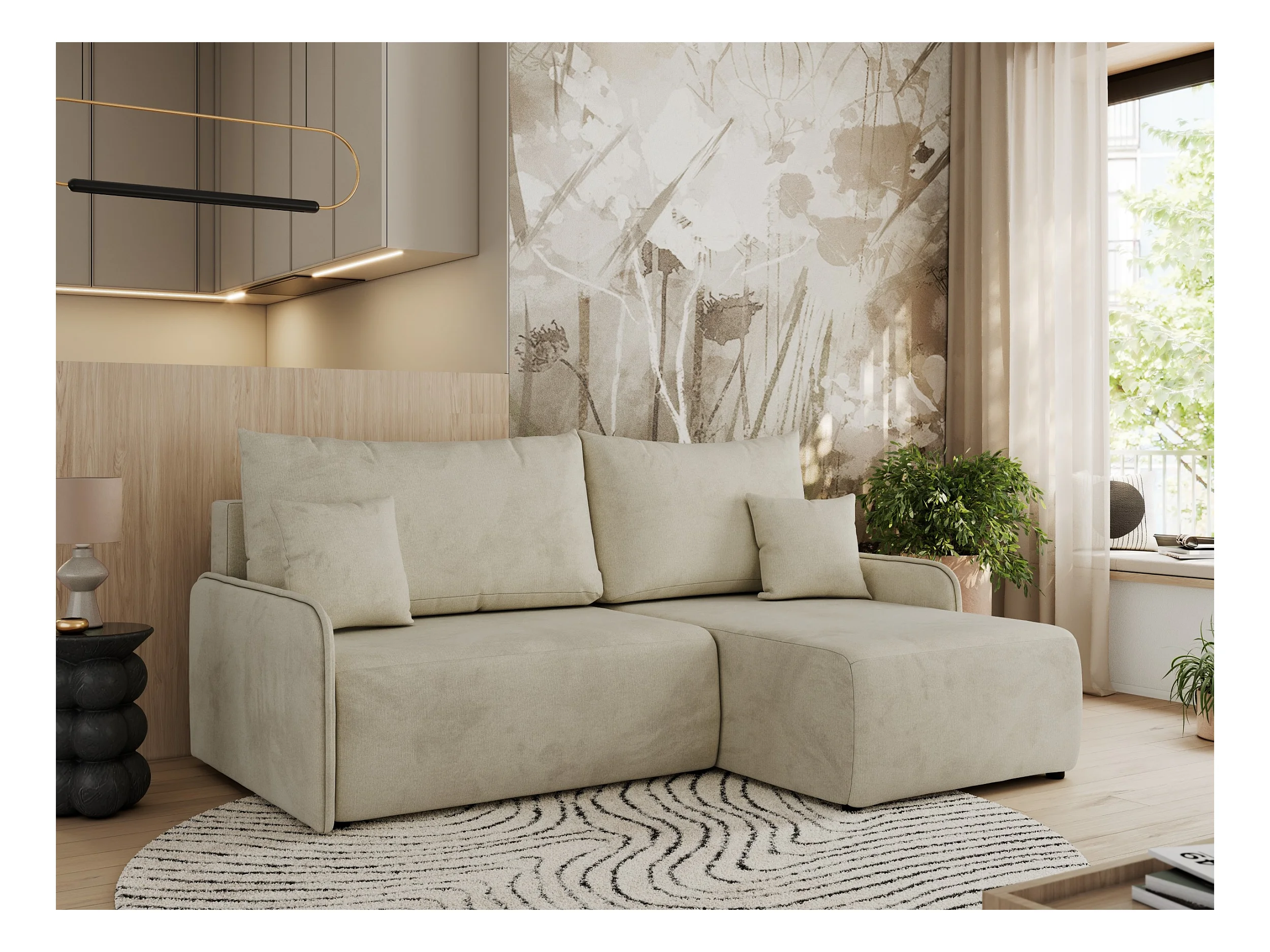 Ecksofa ARPA - L-form Schlaffsofa, Bettkasten und lose Kissen, Armlehnen - Beige Velvet - Ecke Rechts