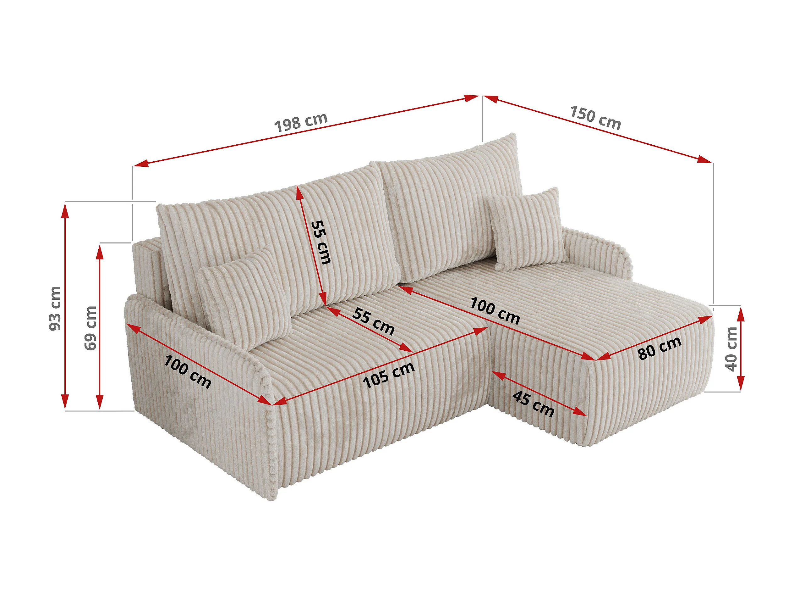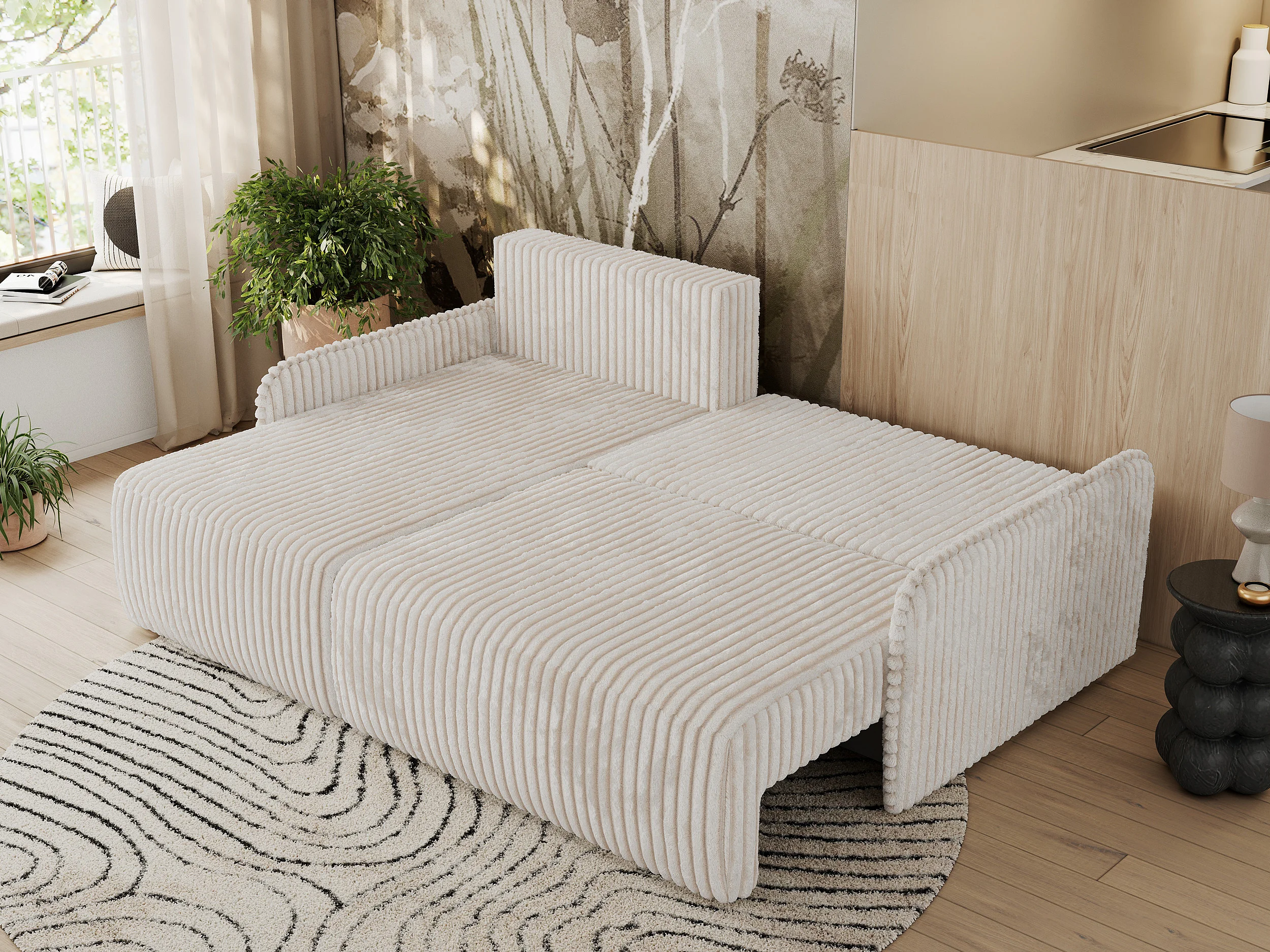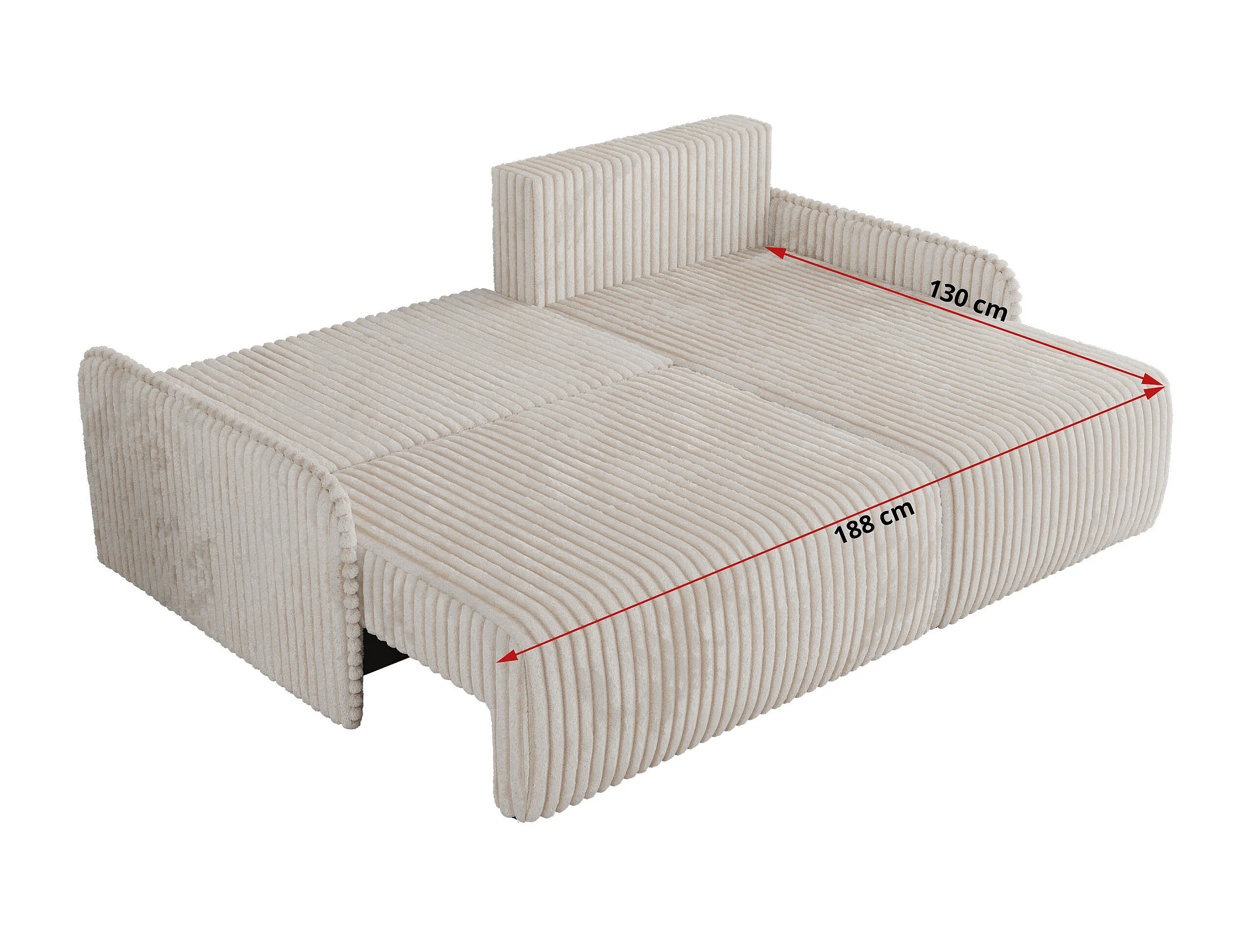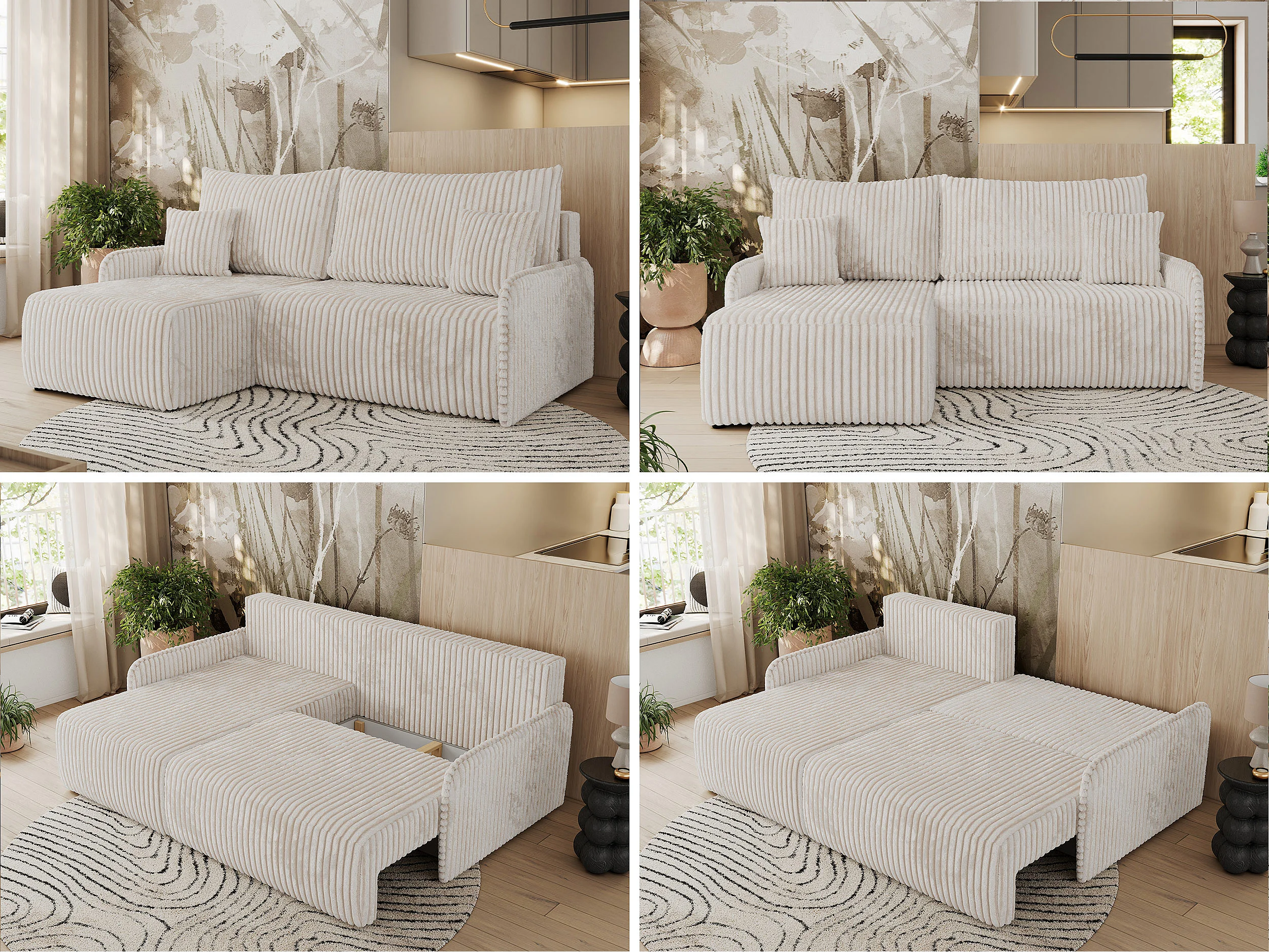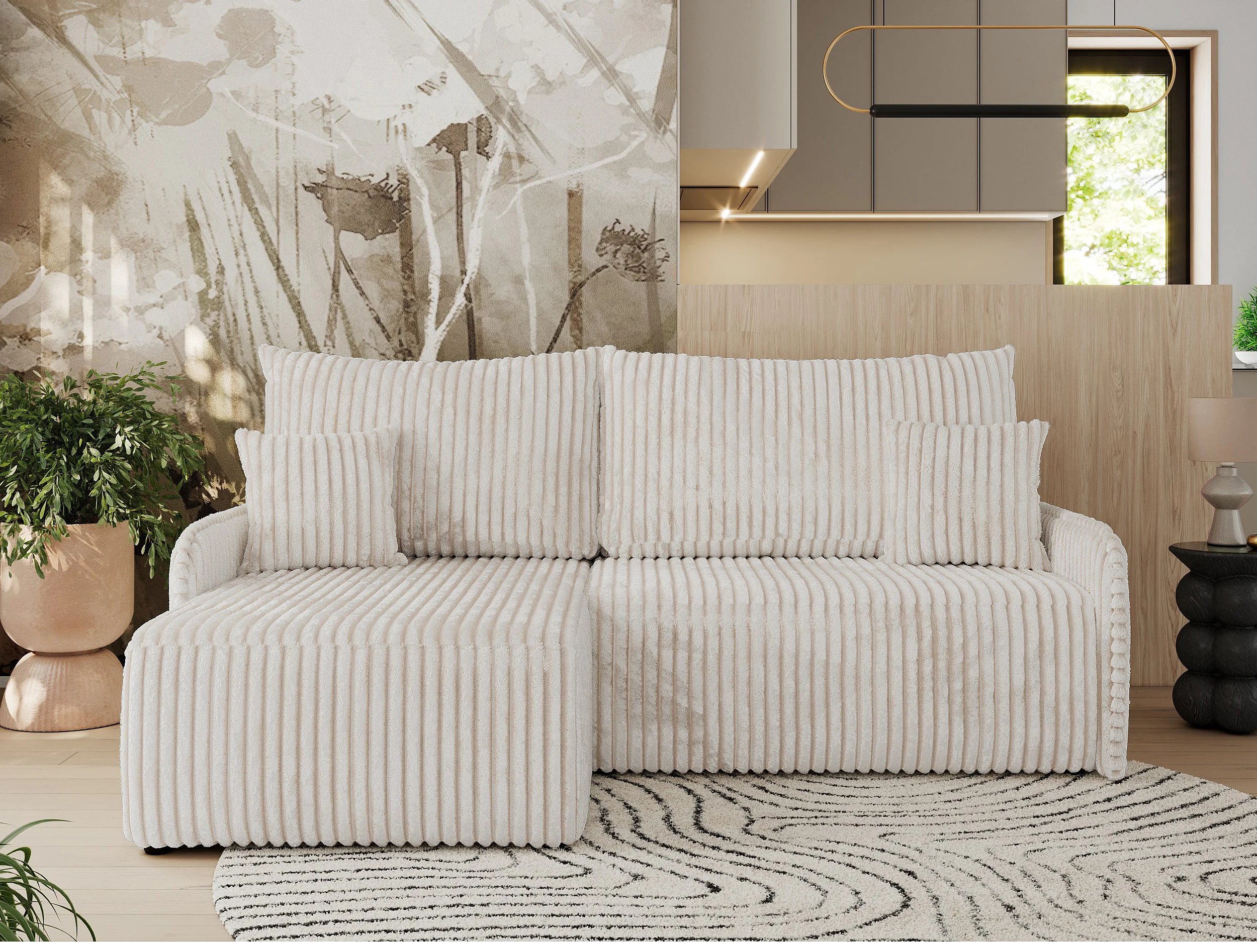 Ecksofa ARPA - L-form Schlaffsofa, Bettkasten und lose Kissen, Armlehnen - Creme Cord - Ecke Links