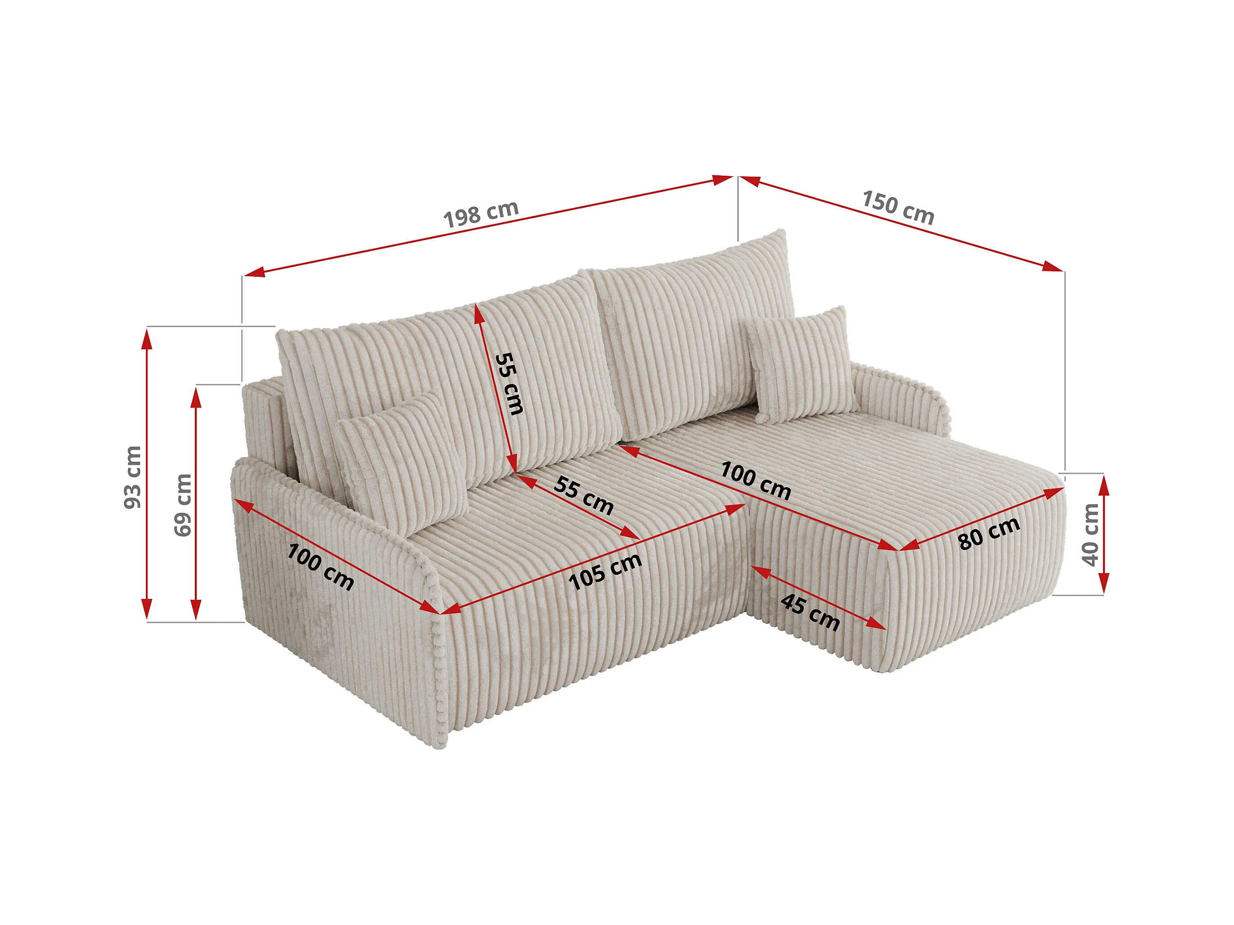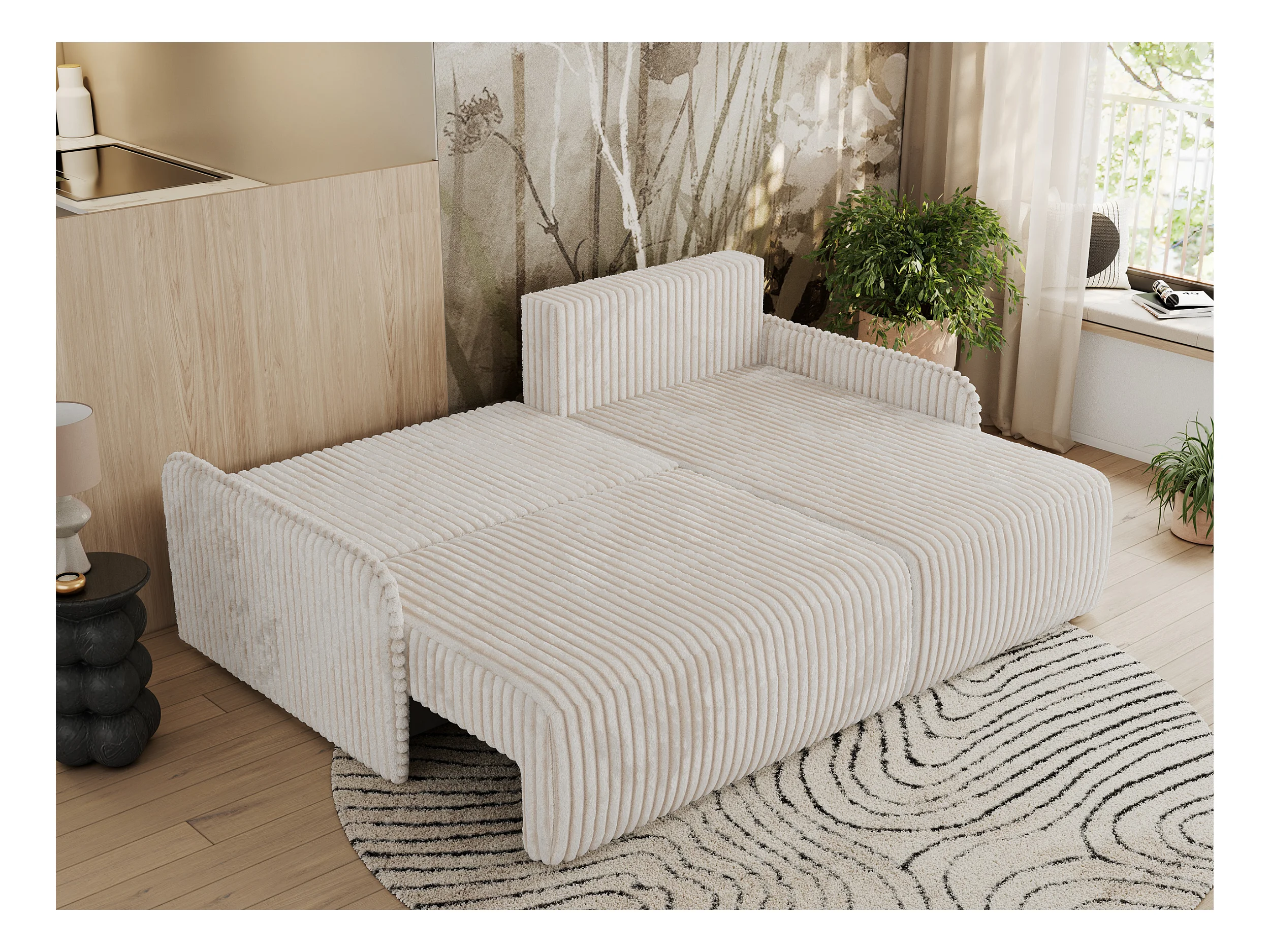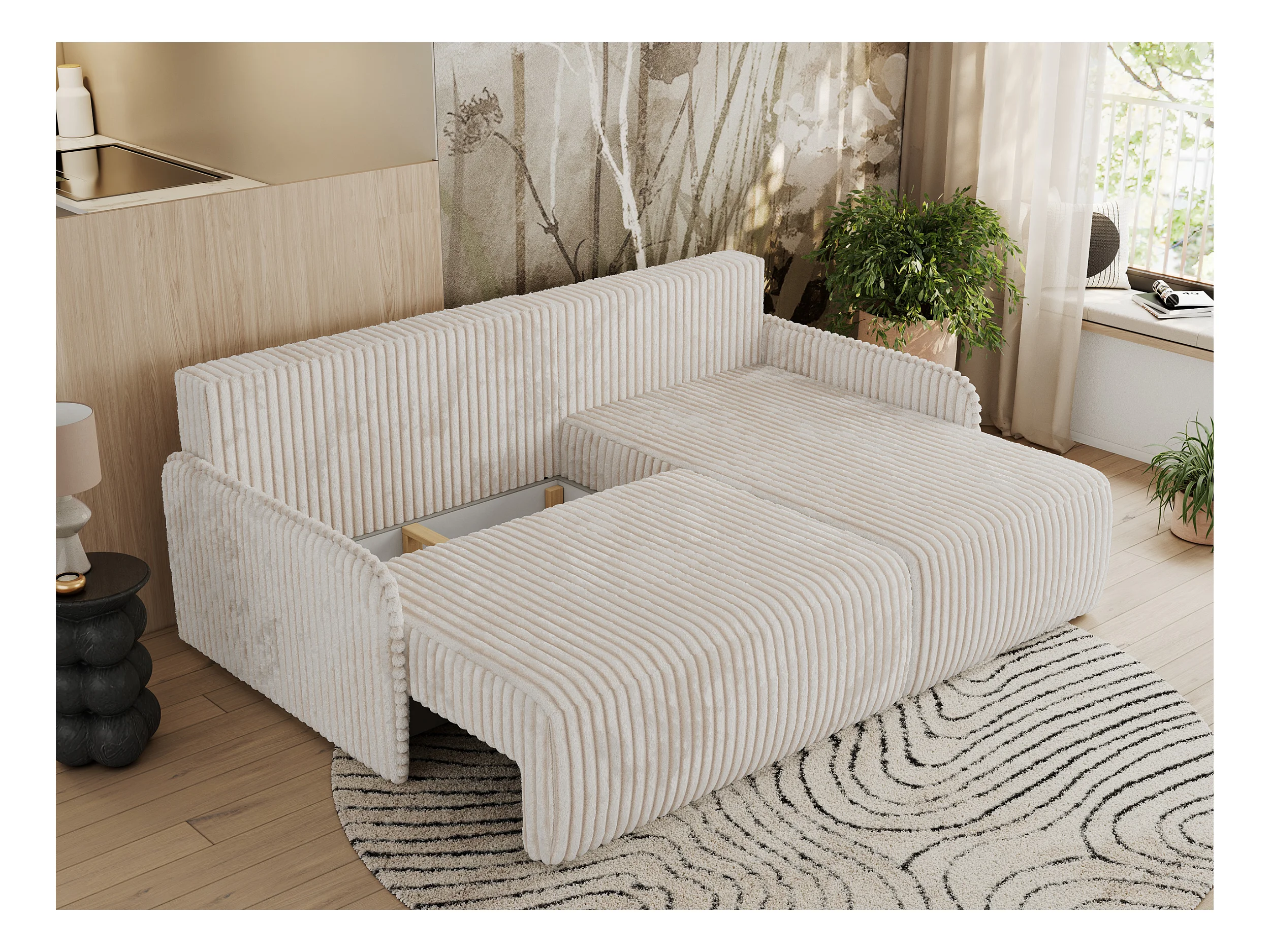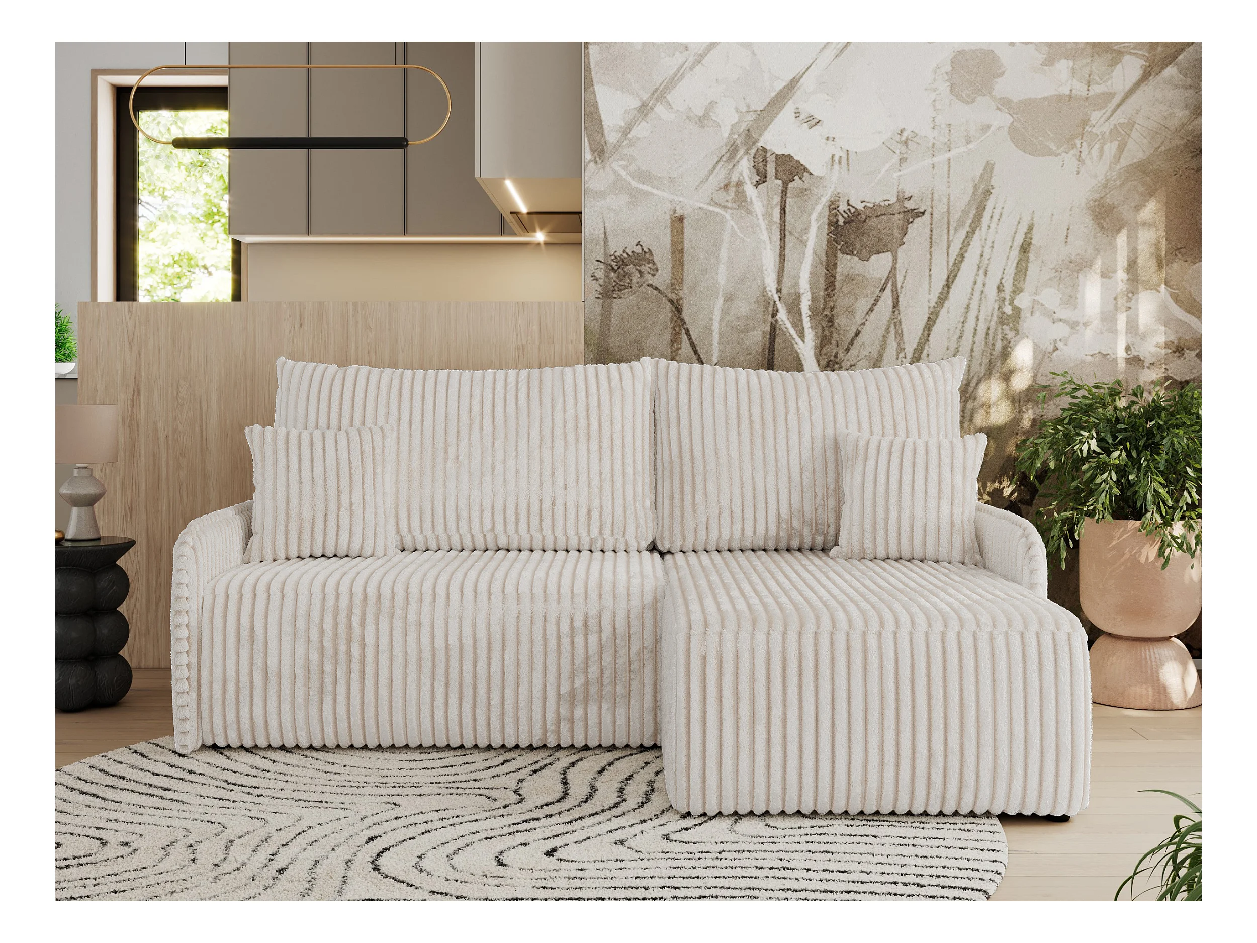 Ecksofa ARPA - L-form Schlaffsofa, Bettkasten und lose Kissen, Armlehnen - Creme Cord - Ecke Rechts