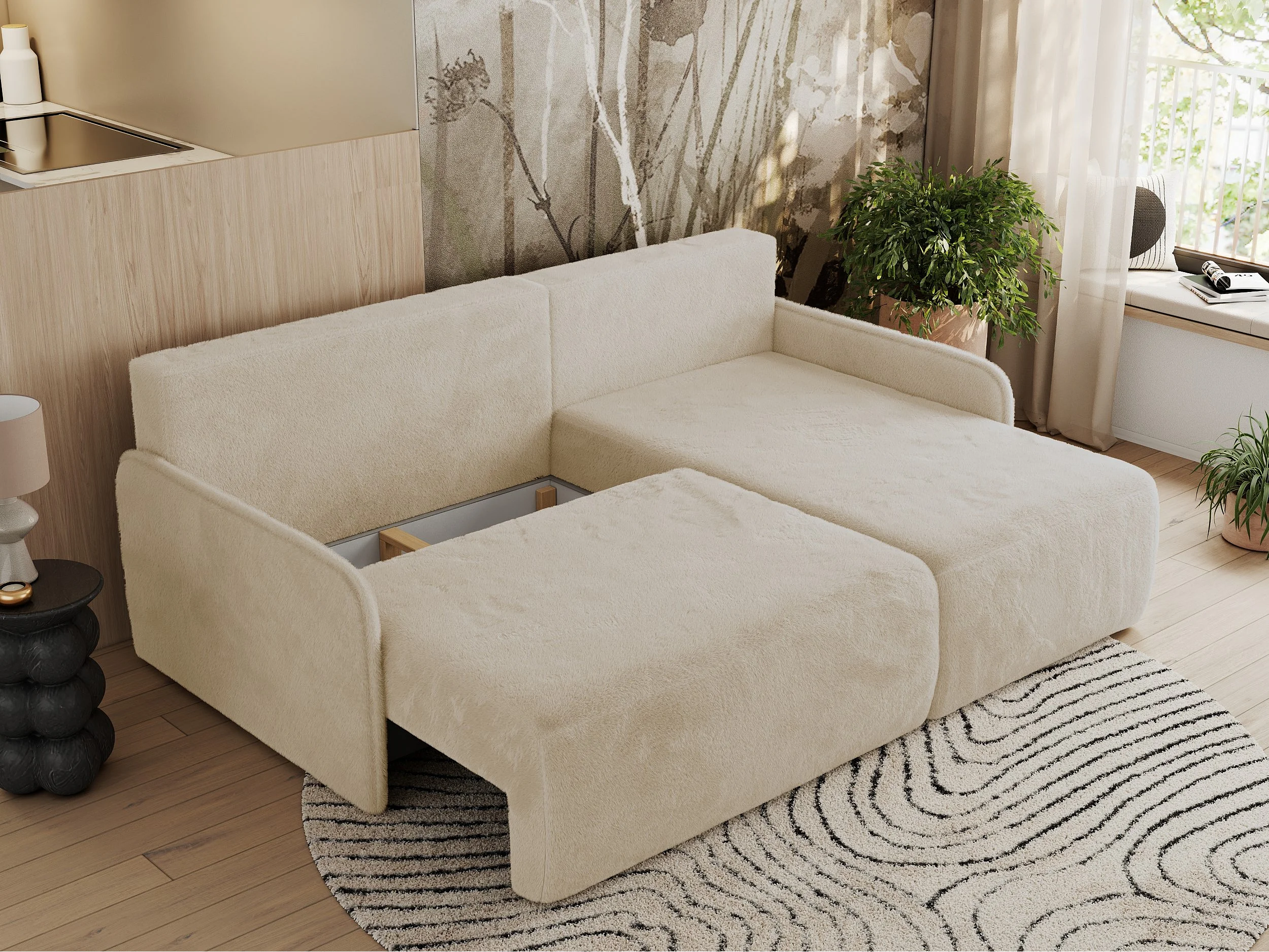Ecksofa ARPA - L-form Schlaffsofa, Bettkasten und lose Kissen, Armlehnen - Creme Plüsch - Ecke Rechts