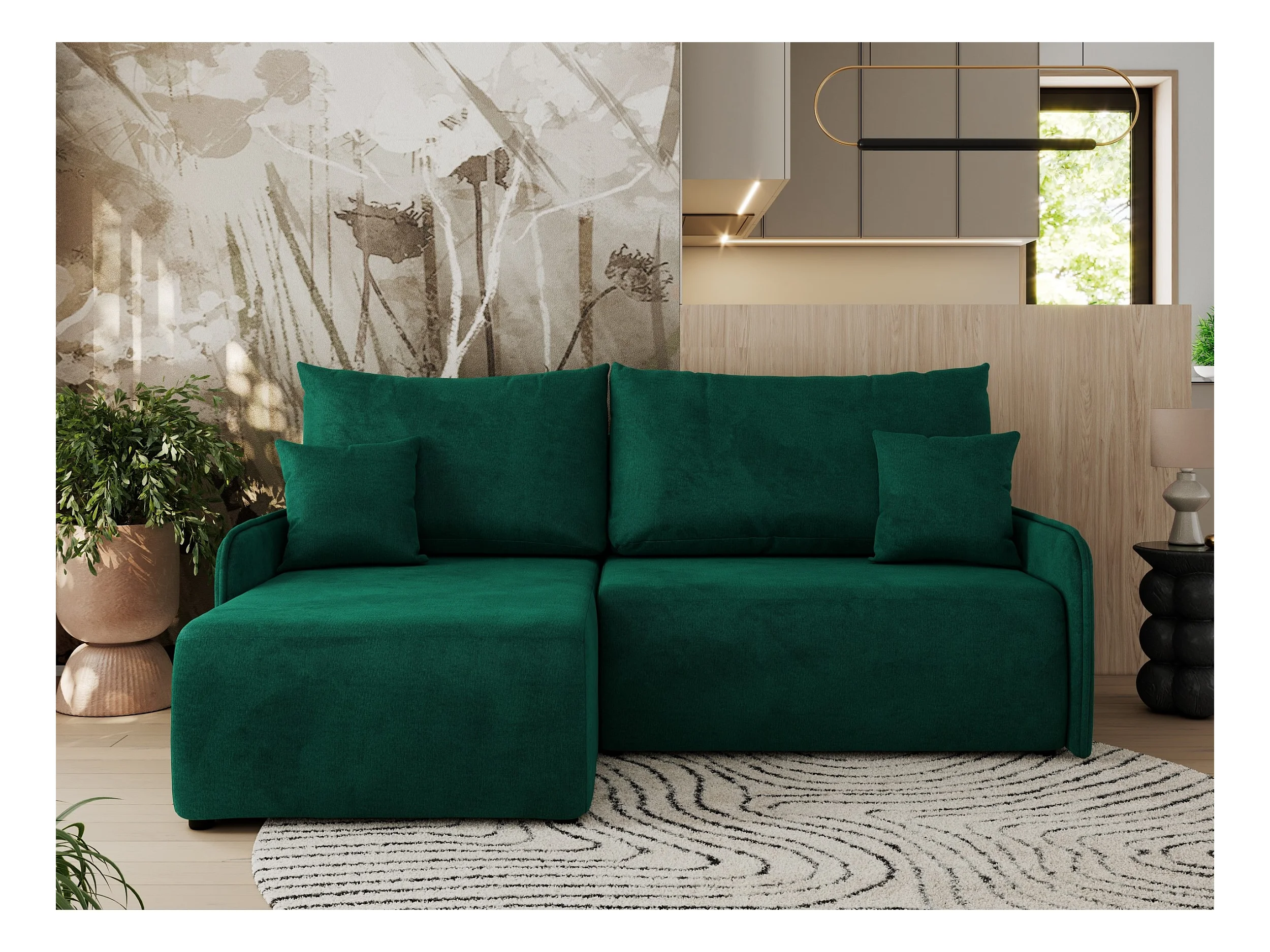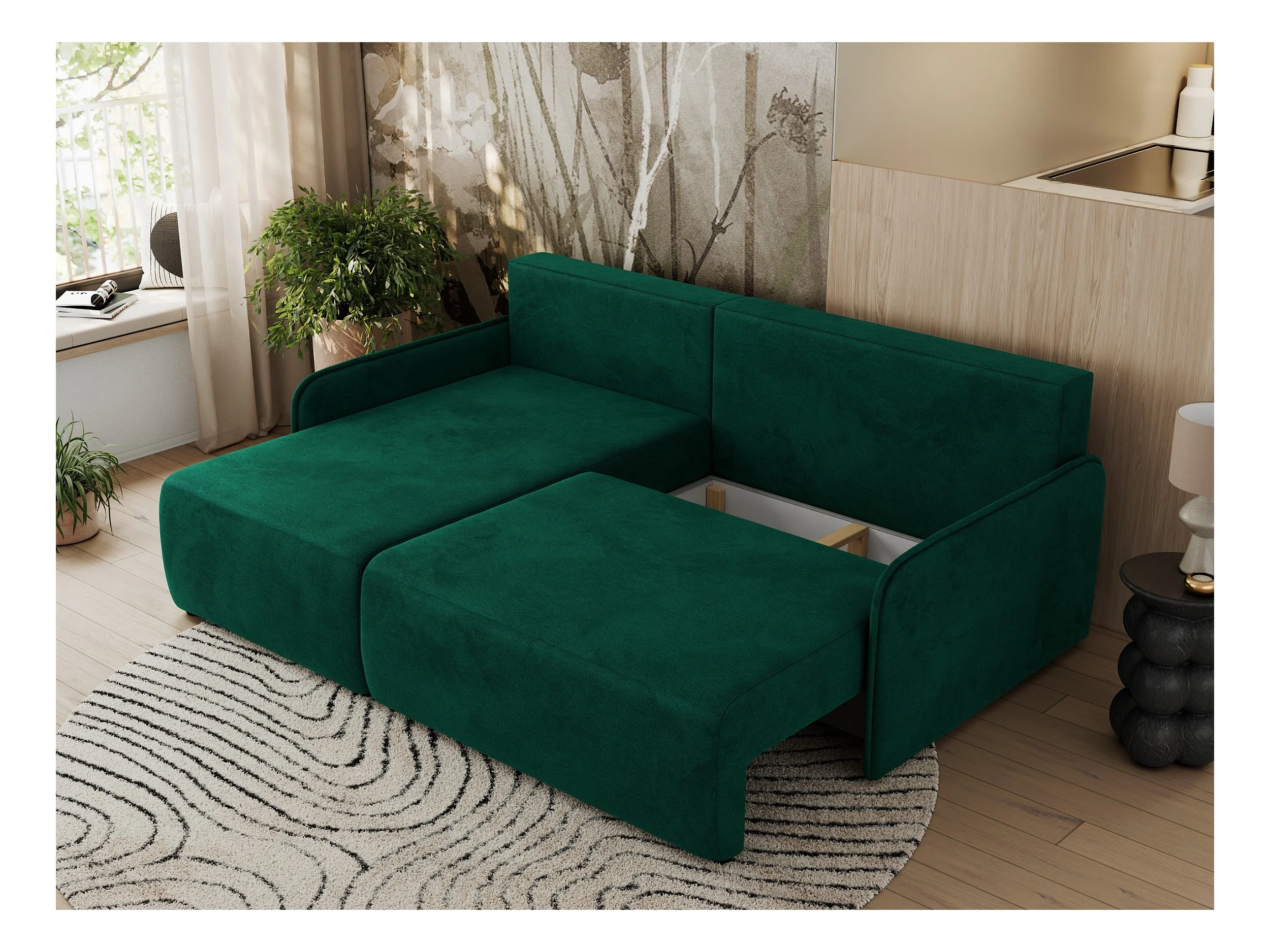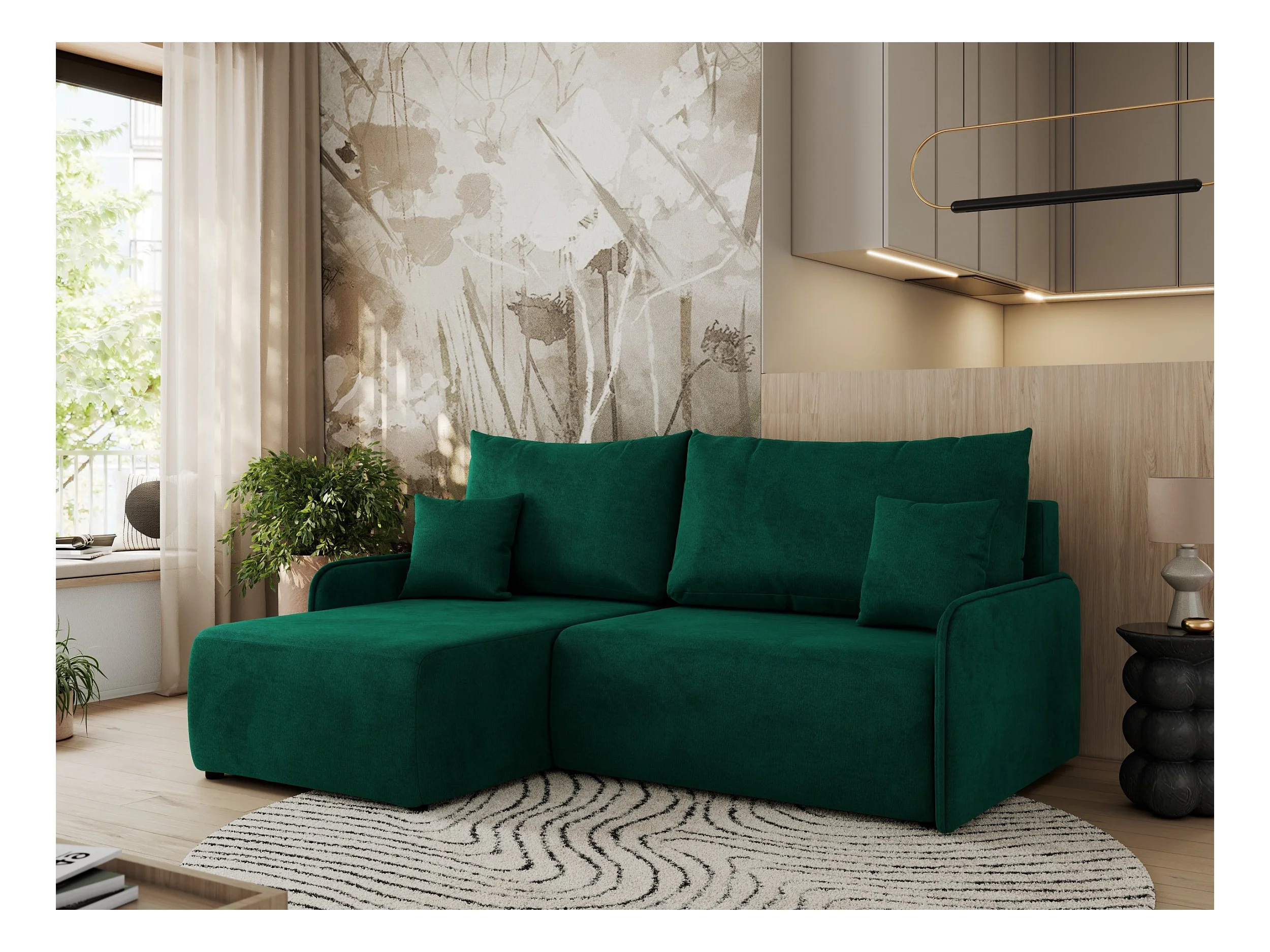 Ecksofa ARPA - L-form Schlaffsofa, Bettkasten und lose Kissen, Armlehnen - Dunkelgrün Velvet - Ecke Links