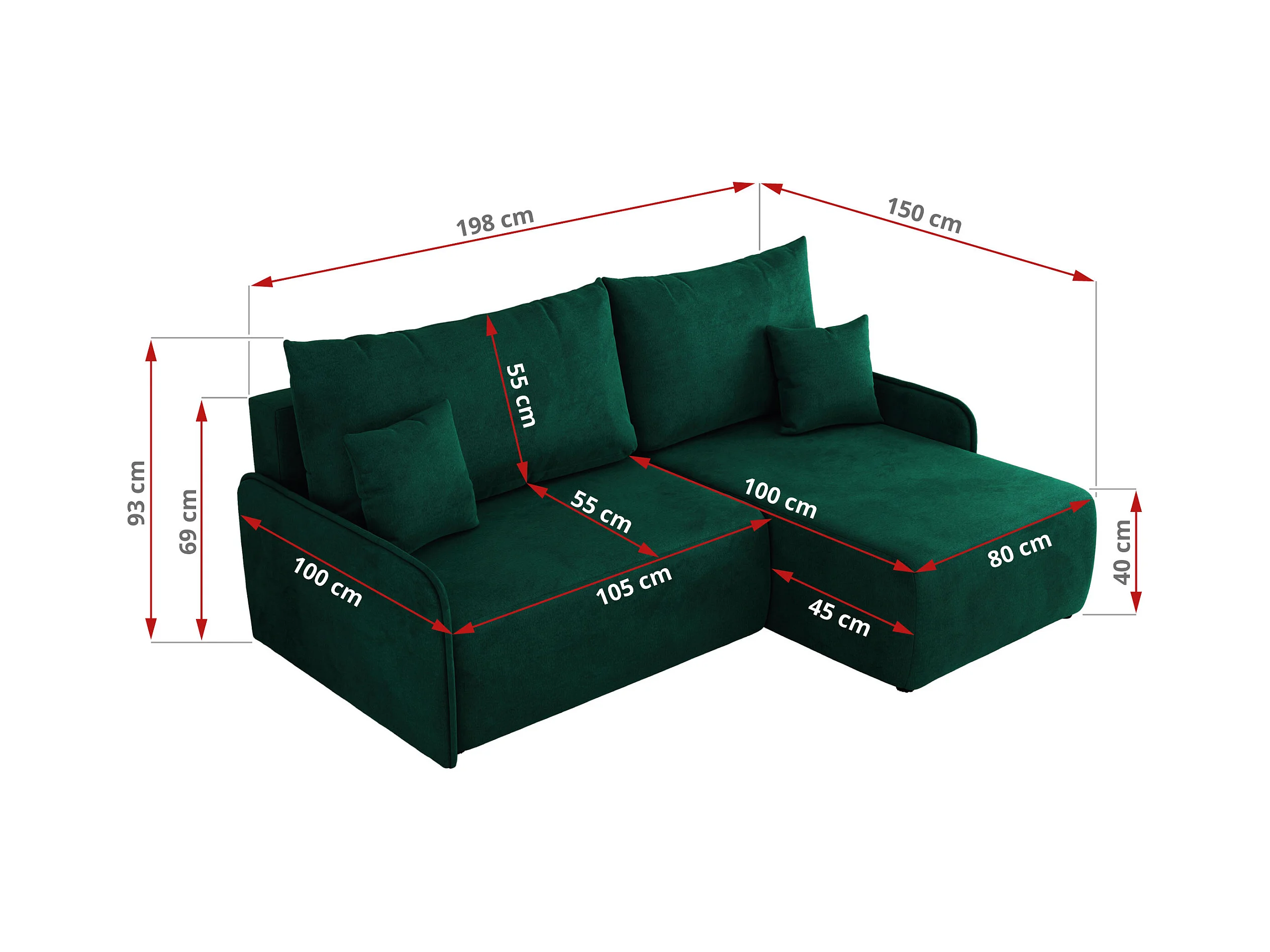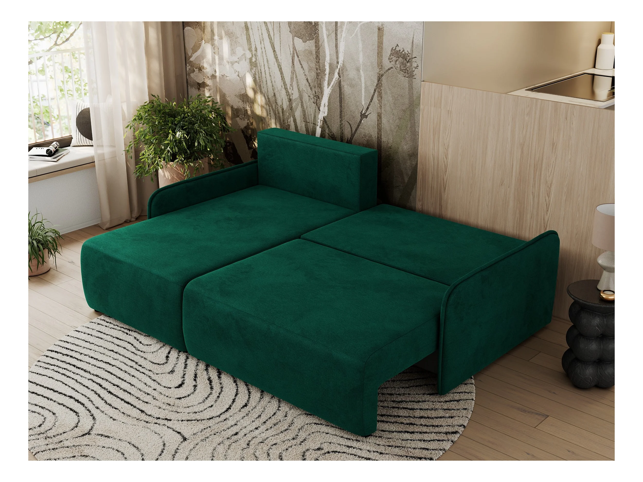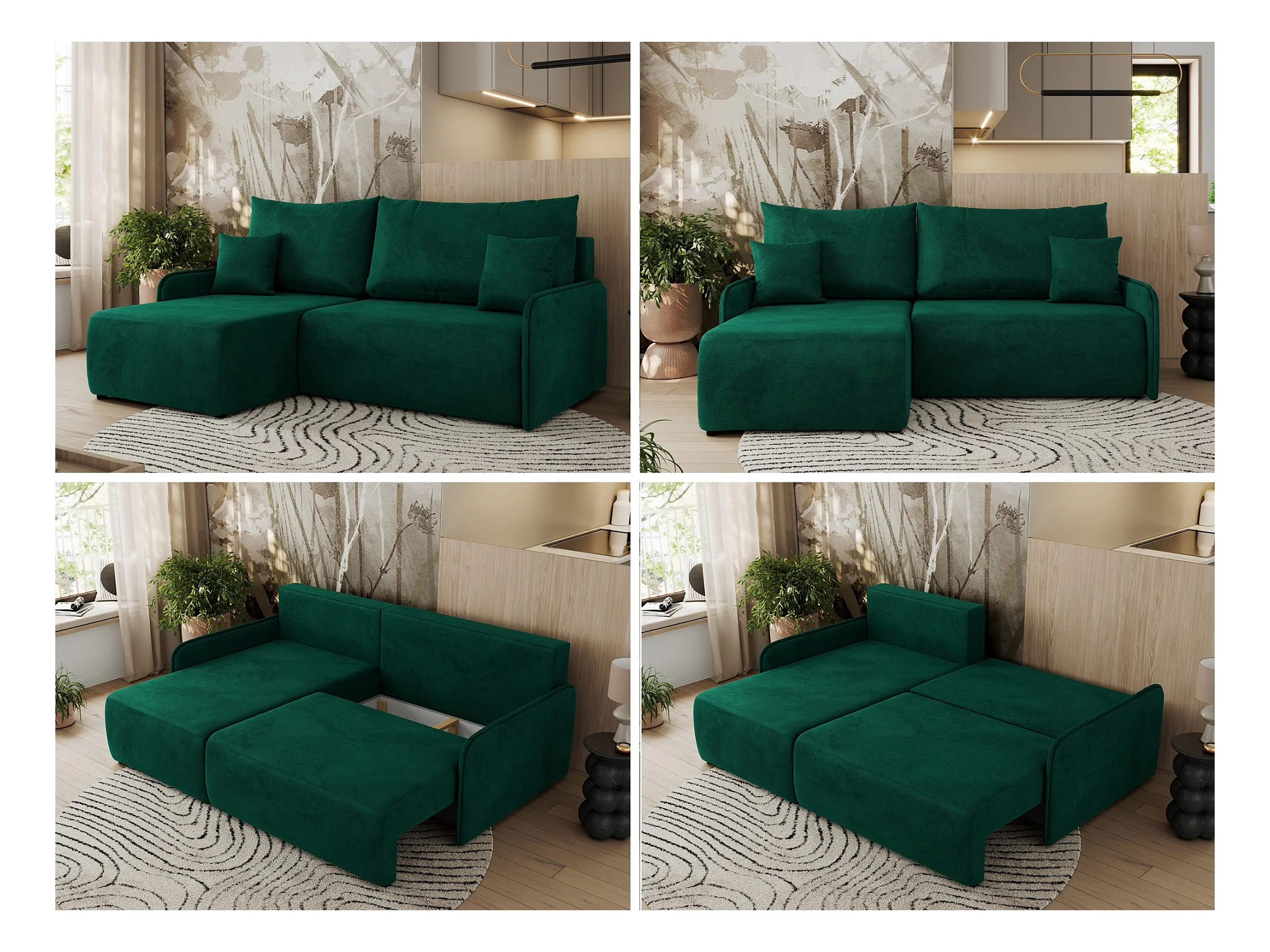 Ecksofa ARPA - L-form Schlaffsofa, Bettkasten und lose Kissen, Armlehnen - Dunkelgrün Velvet - Ecke Links