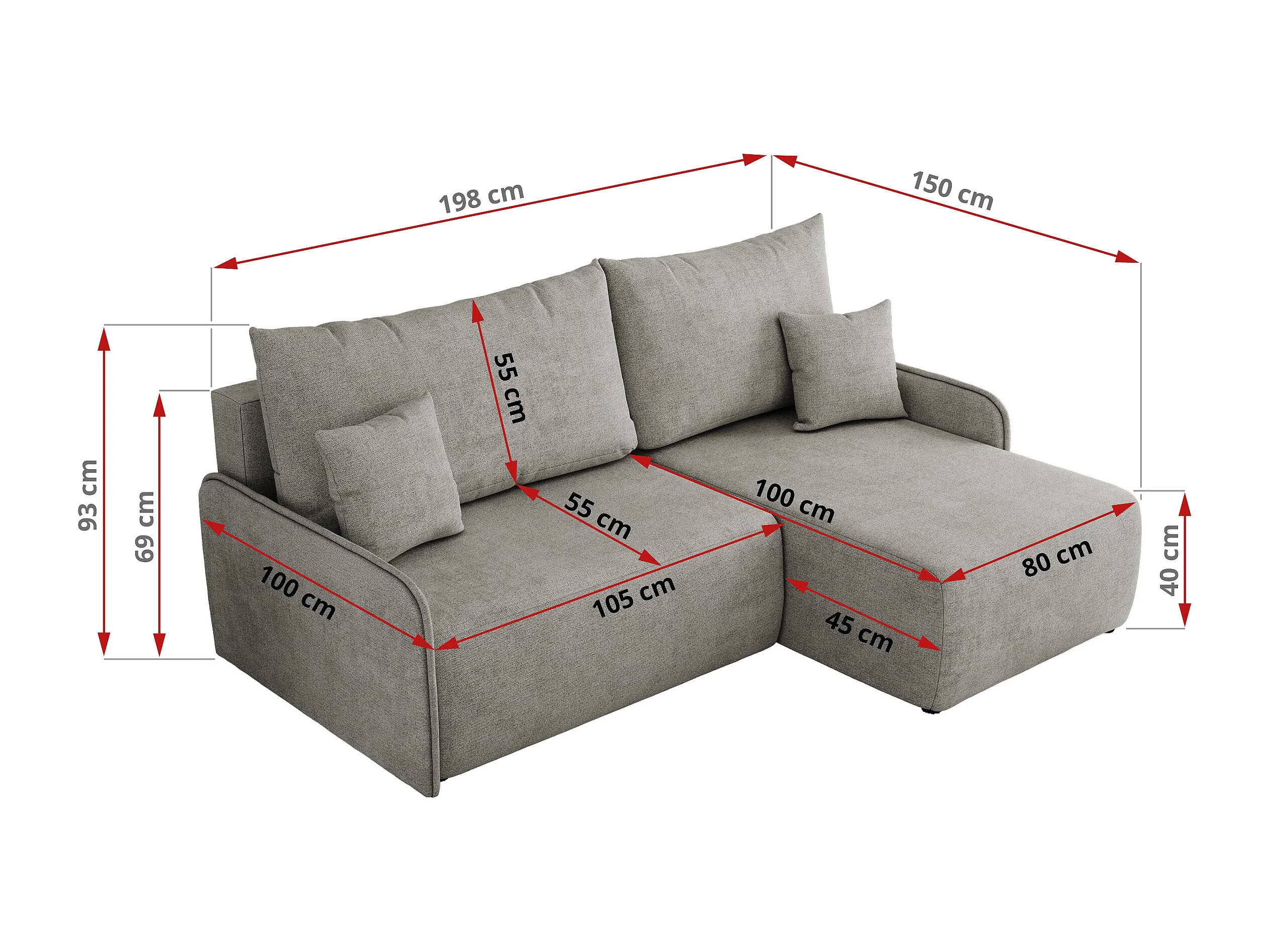 Ecksofa ARPA - L-form Schlaffsofa, Bettkasten und lose Kissen, Armlehnen - Hellgrau Struktur - Ecke Rechts