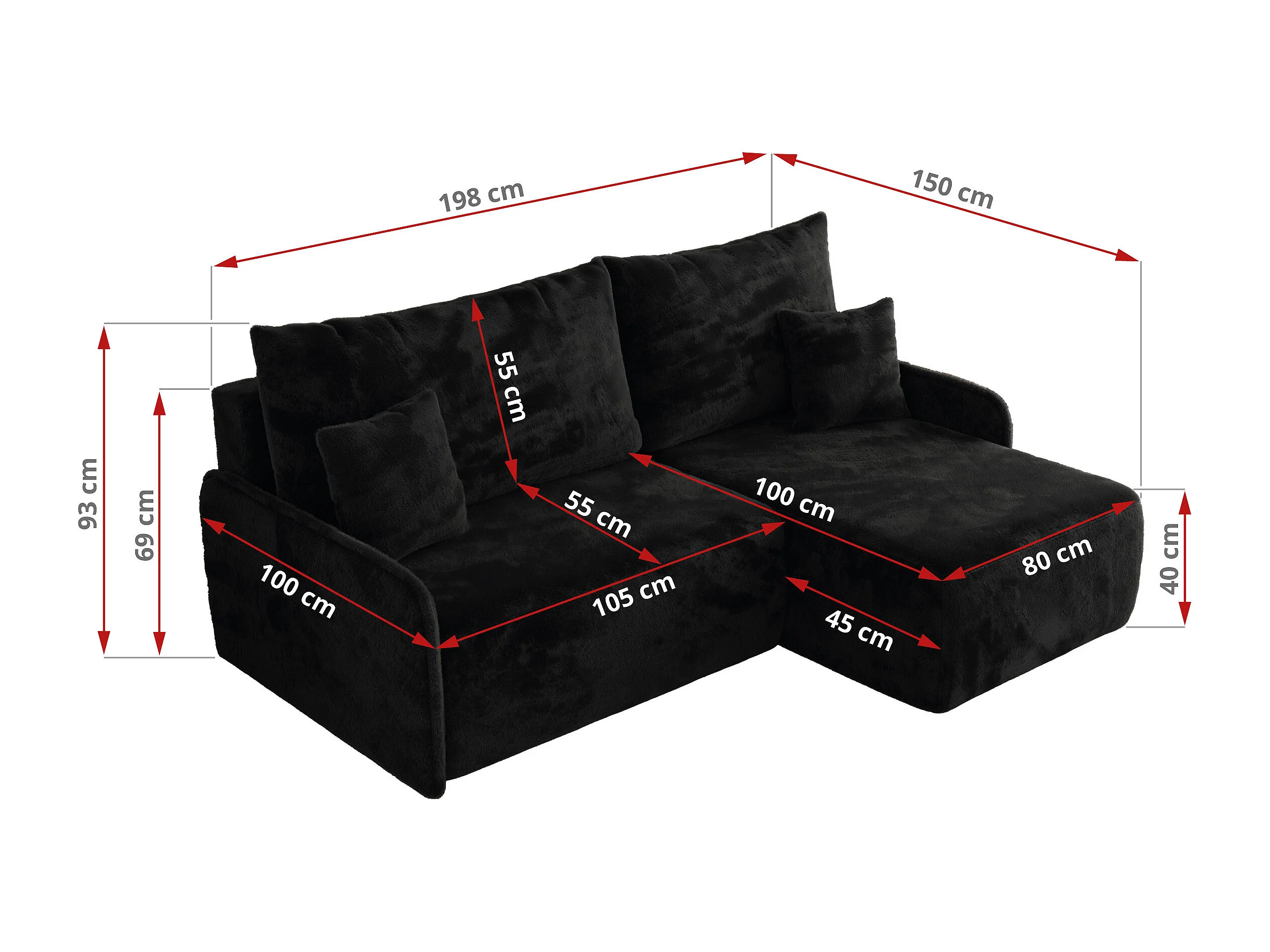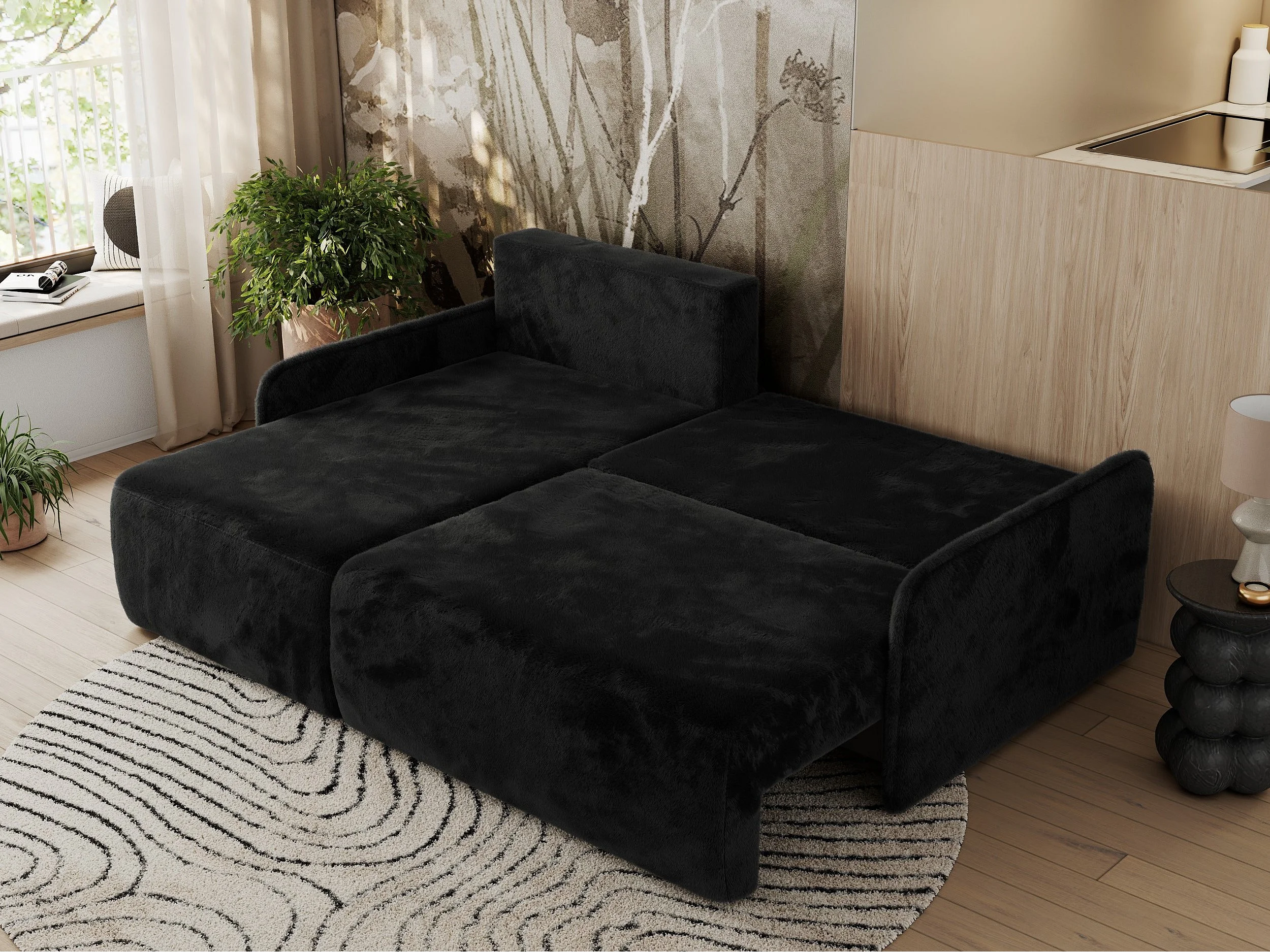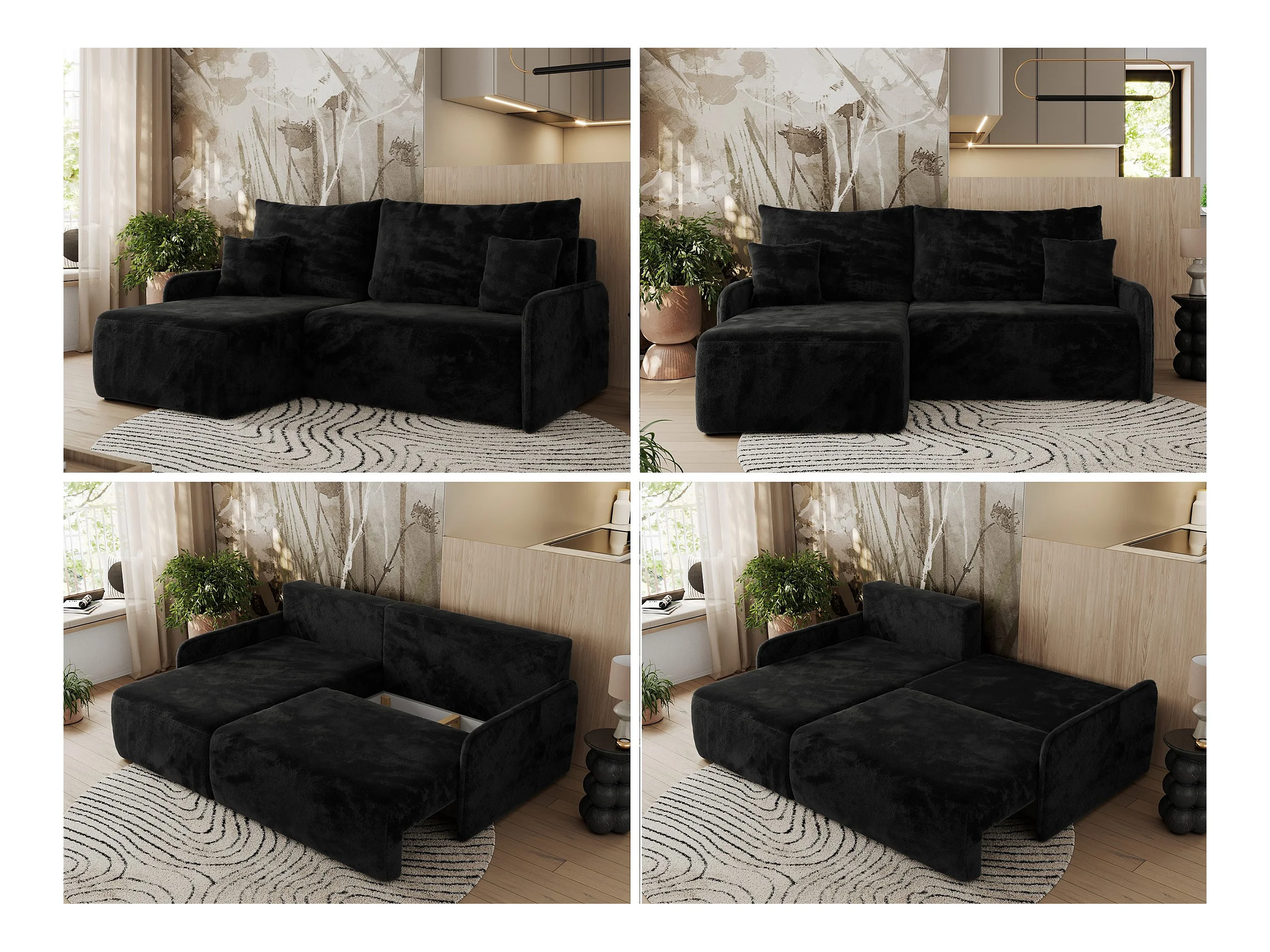 Ecksofa ARPA - L-form Schlaffsofa, Bettkasten und lose Kissen, Armlehnen - Schwarz Plüsch - Ecke Links