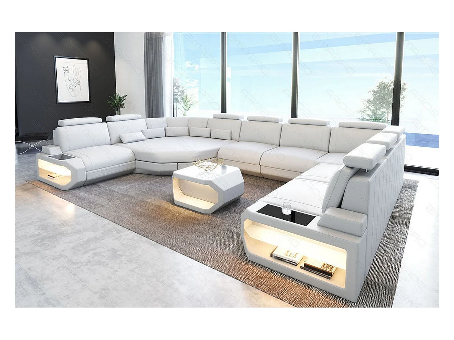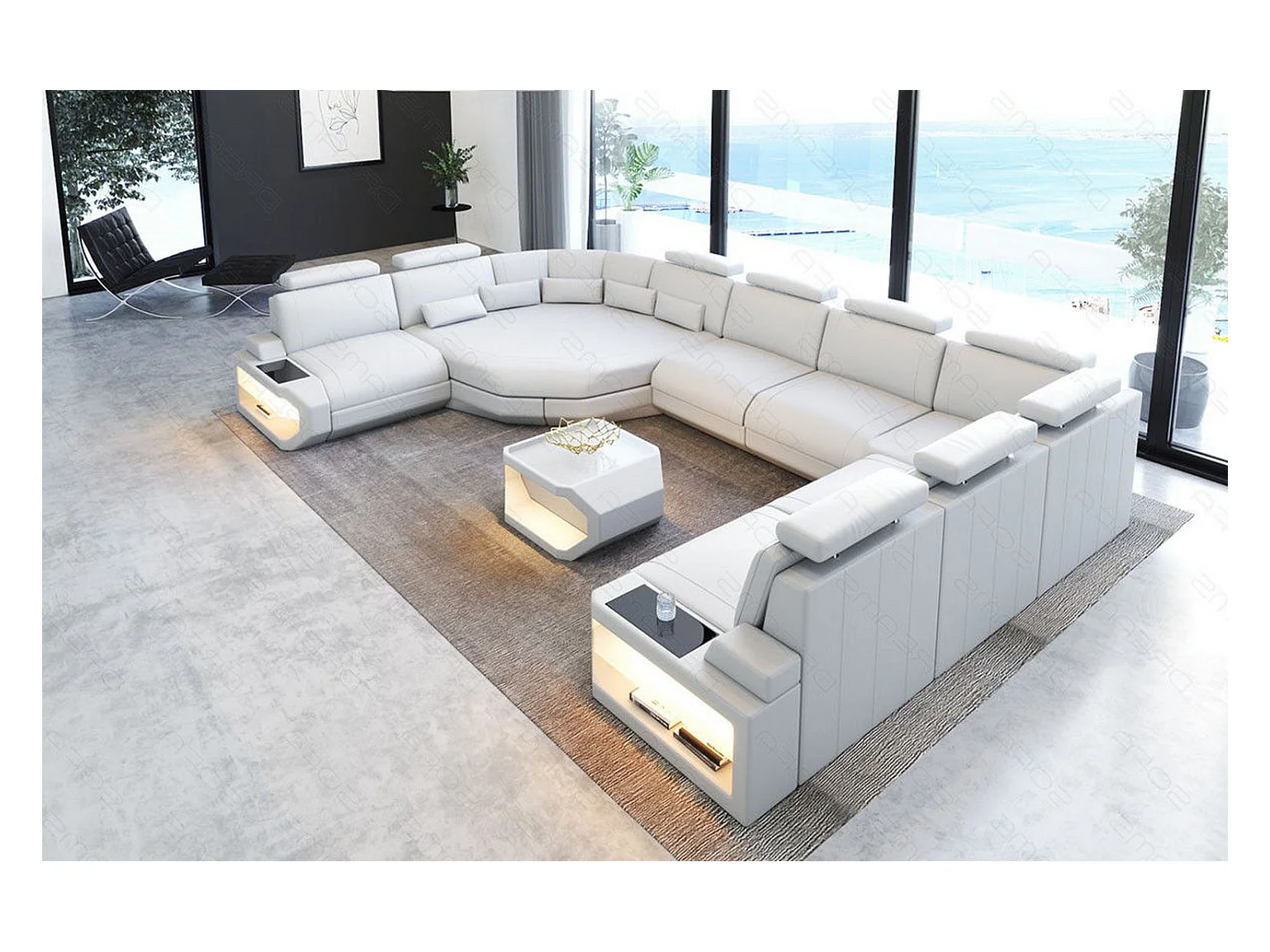 Sofa Asti U Leder Kunstleder Weiß Rechts