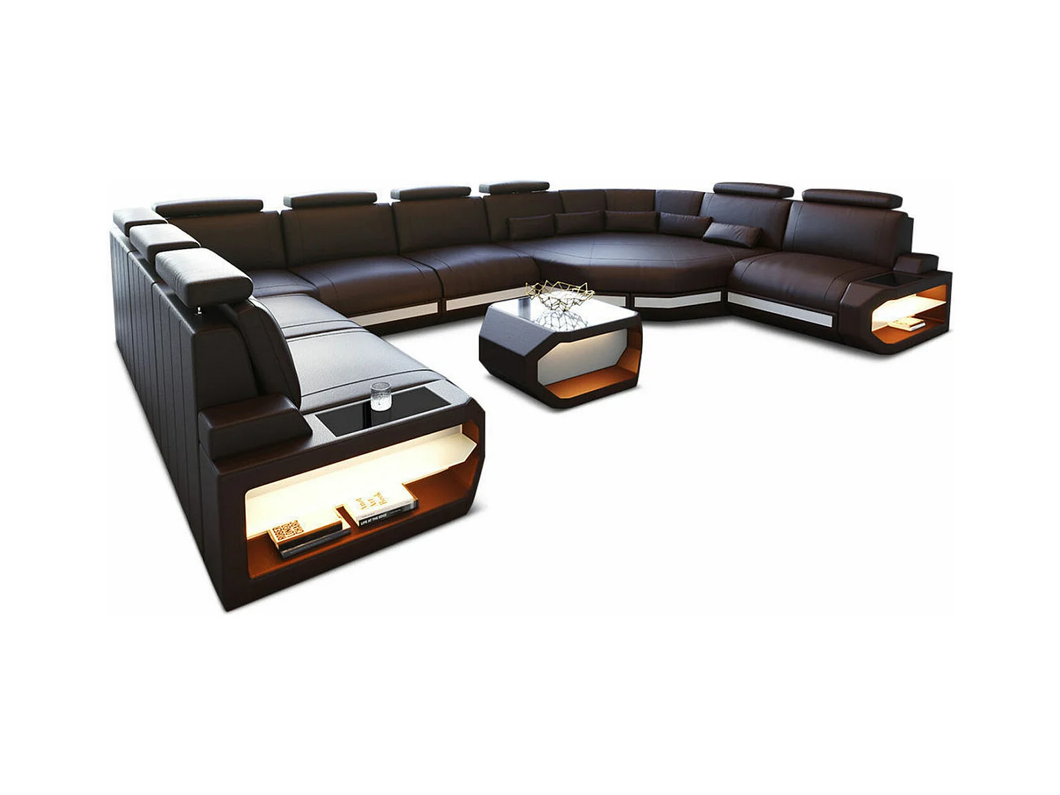 Sofa Asti U Leder Kunstleder Braun Weiß Links