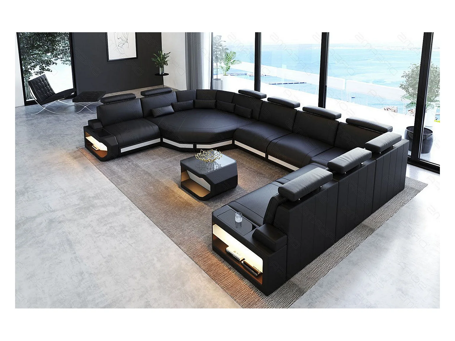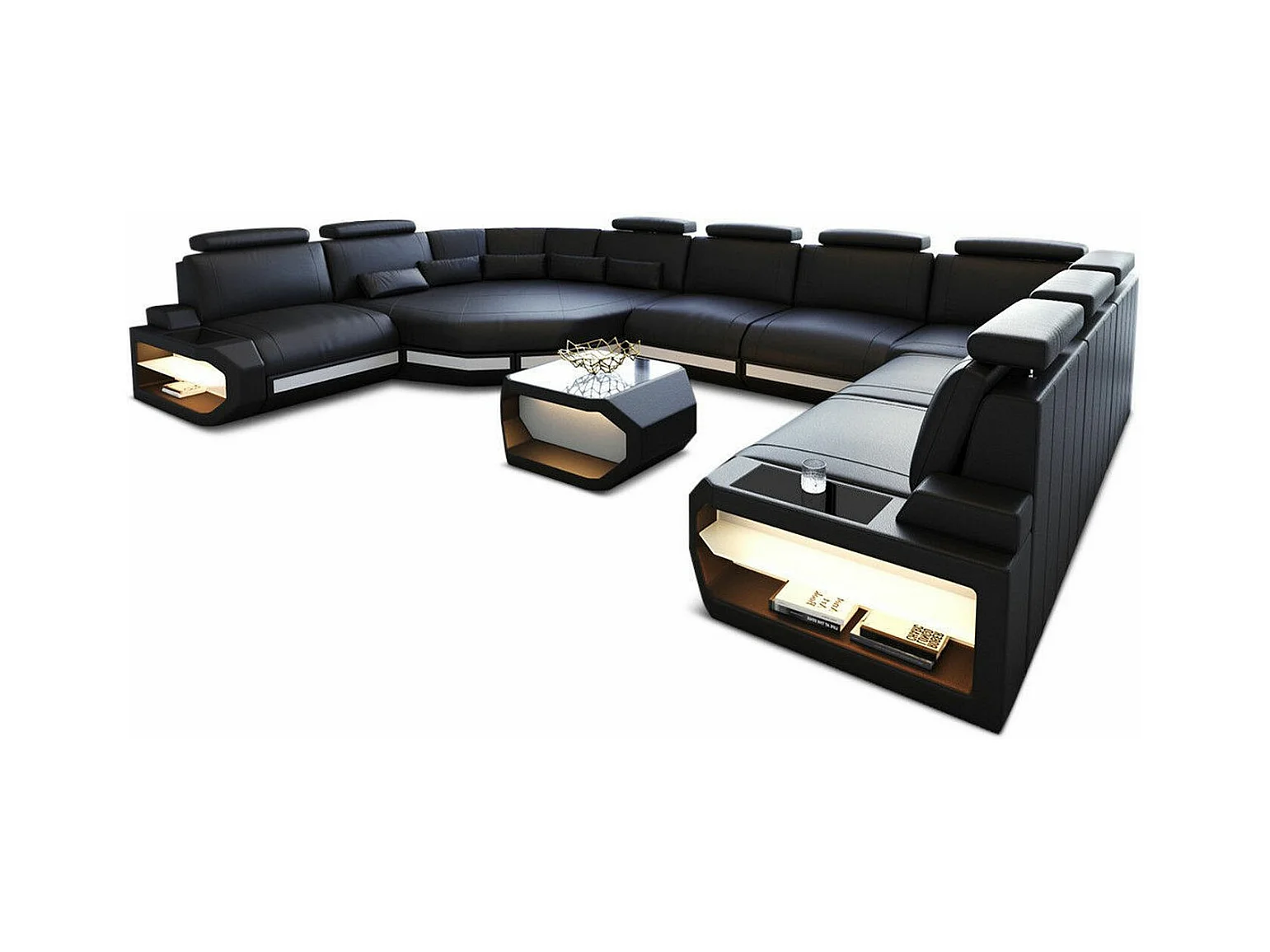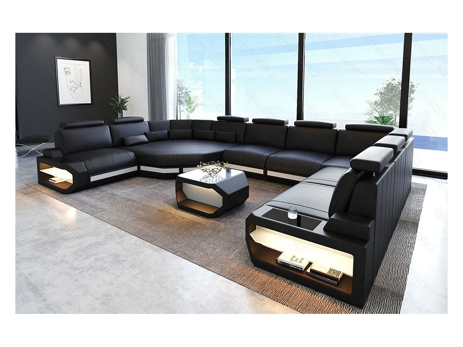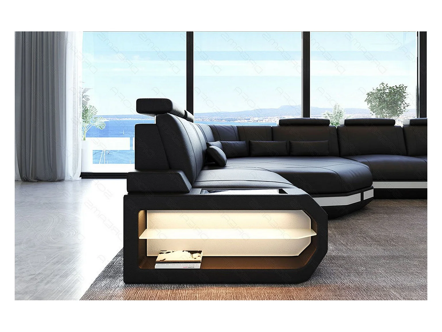 Sofa Asti U Leder Kunstleder Schwarz Weiß Rechts