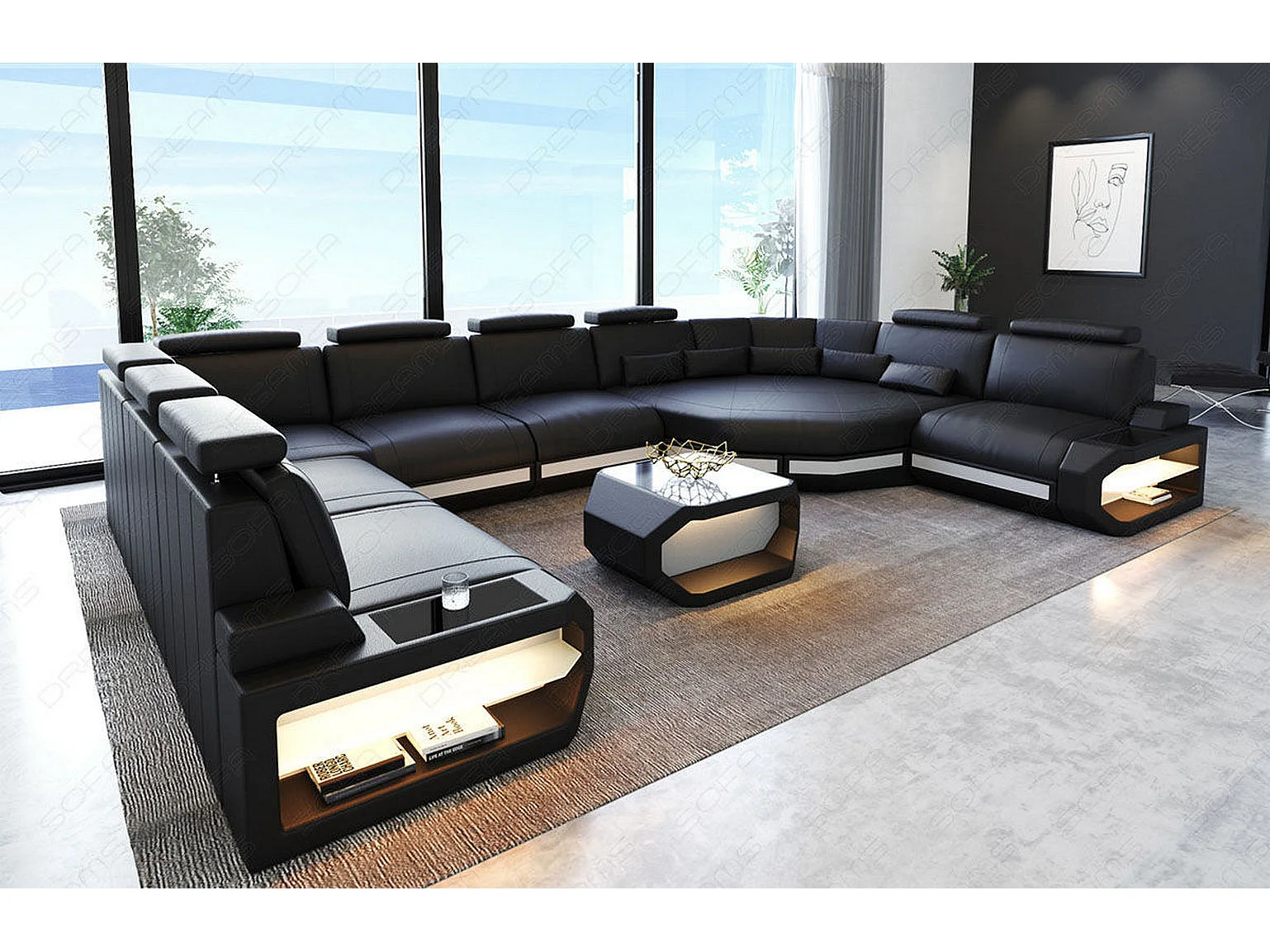 Sofa Asti U Leder Kunstleder Schwarz Weiß Links