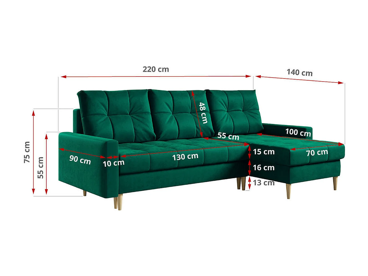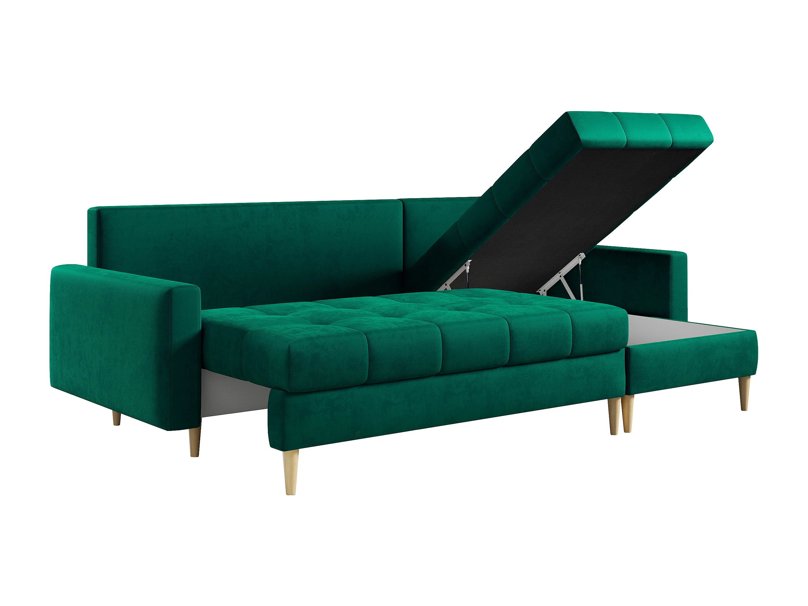 Ecksofa ASTRA - skandinavisch L-förmige Ecke, schlaffunktion - Dunkelgrün Velvet