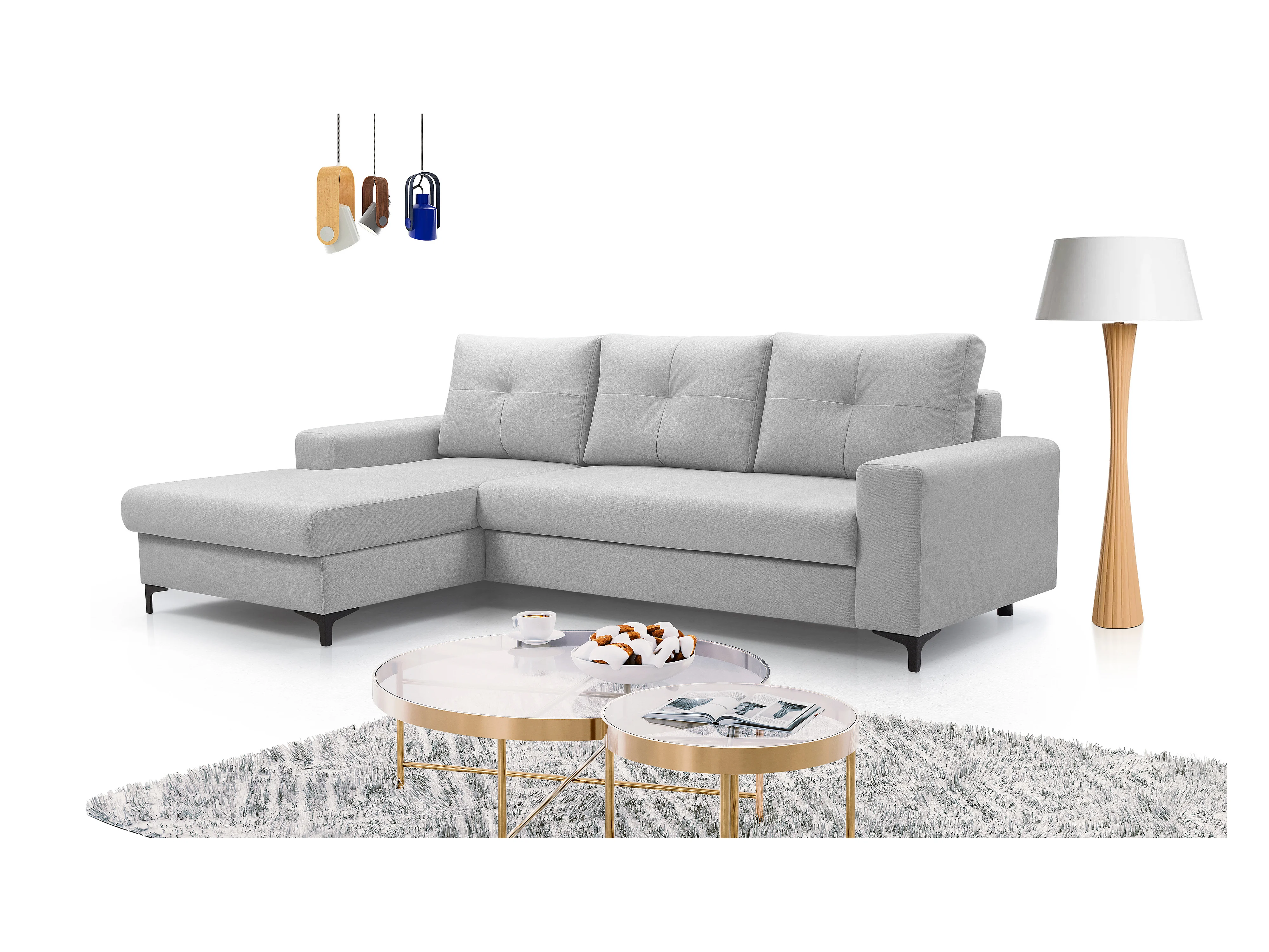 Ecksofa AVRA mit Schlaffunktion, Stauraum, linke Seite, 251x165x85 cm, Farbe: GRAU