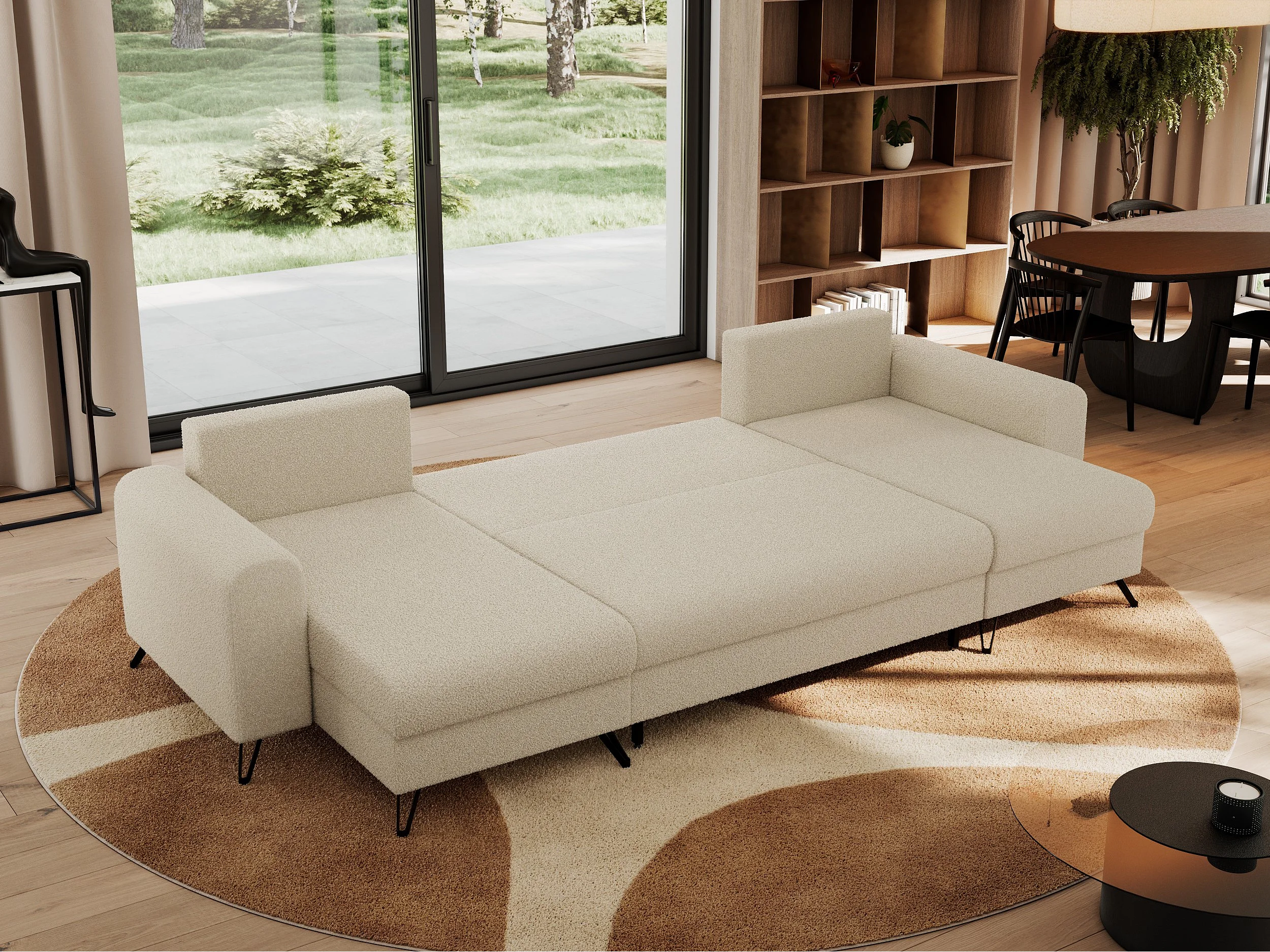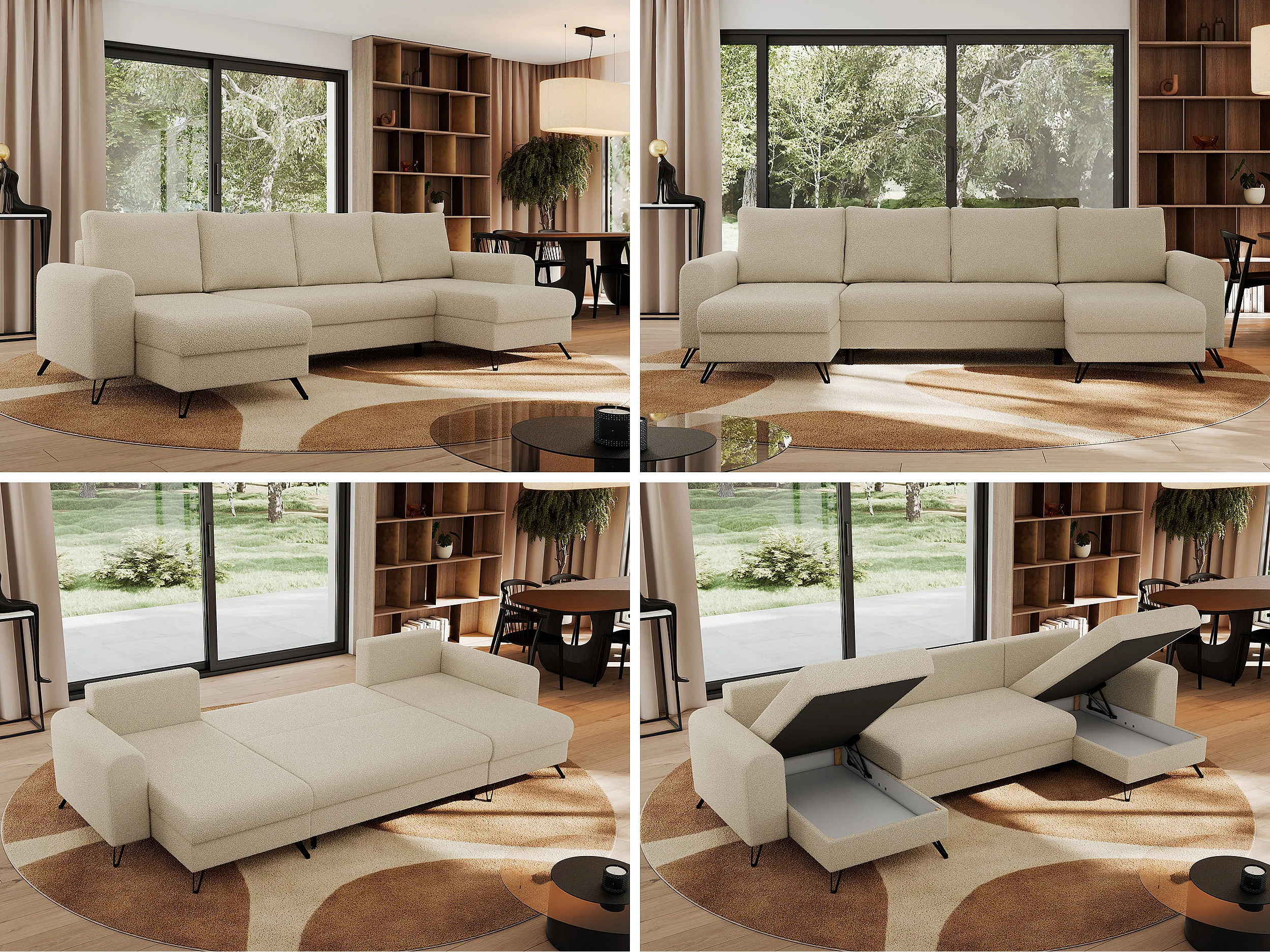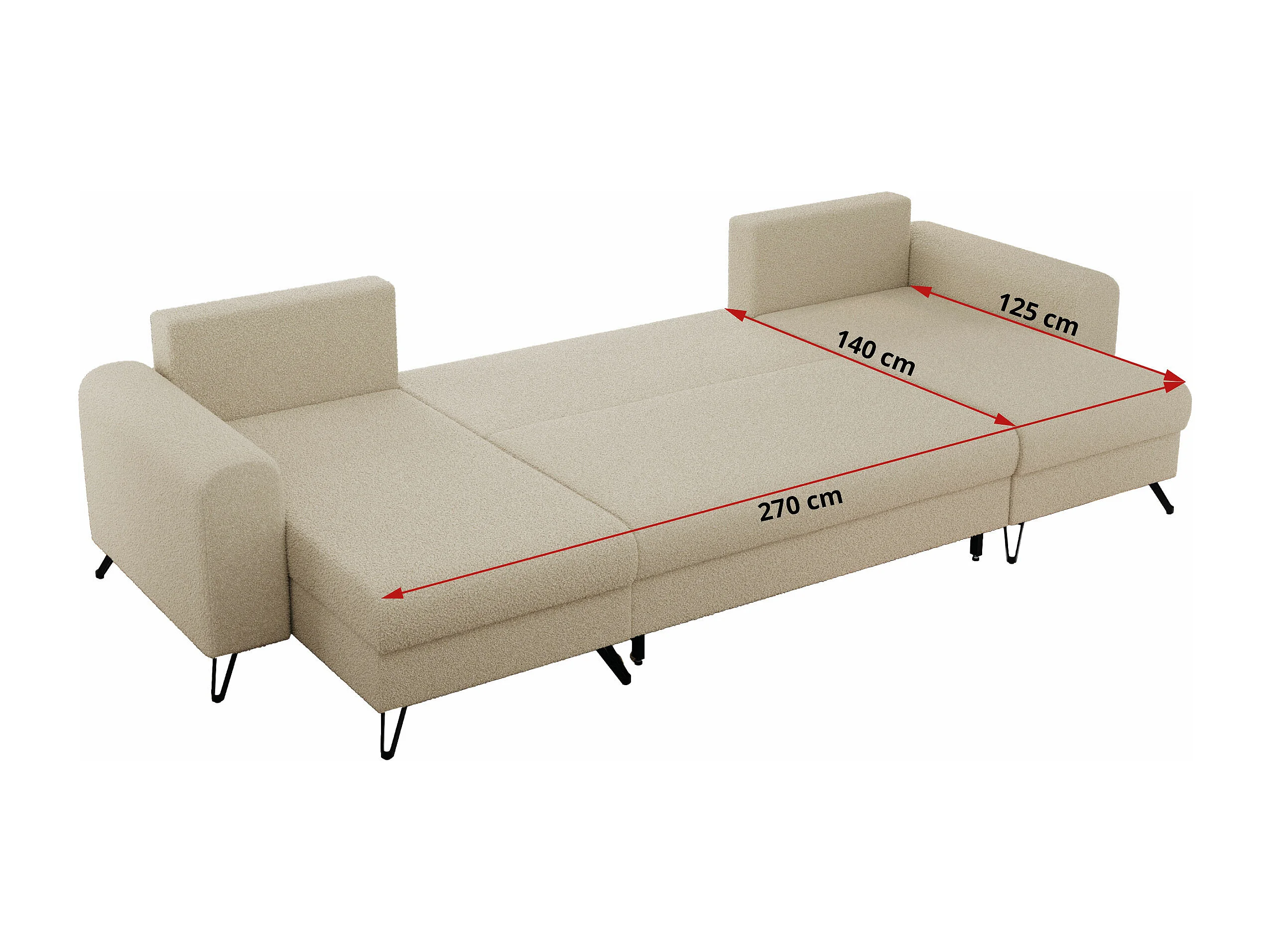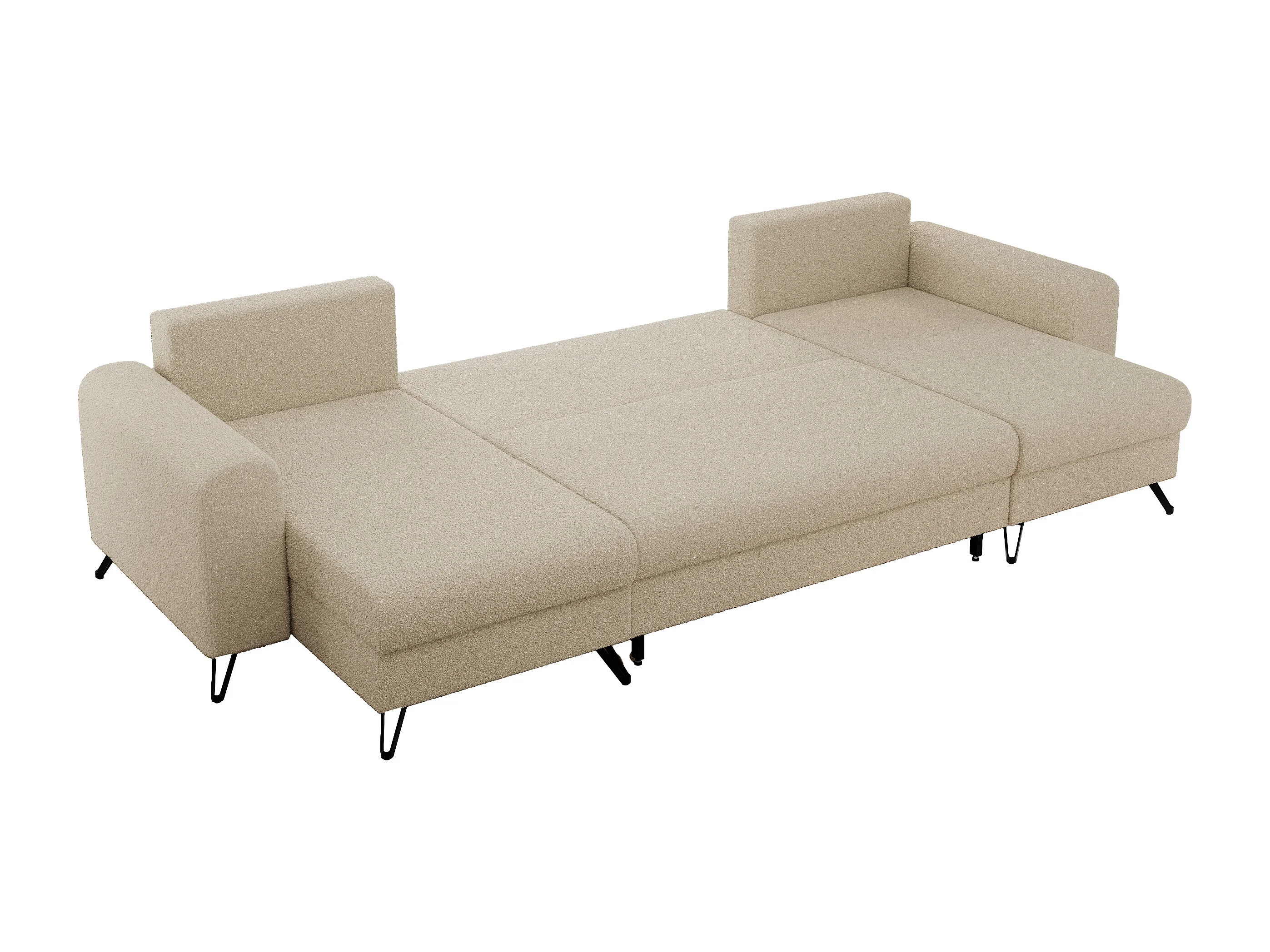 Ecksofa AXEL U, lose kissen, Ecksofa l-förmig, schlaffunktion und Bettkästen - Beige Boucle