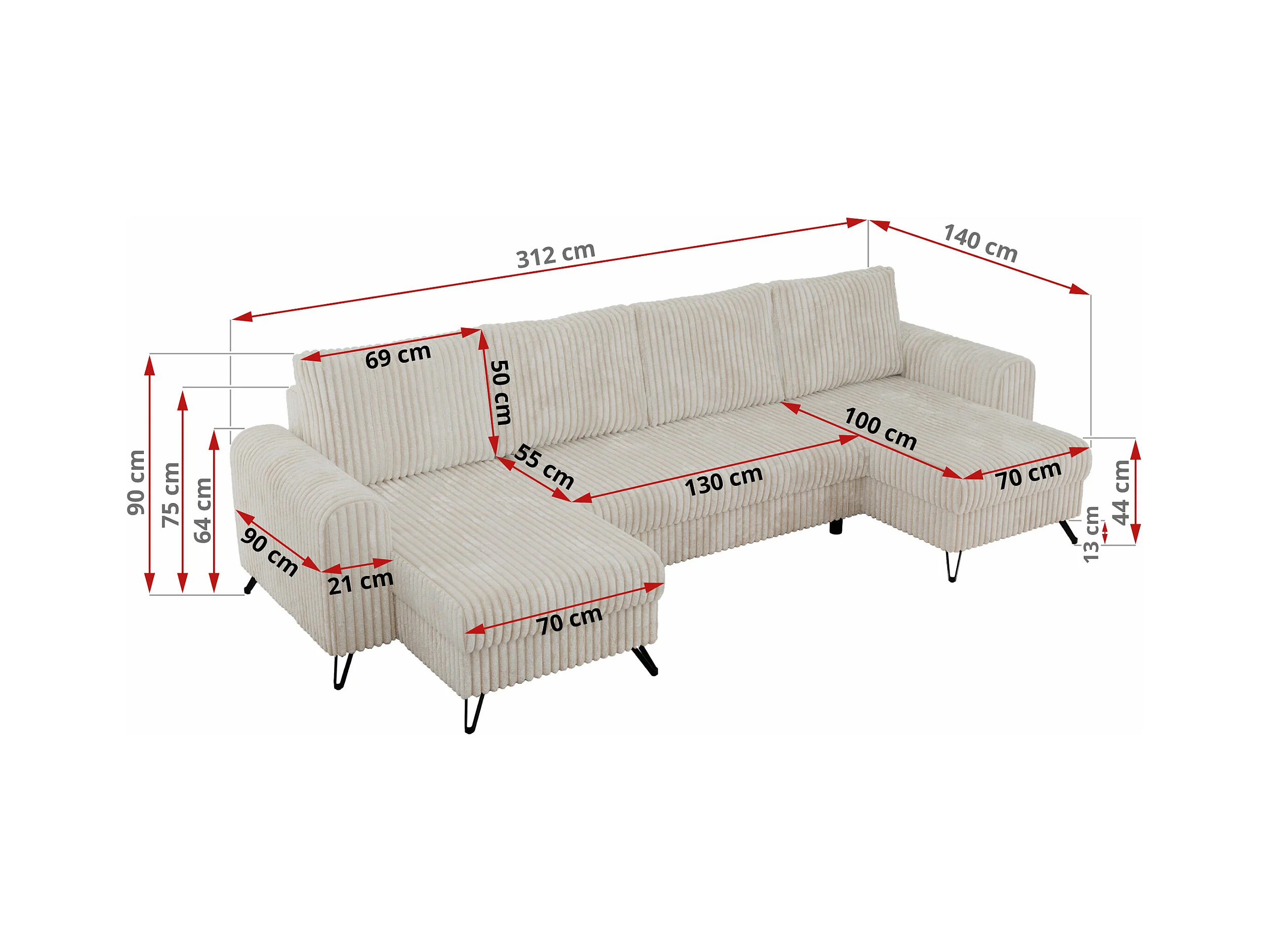 Ecksofa AXEL U, lose kissen, Ecksofa l-förmig, schlaffunktion und Bettkästen - Beige Cord