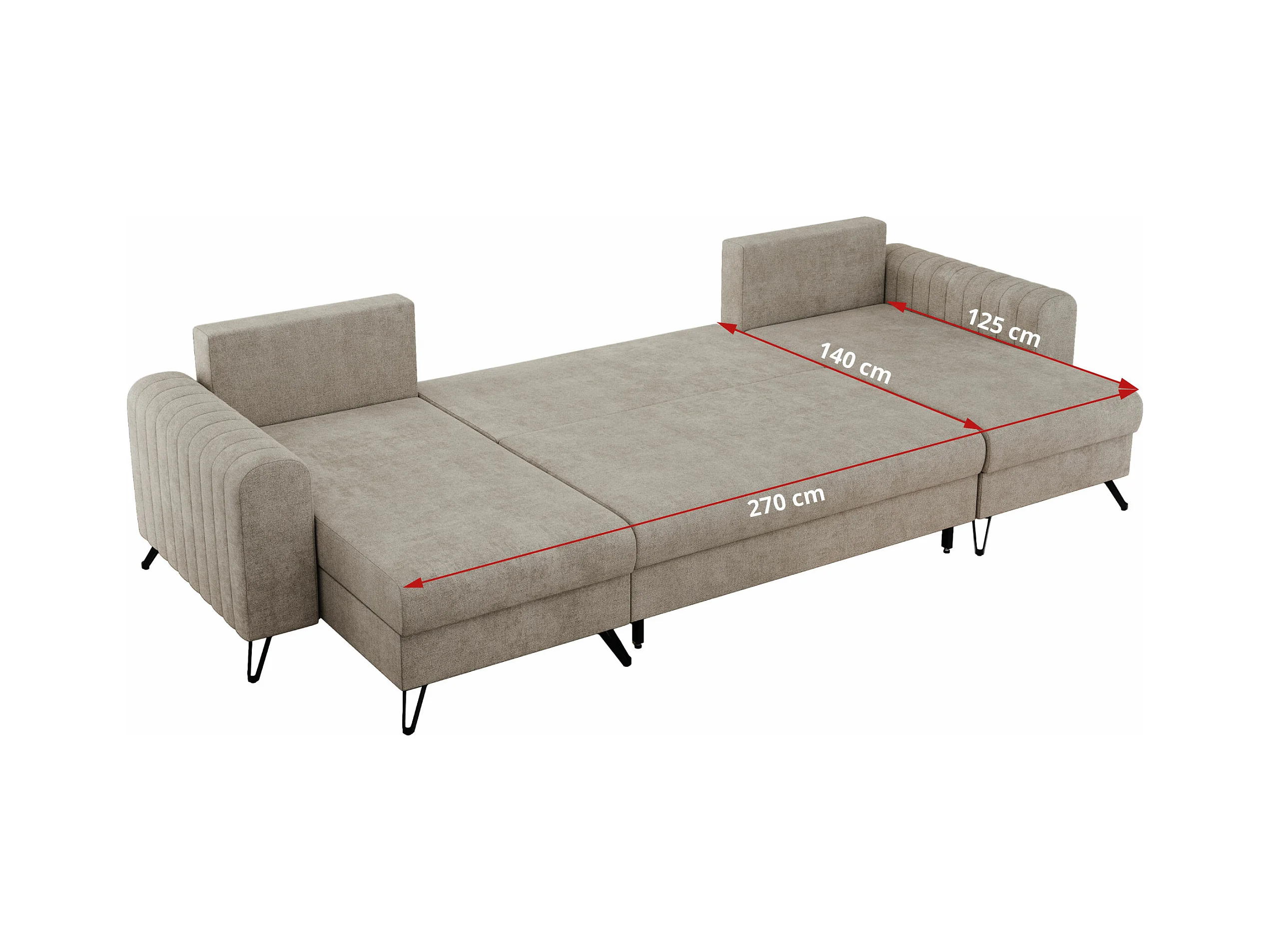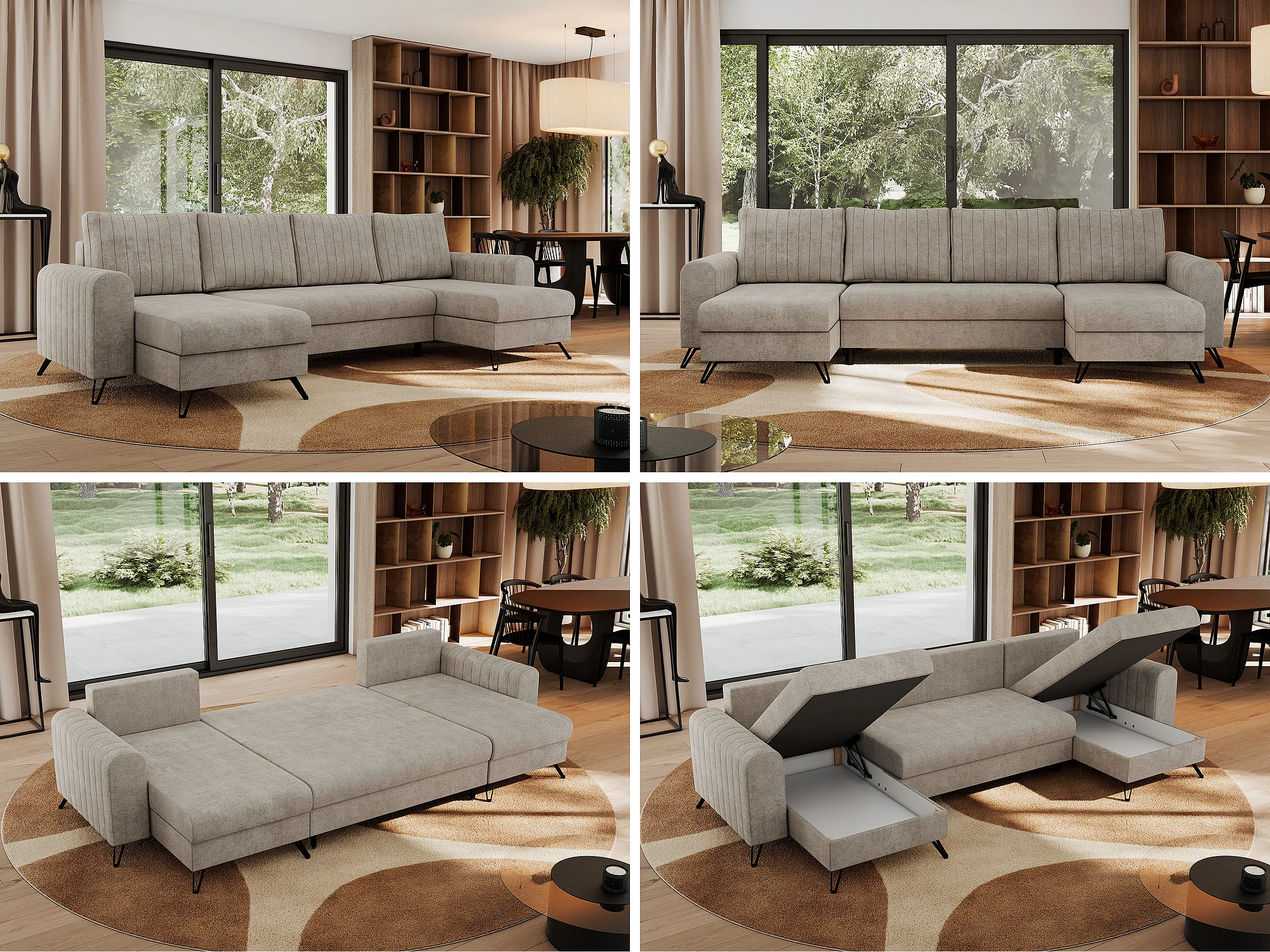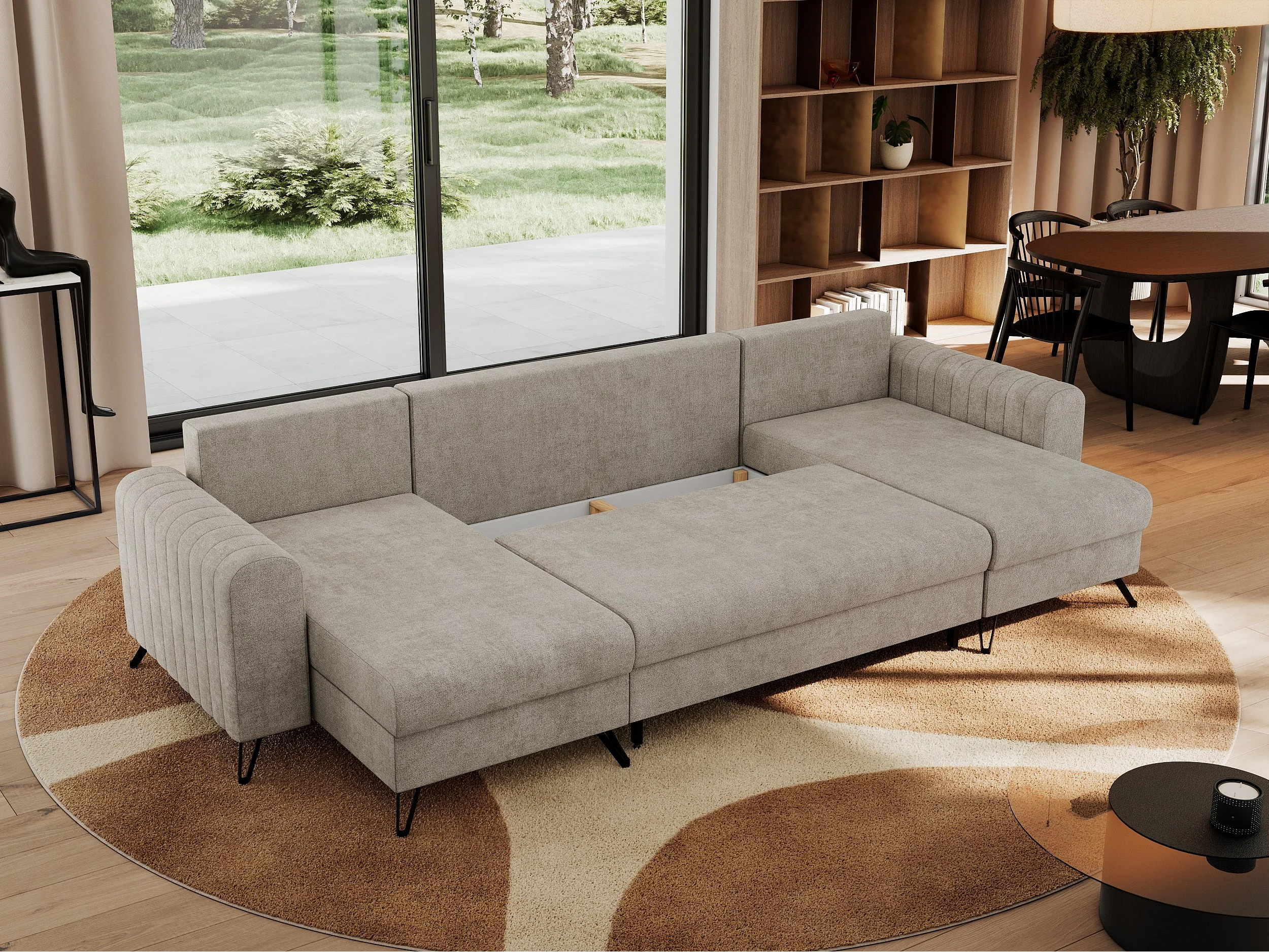 Ecksofa AXEL U, lose kissen, Ecksofa l-förmig, schlaffunktion und Bettkästen - Beige Struktur