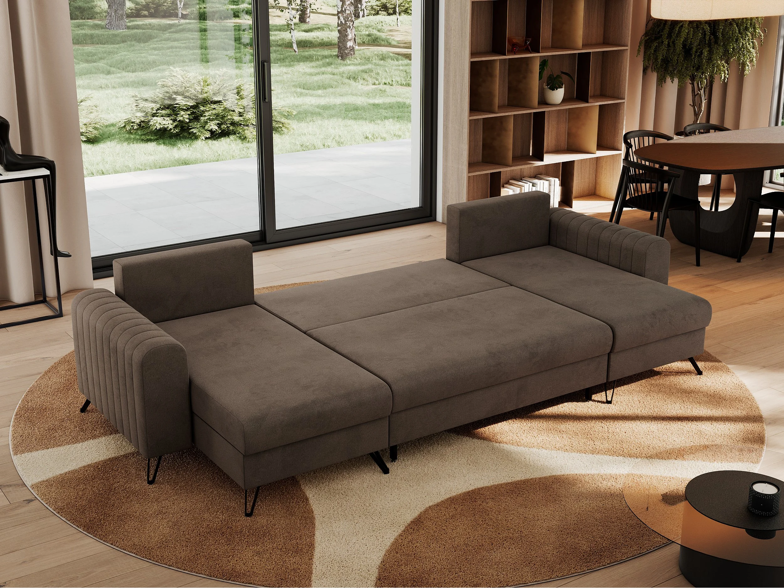 Ecksofa AXEL U, lose kissen, Ecksofa l-förmig, schlaffunktion und Bettkästen - Braun Velvet