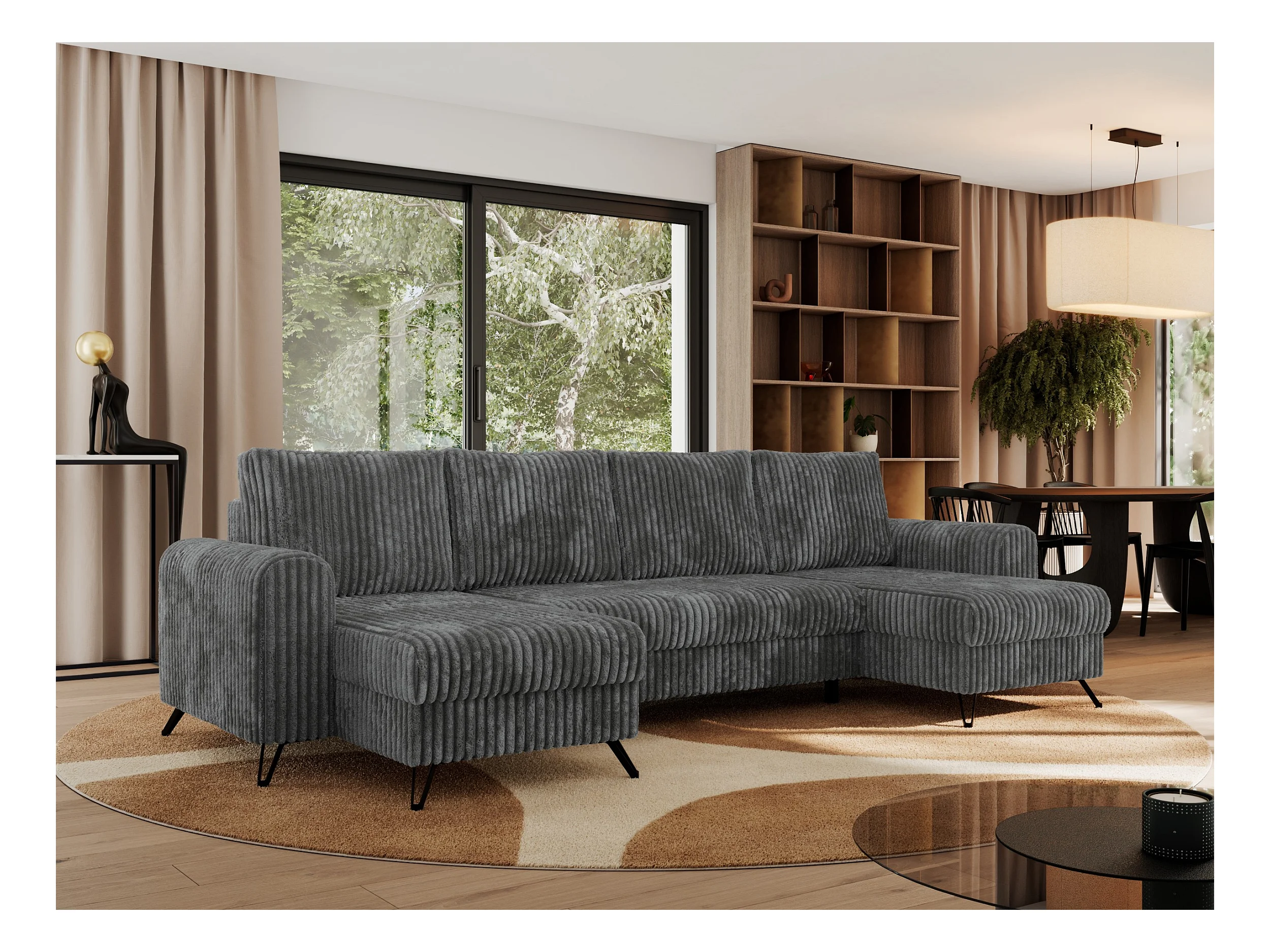 Ecksofa AXEL U, lose kissen, Ecksofa l-förmig, schlaffunktion und Bettkästen - Dunkelgrau Cord