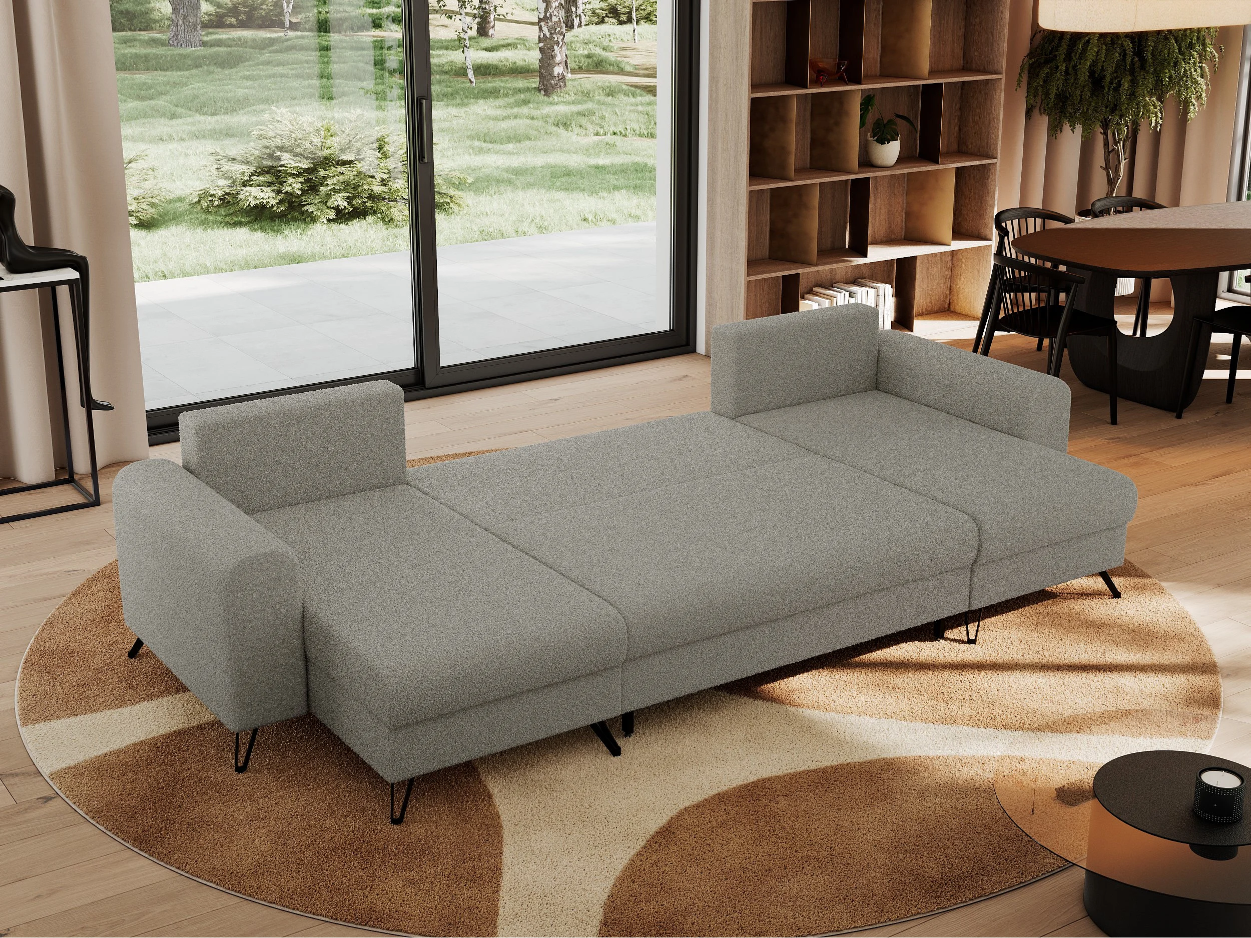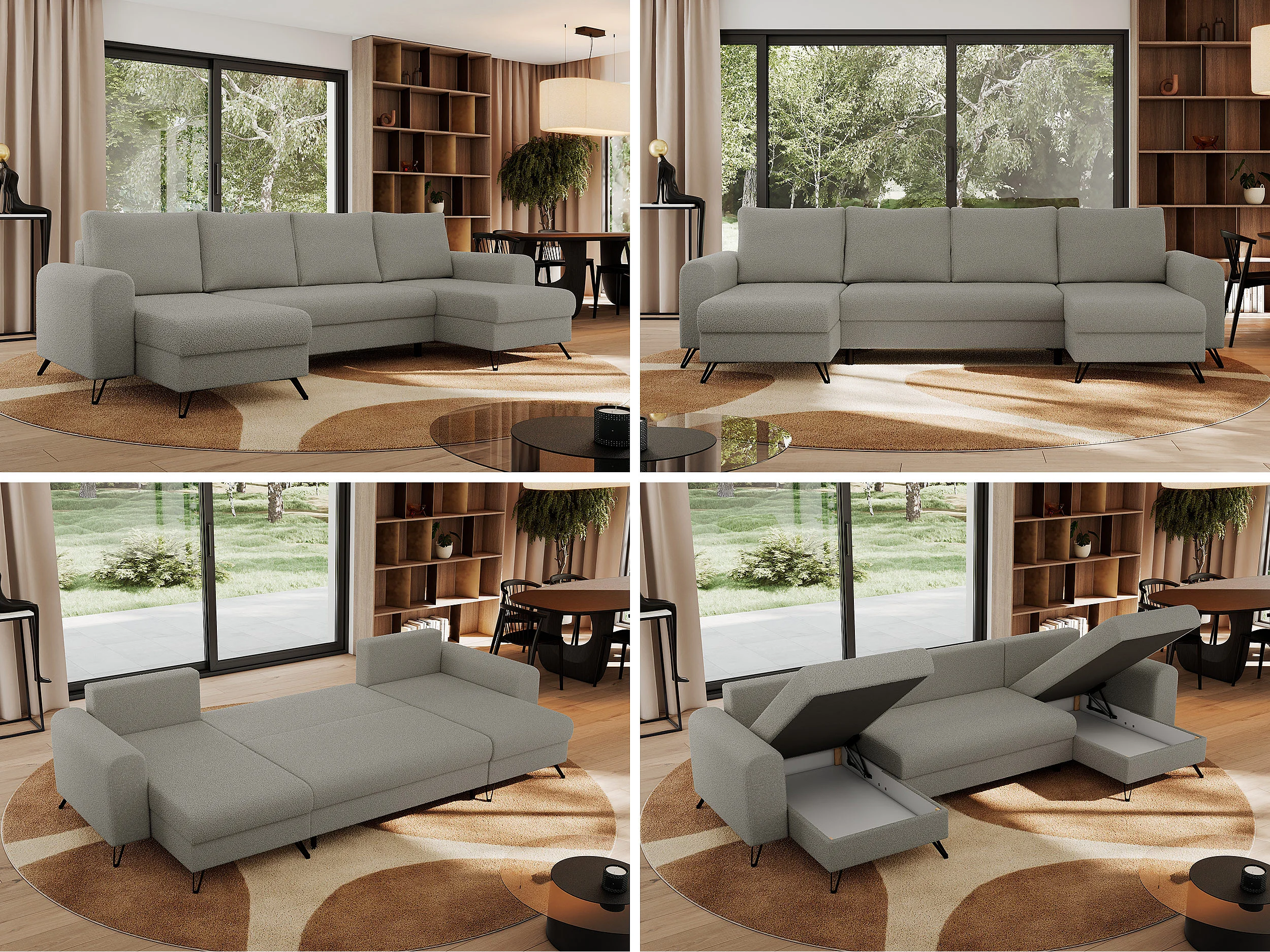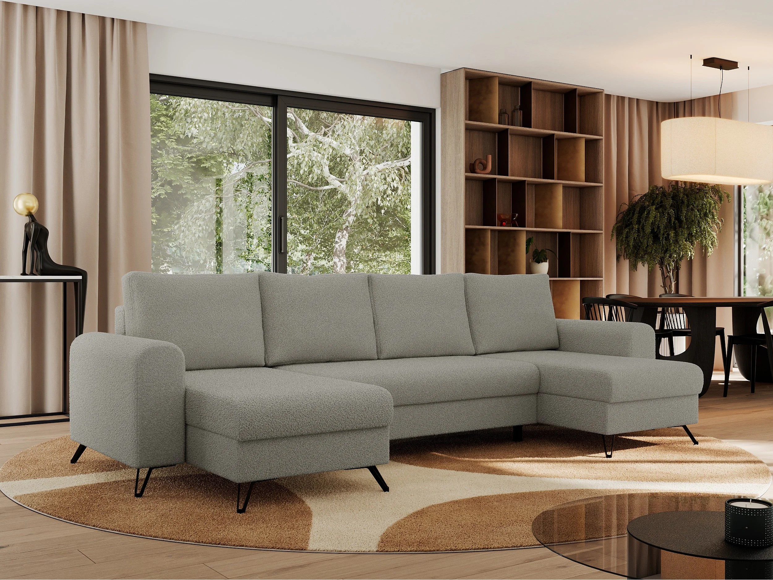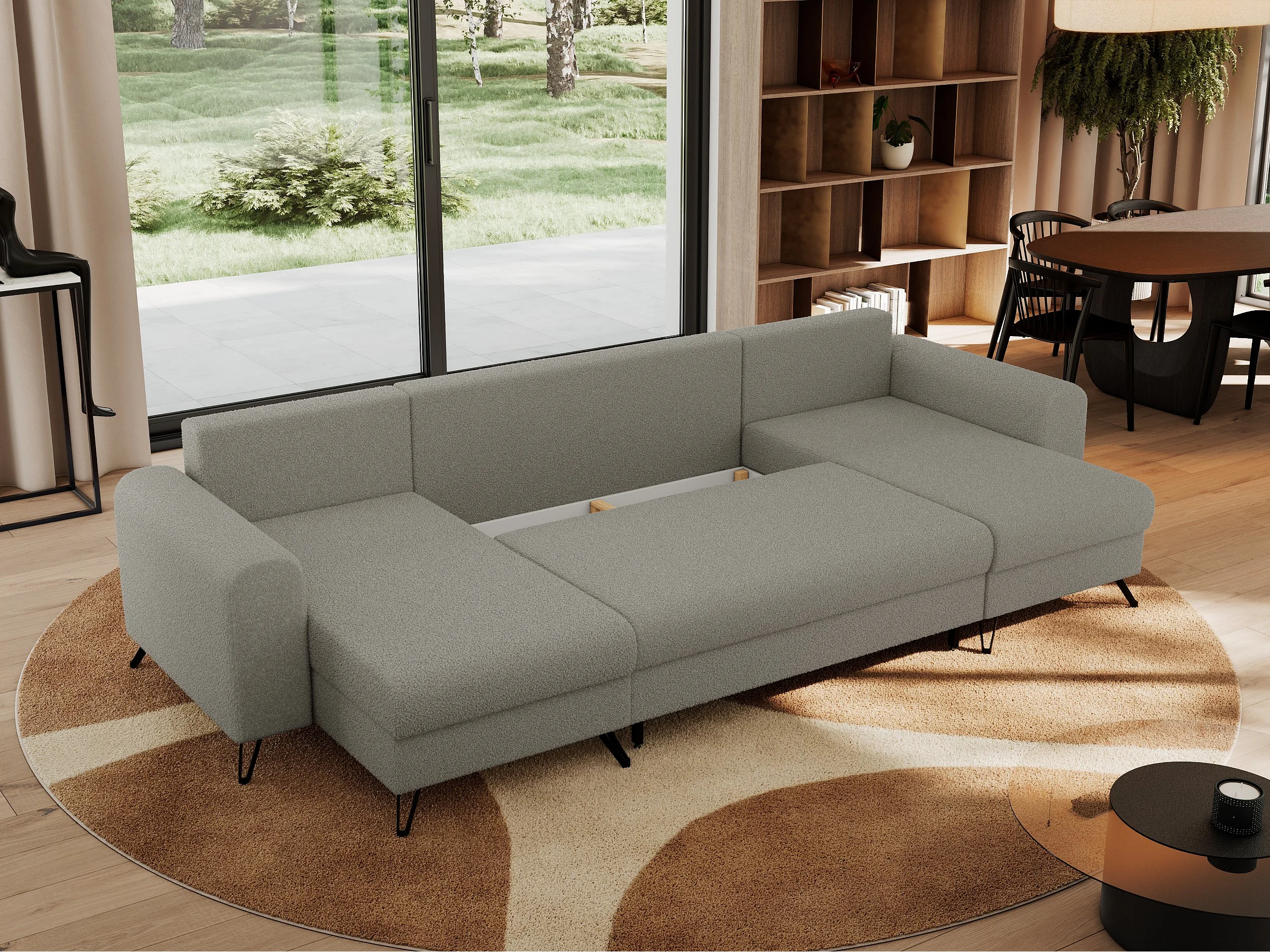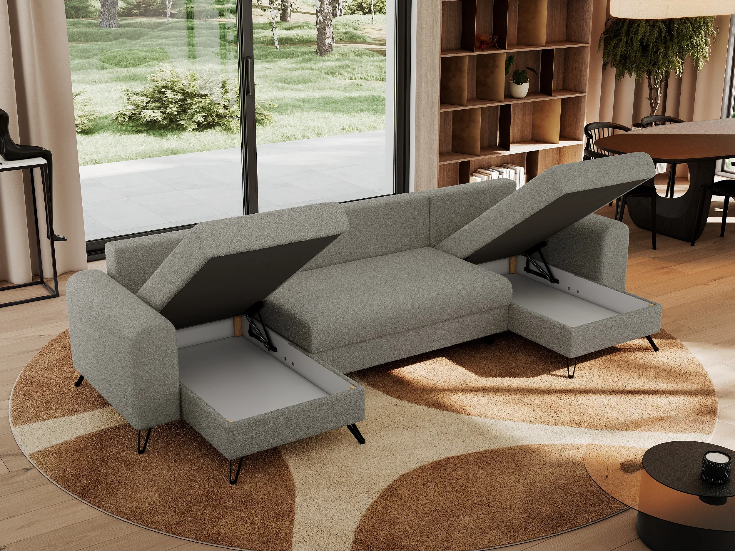Ecksofa AXEL U, lose kissen, Ecksofa l-förmig, schlaffunktion und Bettkästen - Hellgrau Boucle