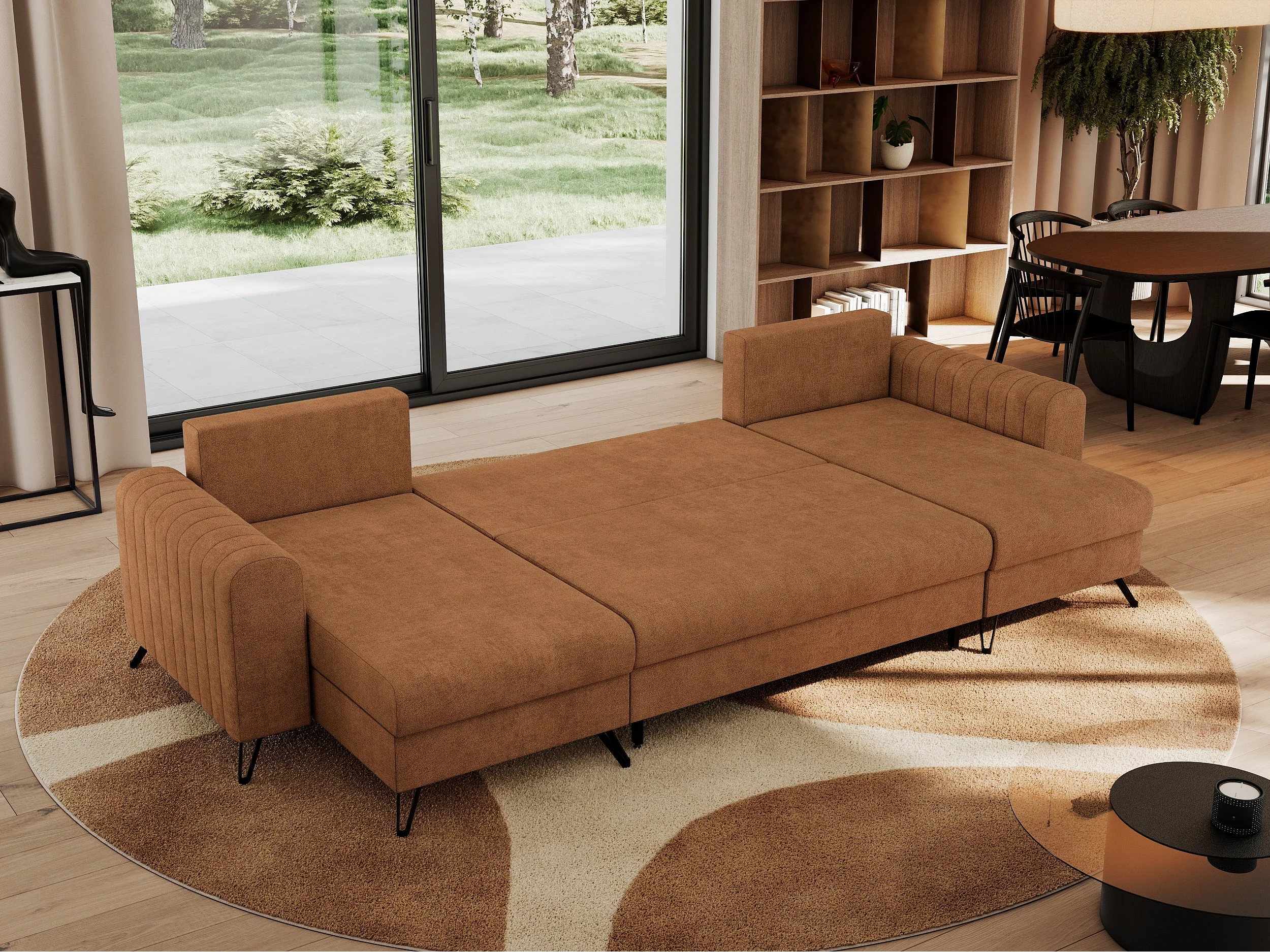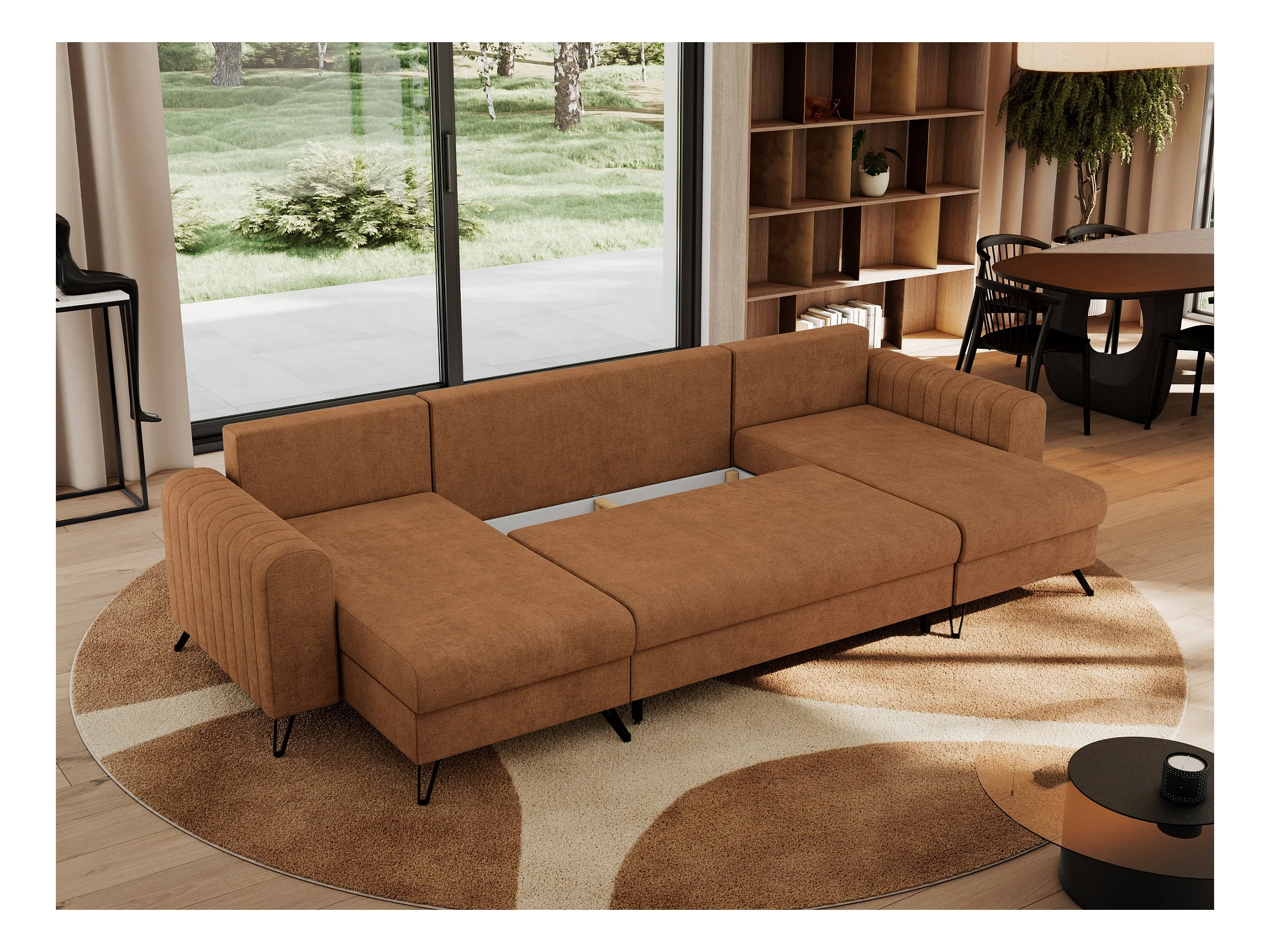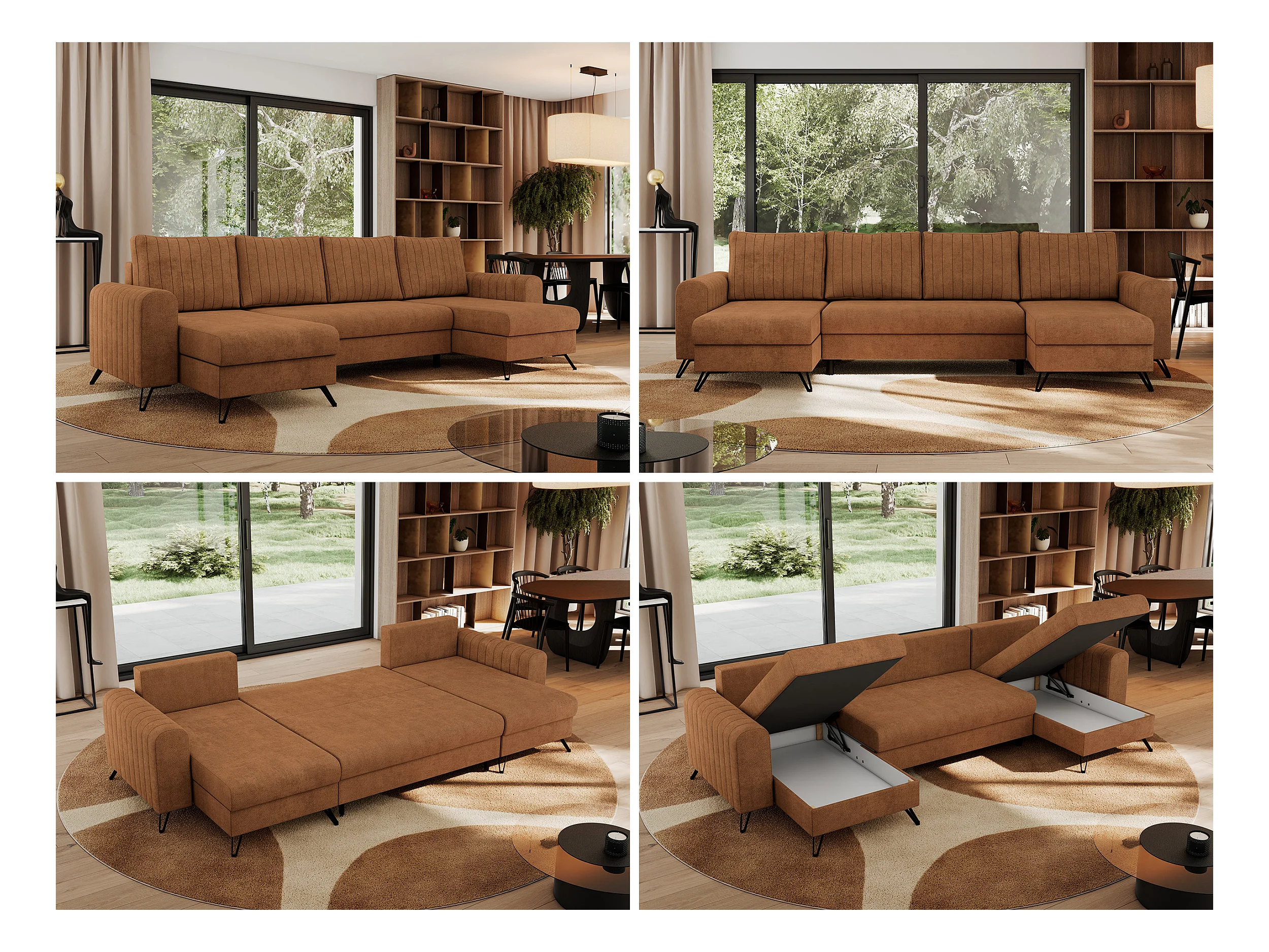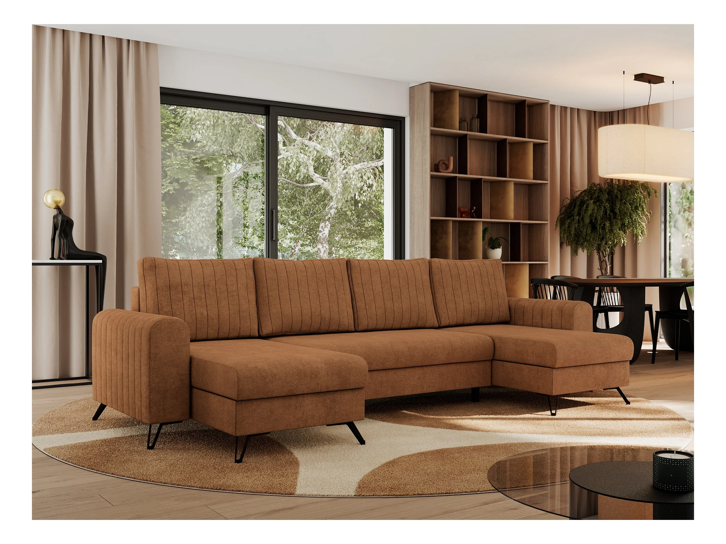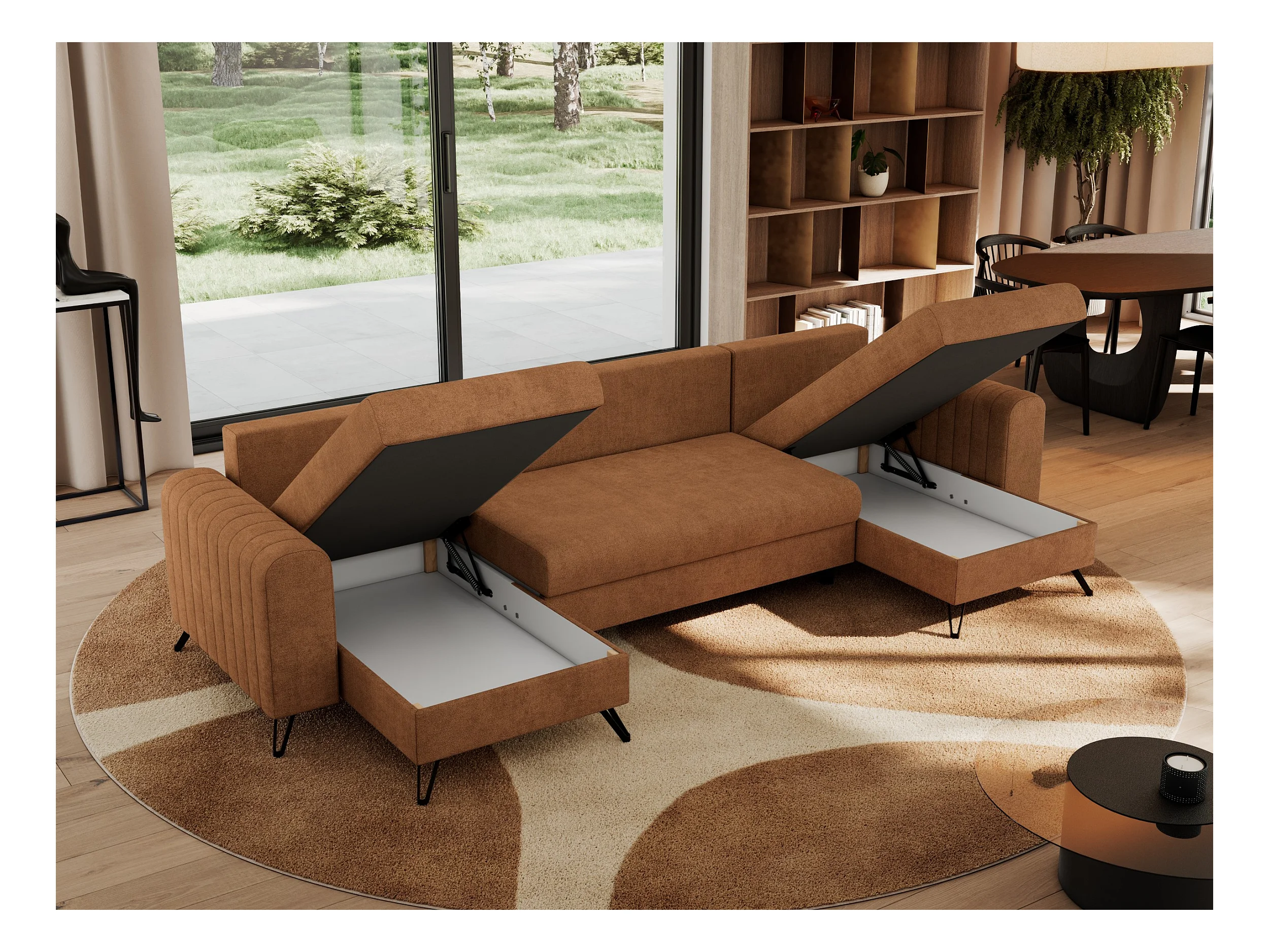 Ecksofa AXEL U, lose kissen, Ecksofa l-förmig, schlaffunktion und Bettkästen - Orange Struktur