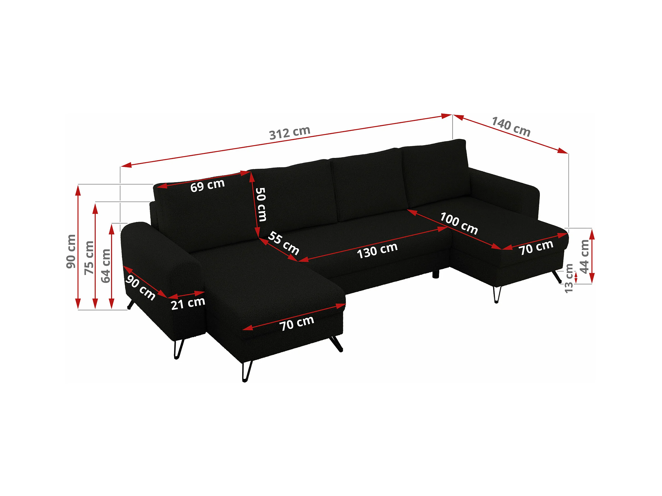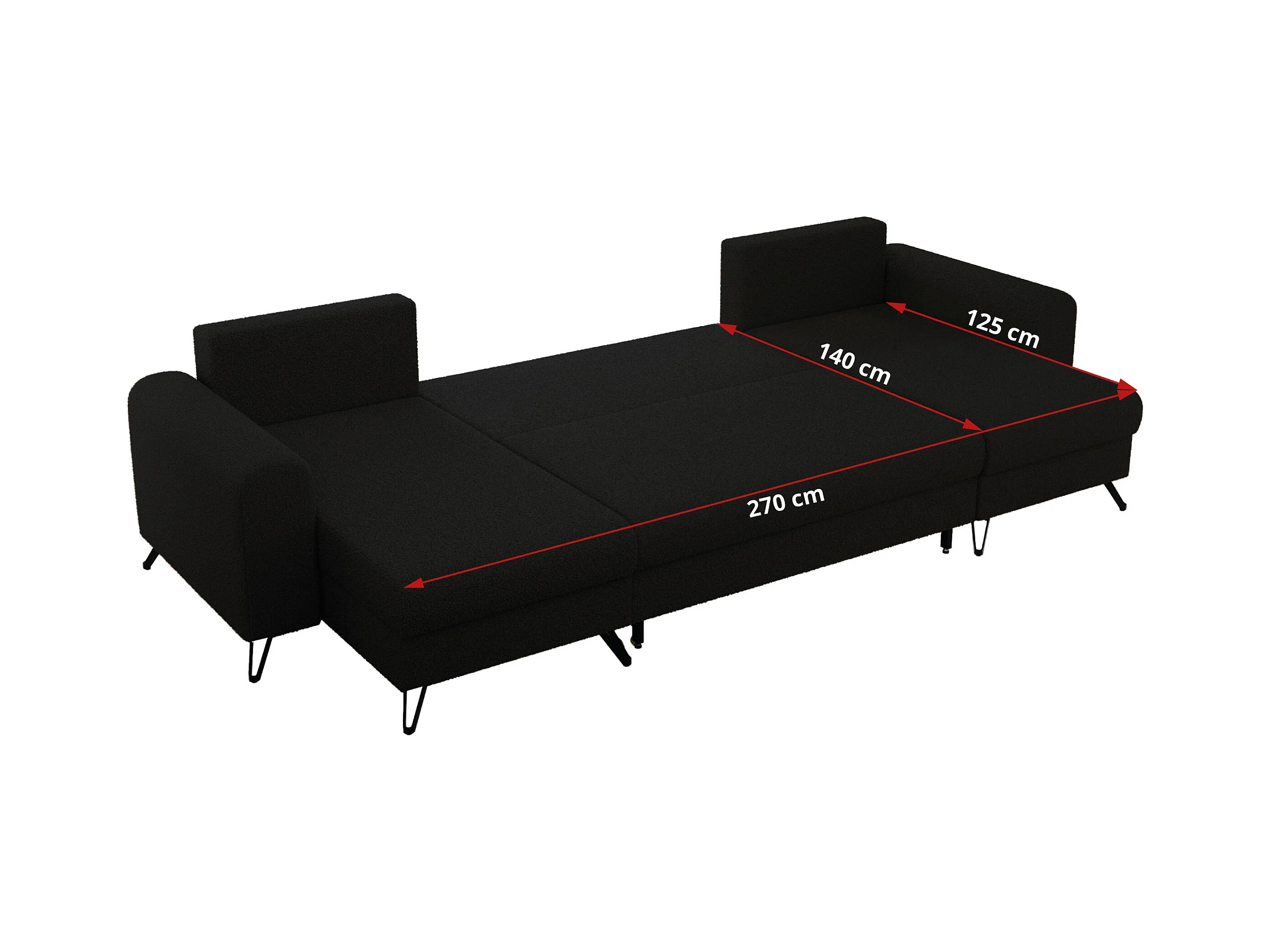 Ecksofa AXEL U, lose kissen, Ecksofa l-förmig, schlaffunktion und Bettkästen - Schwarz Boucle