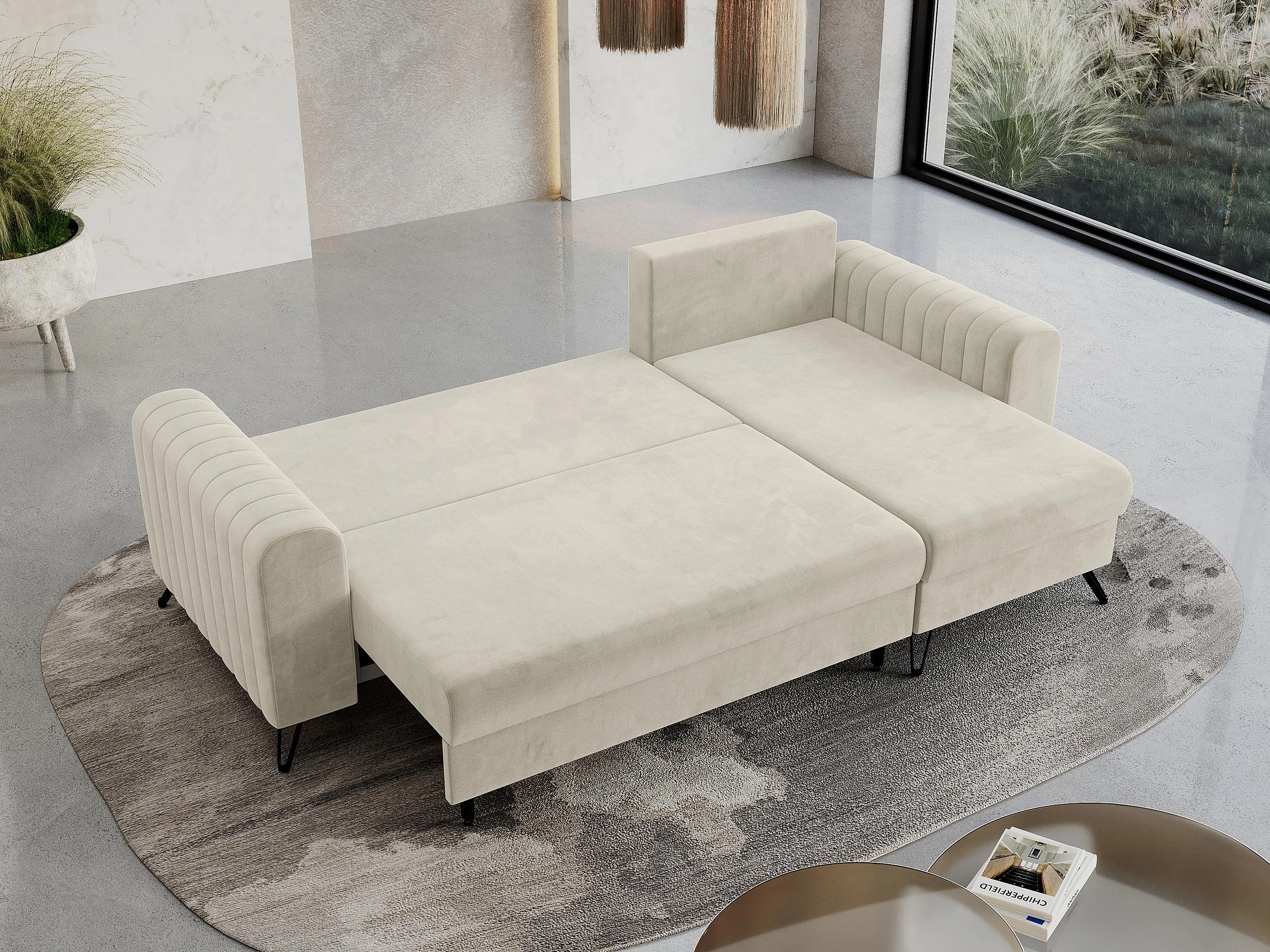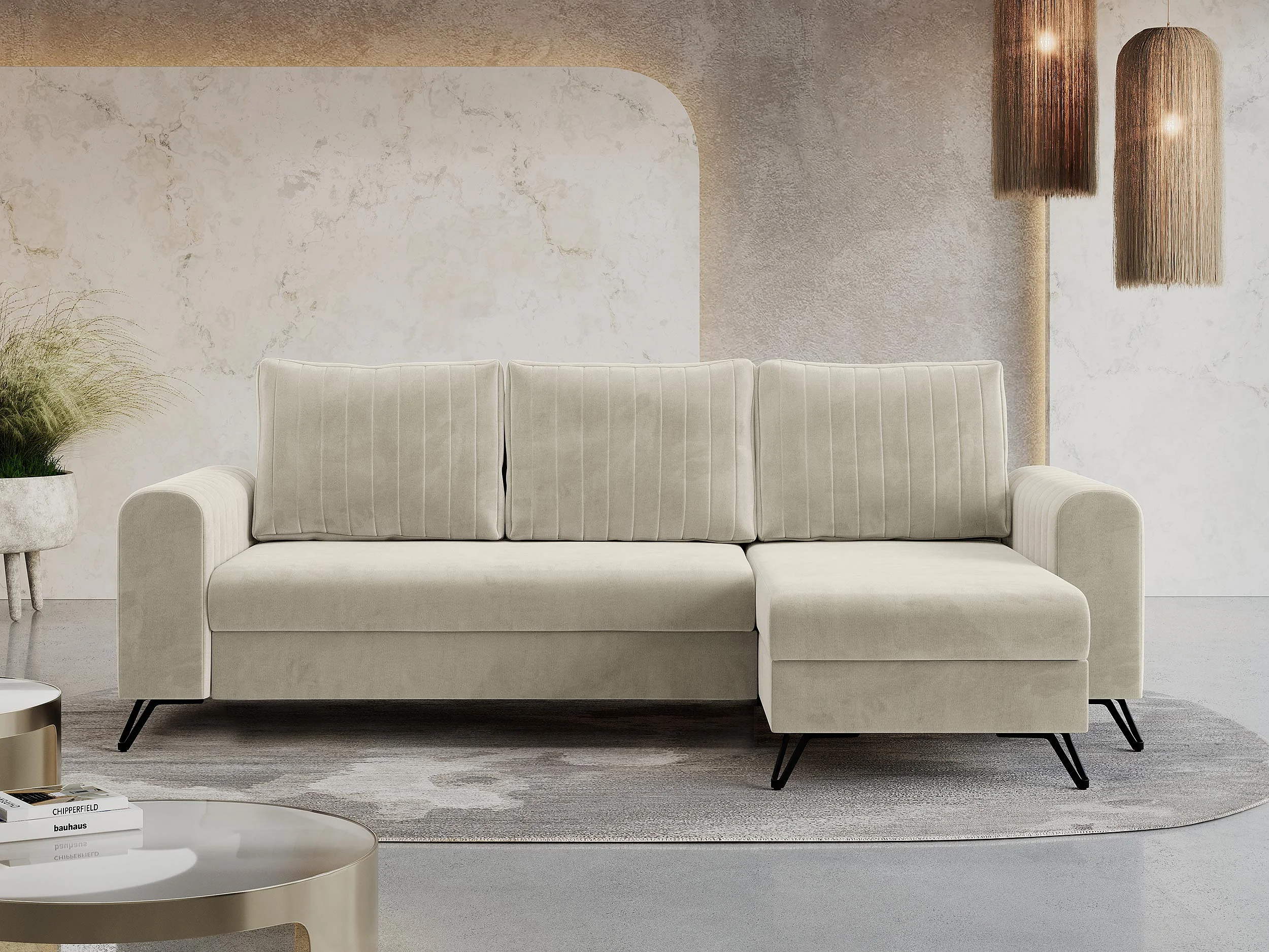 Ecksofa AXEL - universal mit schlaffunktion, Bettkasten - Beige Velvet