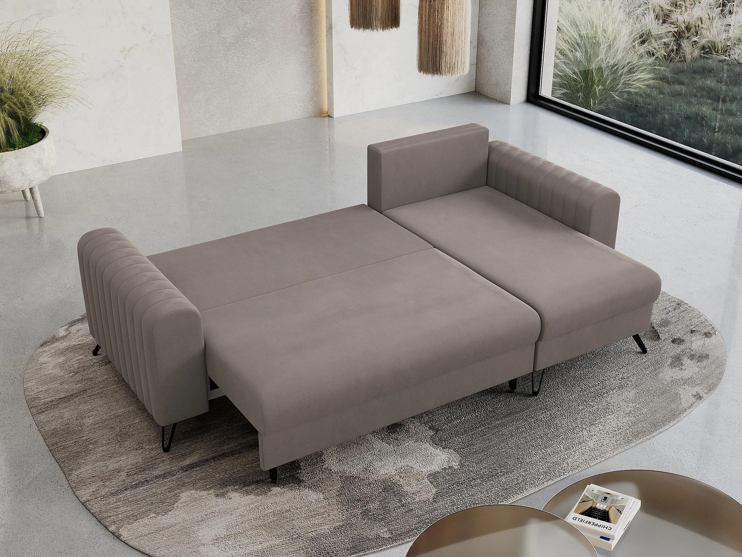 Ecksofa AXEL - universal mit schlaffunktion, Bettkasten - Braun Velvet