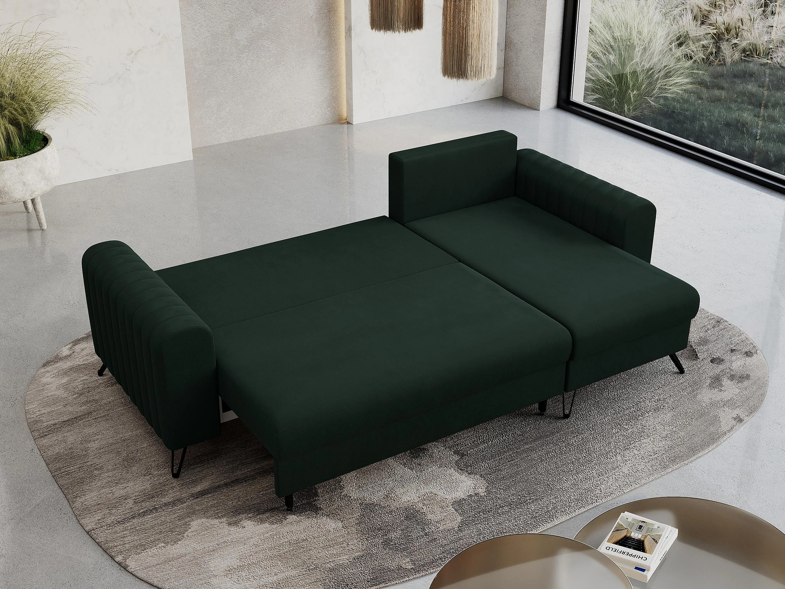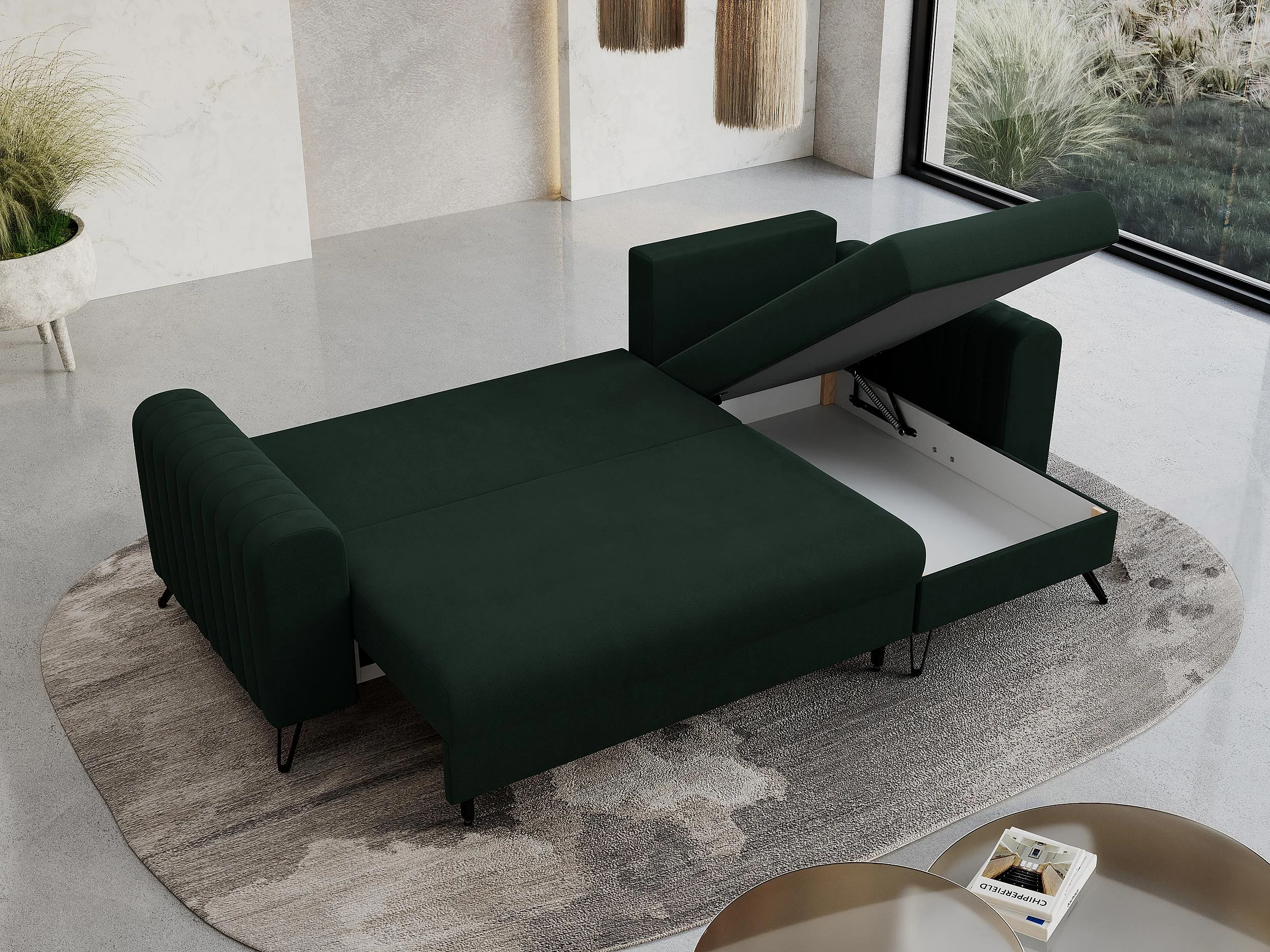 Ecksofa AXEL - universal mit schlaffunktion, Bettkasten - Grün Velvet