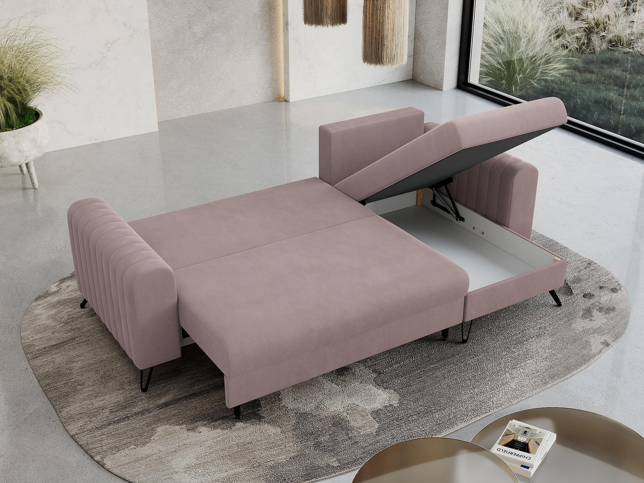 Ecksofa AXEL - universal mit schlaffunktion, Bettkasten - Rosa Velvet