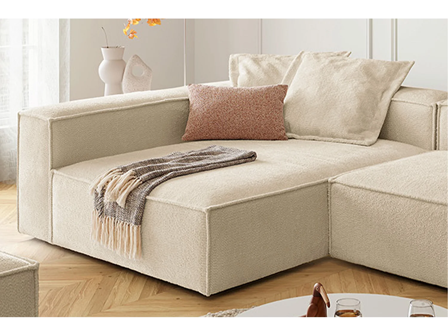 Ecksofa - Beige Flachgewebe - CARMO
