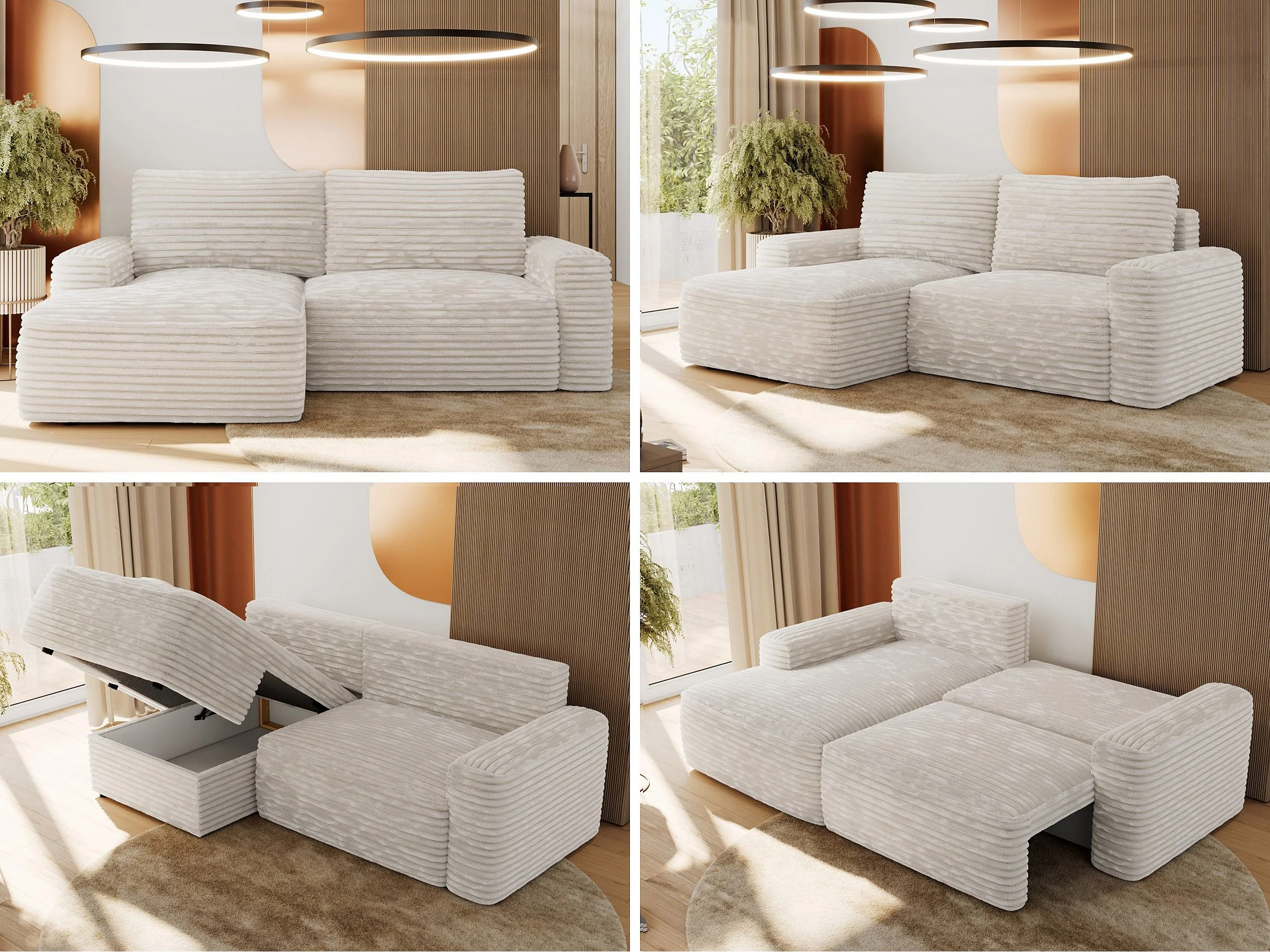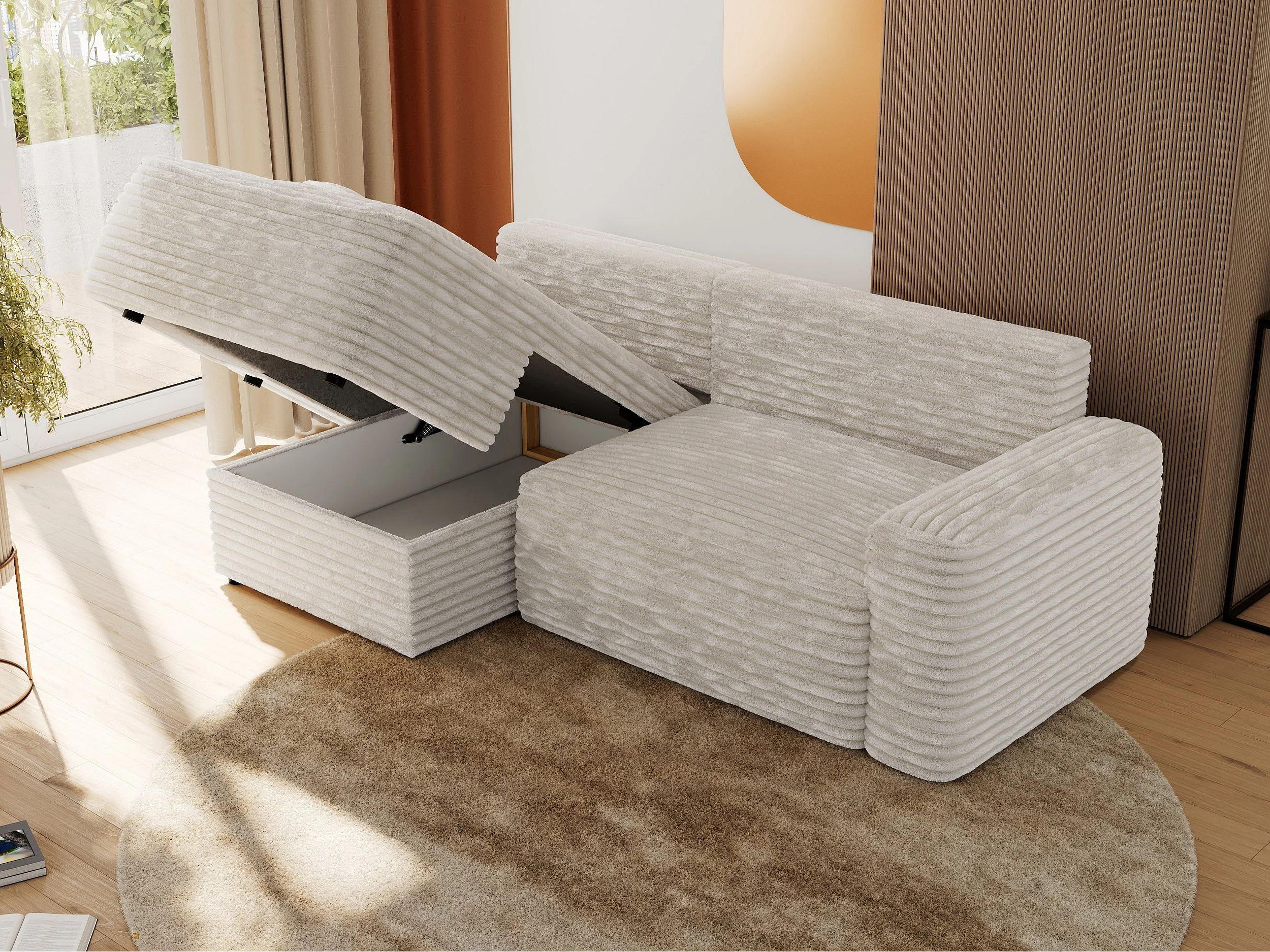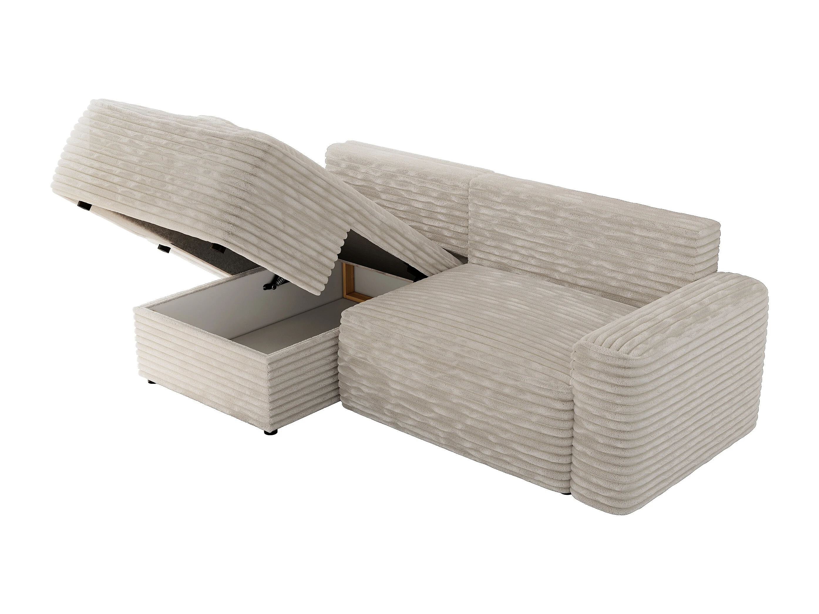 Ecksofa BELLUNO - Schlafsofa mit Bettkasten, Armlehnen, Couch L-form mit Schlaffunktion - Beige Cord - Ecke Links