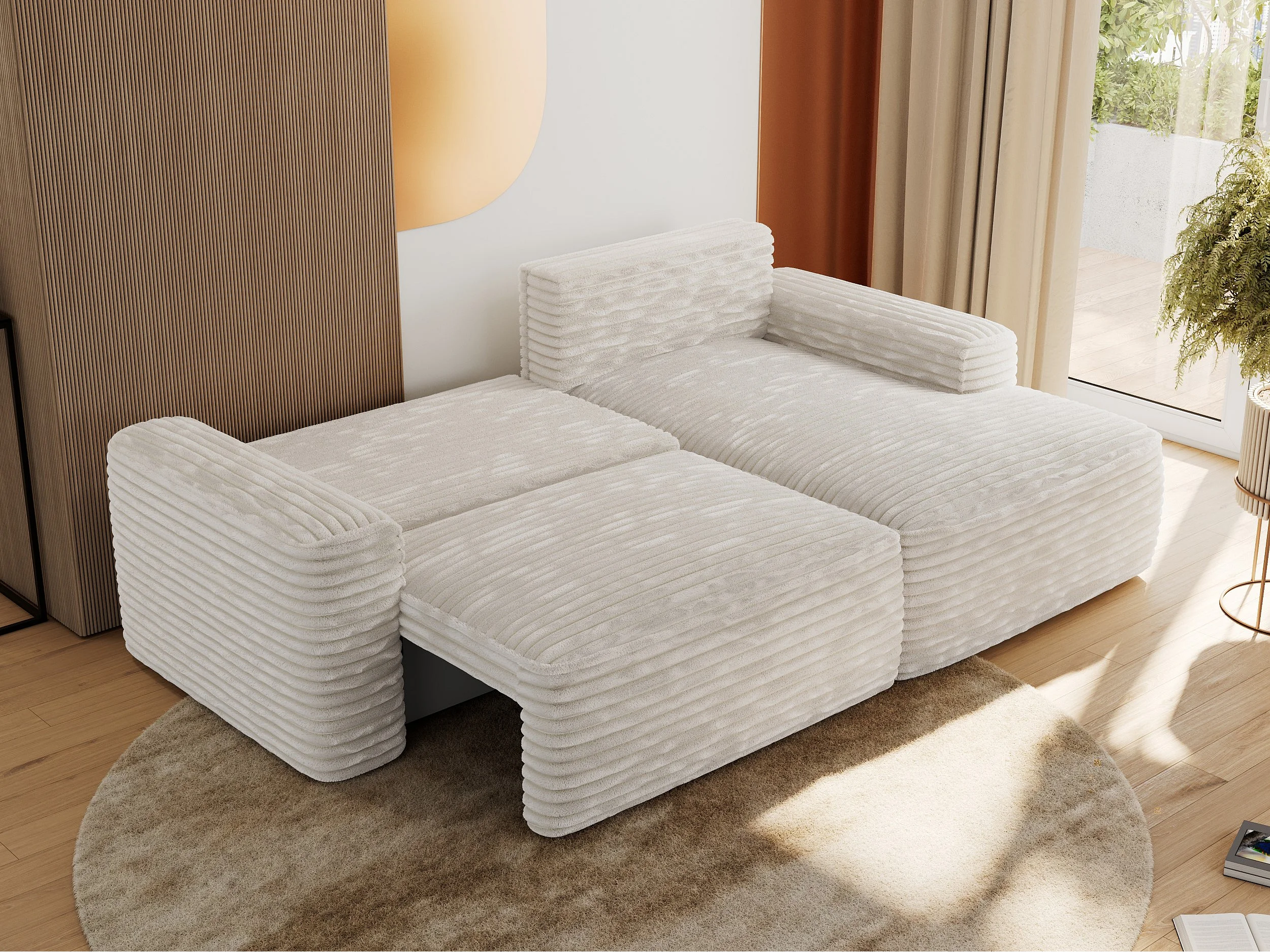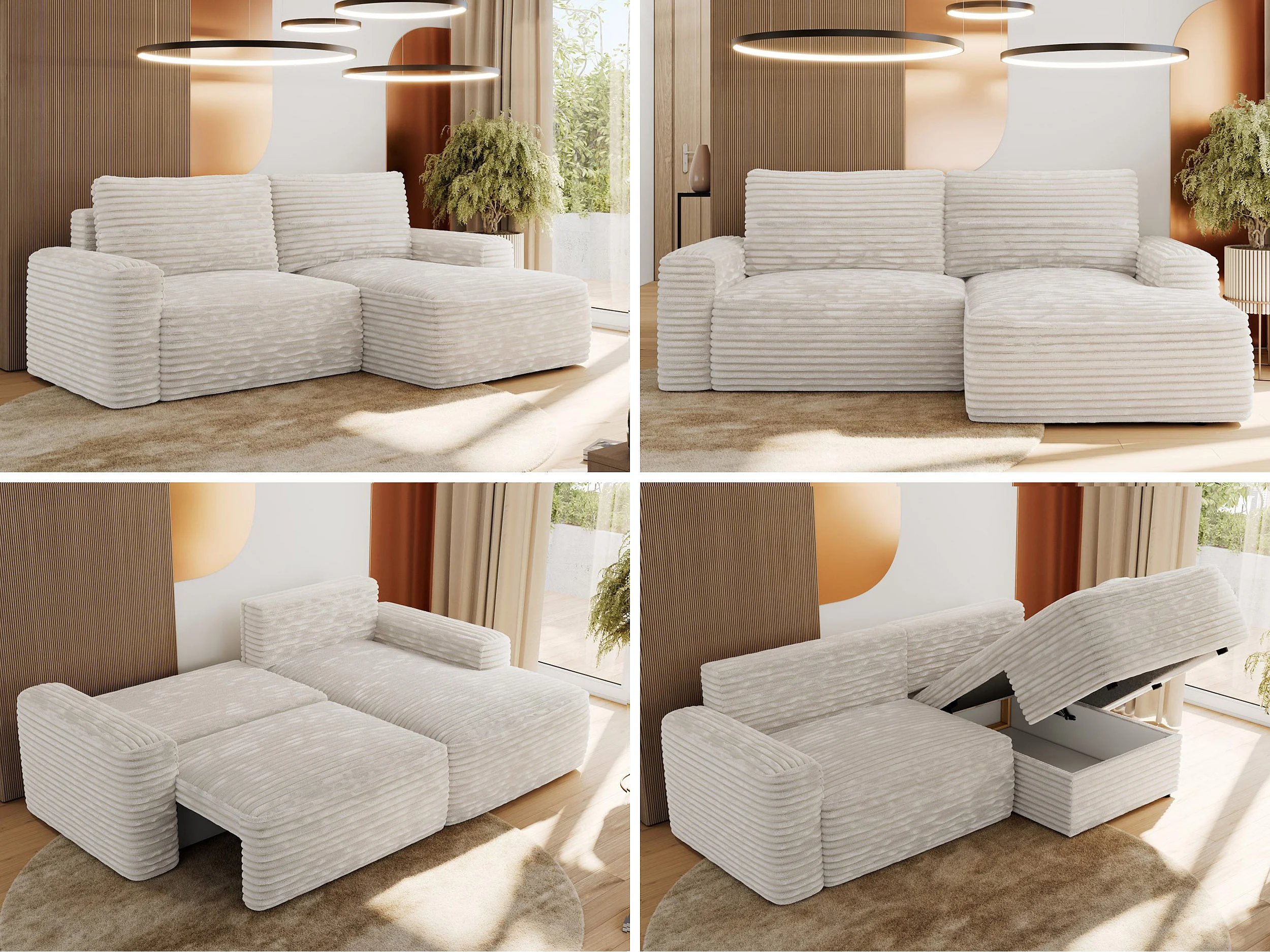 Ecksofa BELLUNO - Schlafsofa mit Bettkasten, Armlehnen, Couch L-form mit Schlaffunktion - Beige Cord - Ecke Rechts
