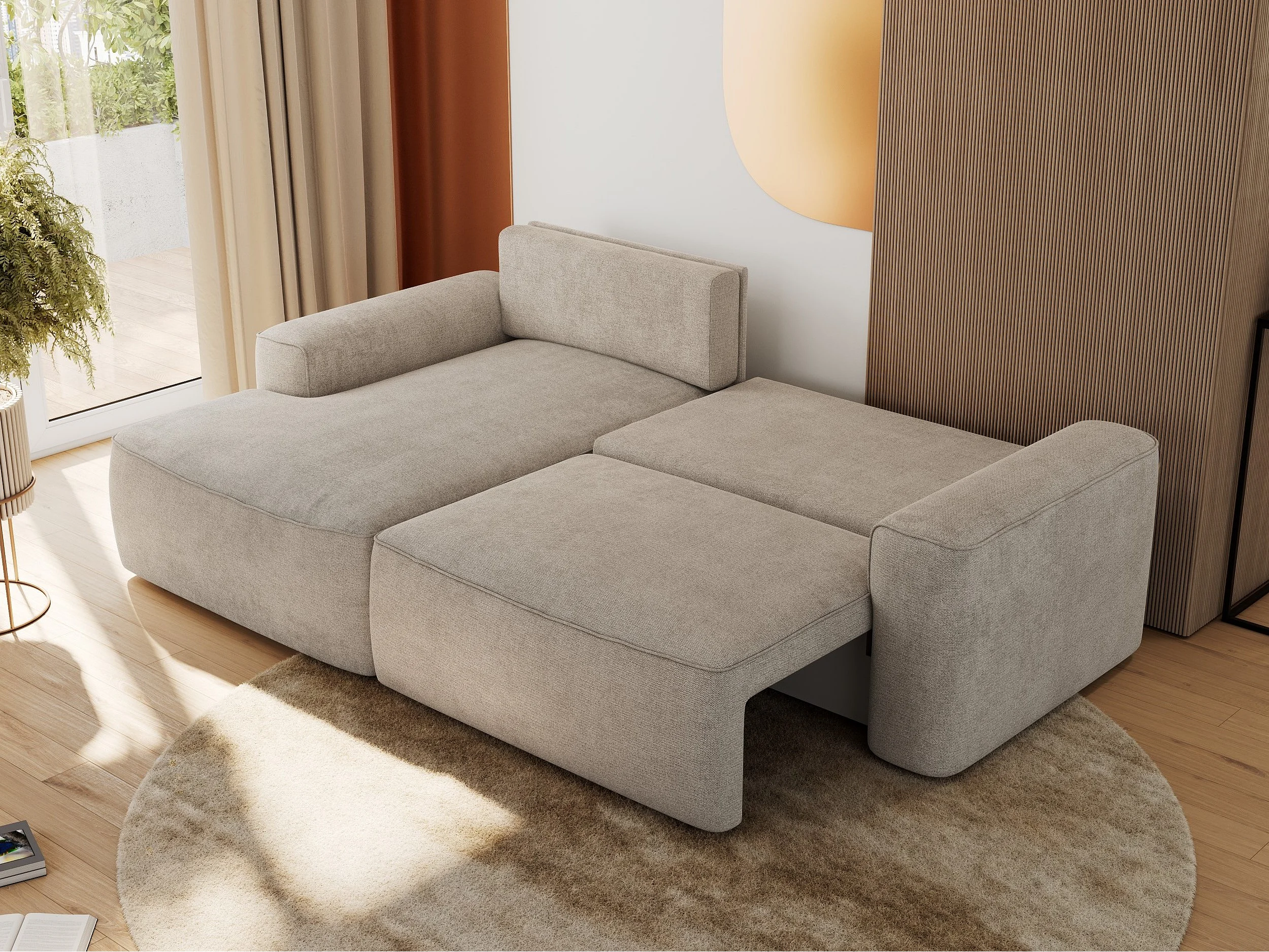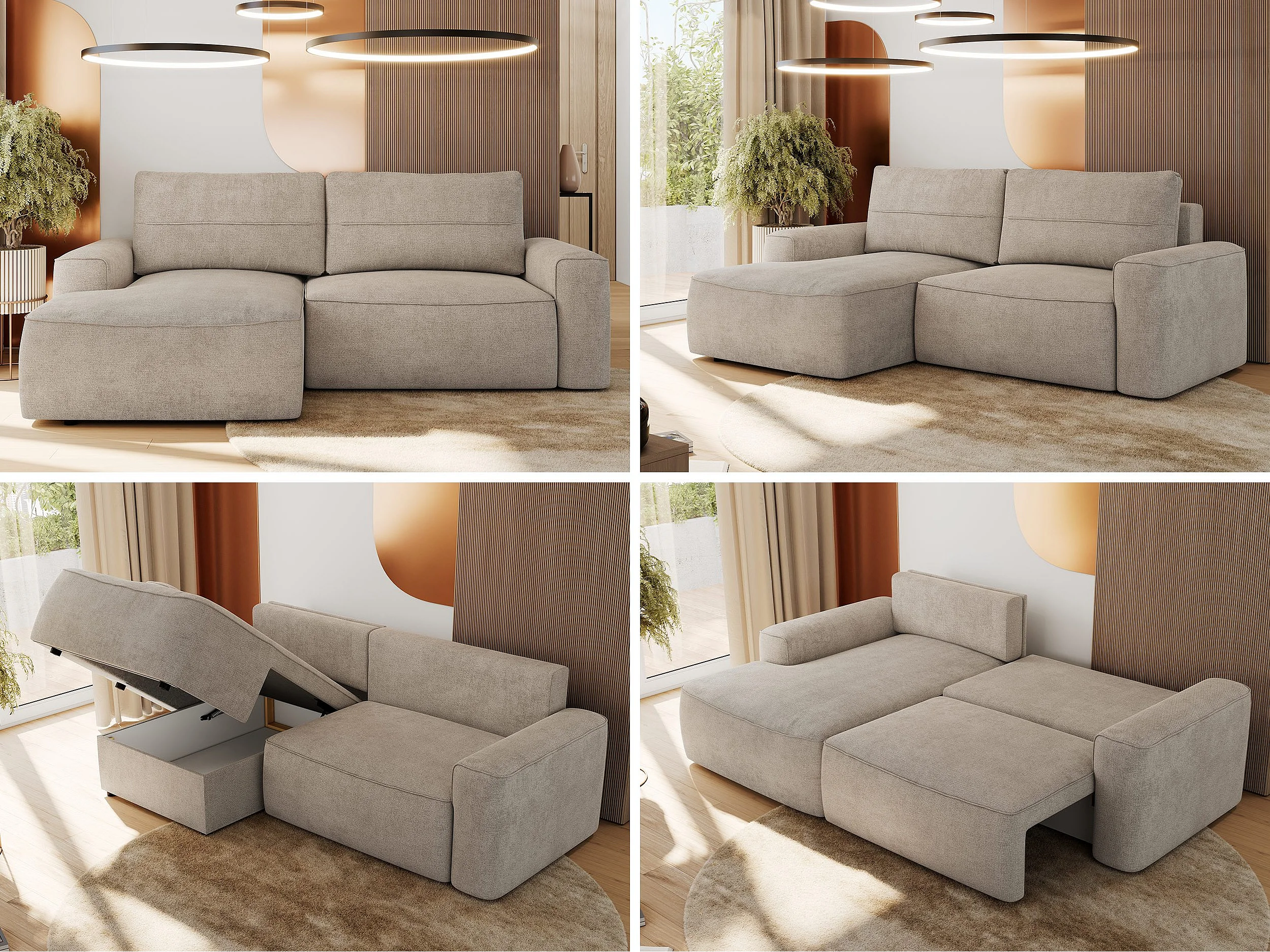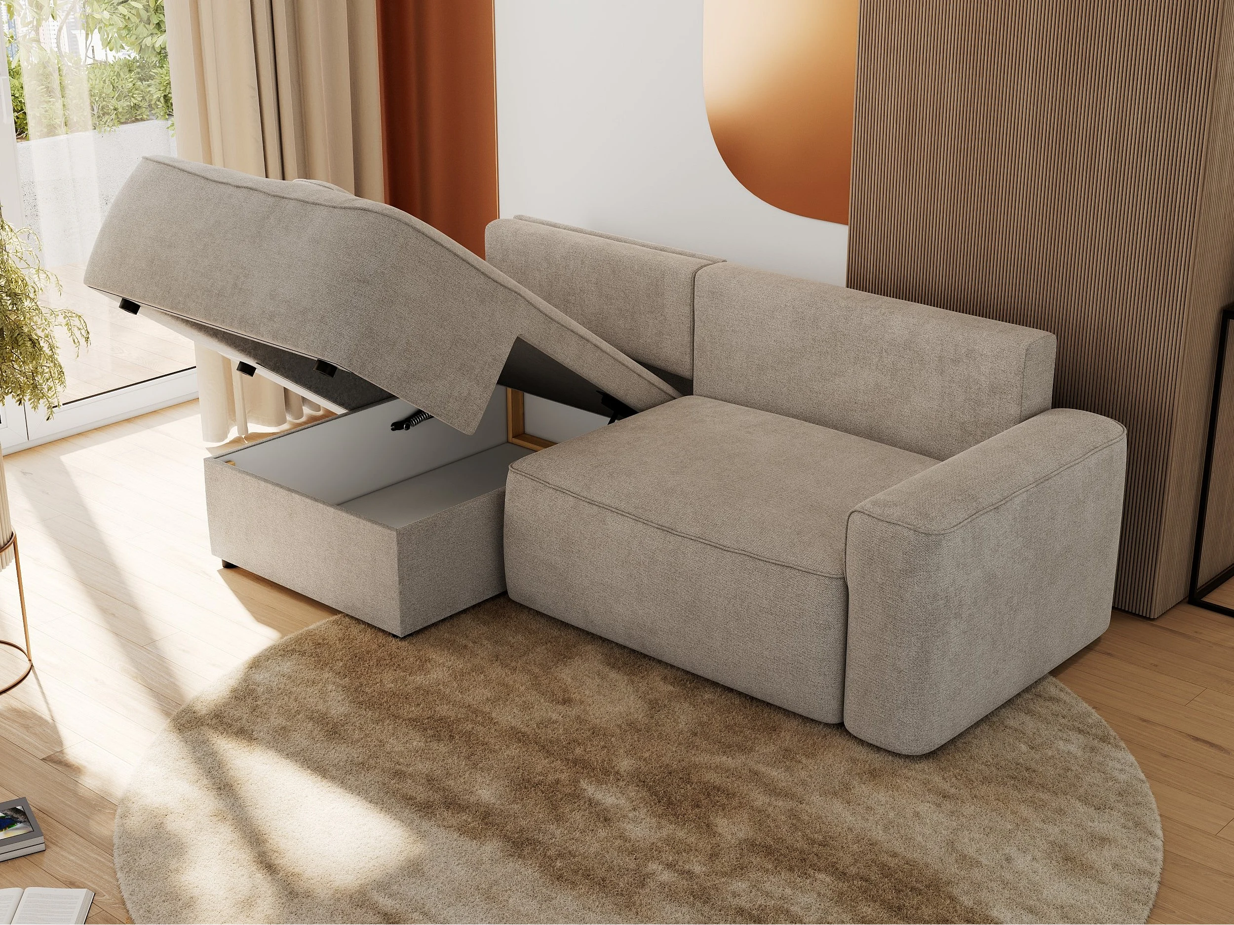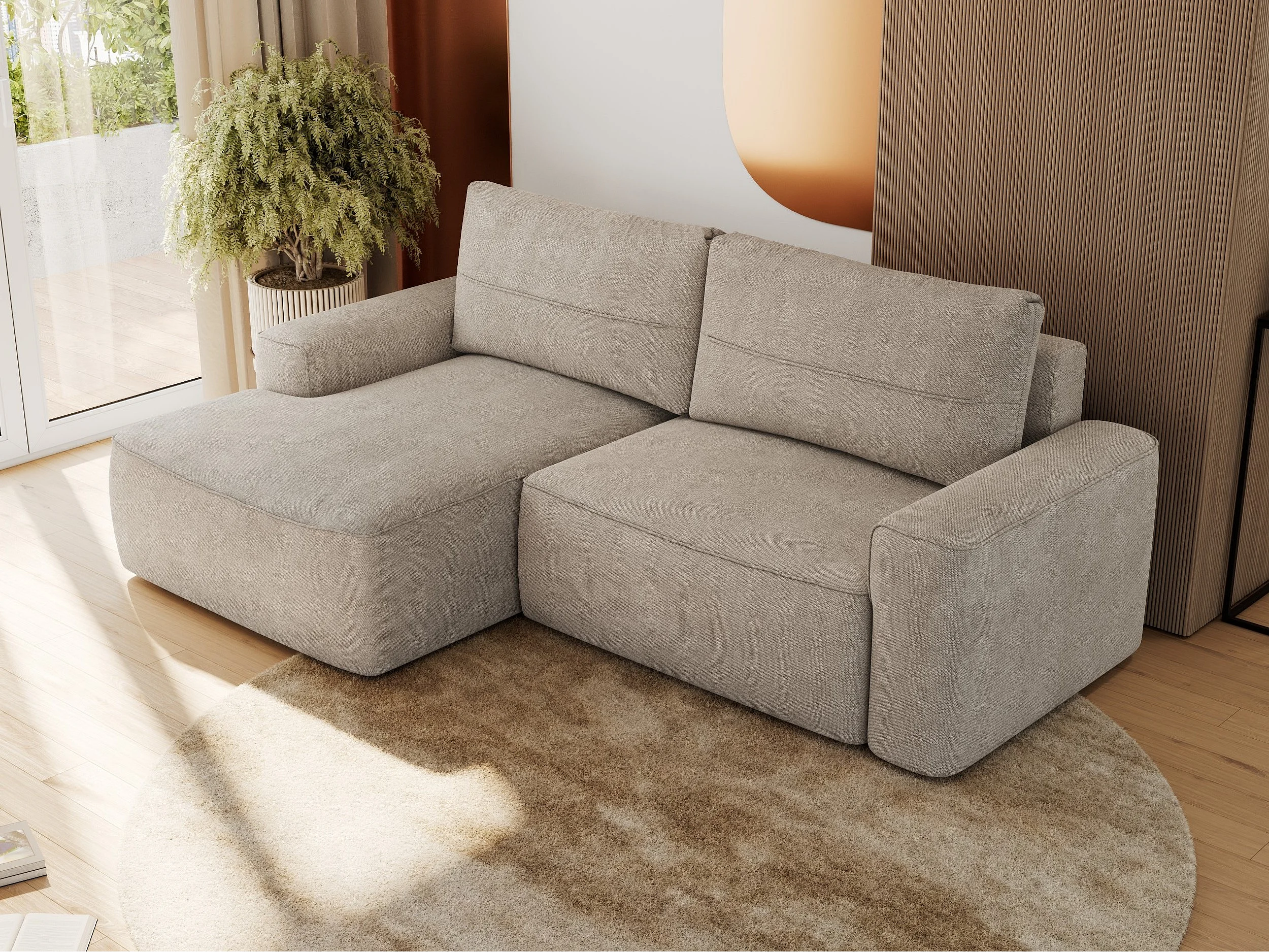 Ecksofa BELLUNO - Schlafsofa mit Bettkasten, Armlehnen, Couch L-form mit Schlaffunktion - Beige Strukture - Ecke Links