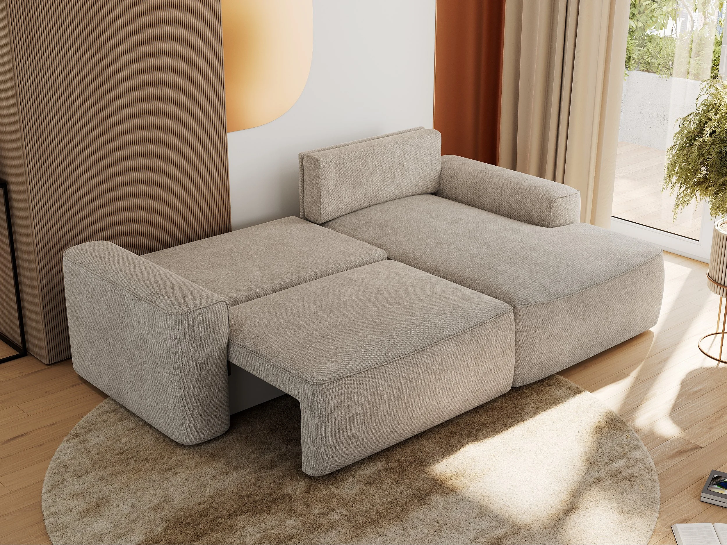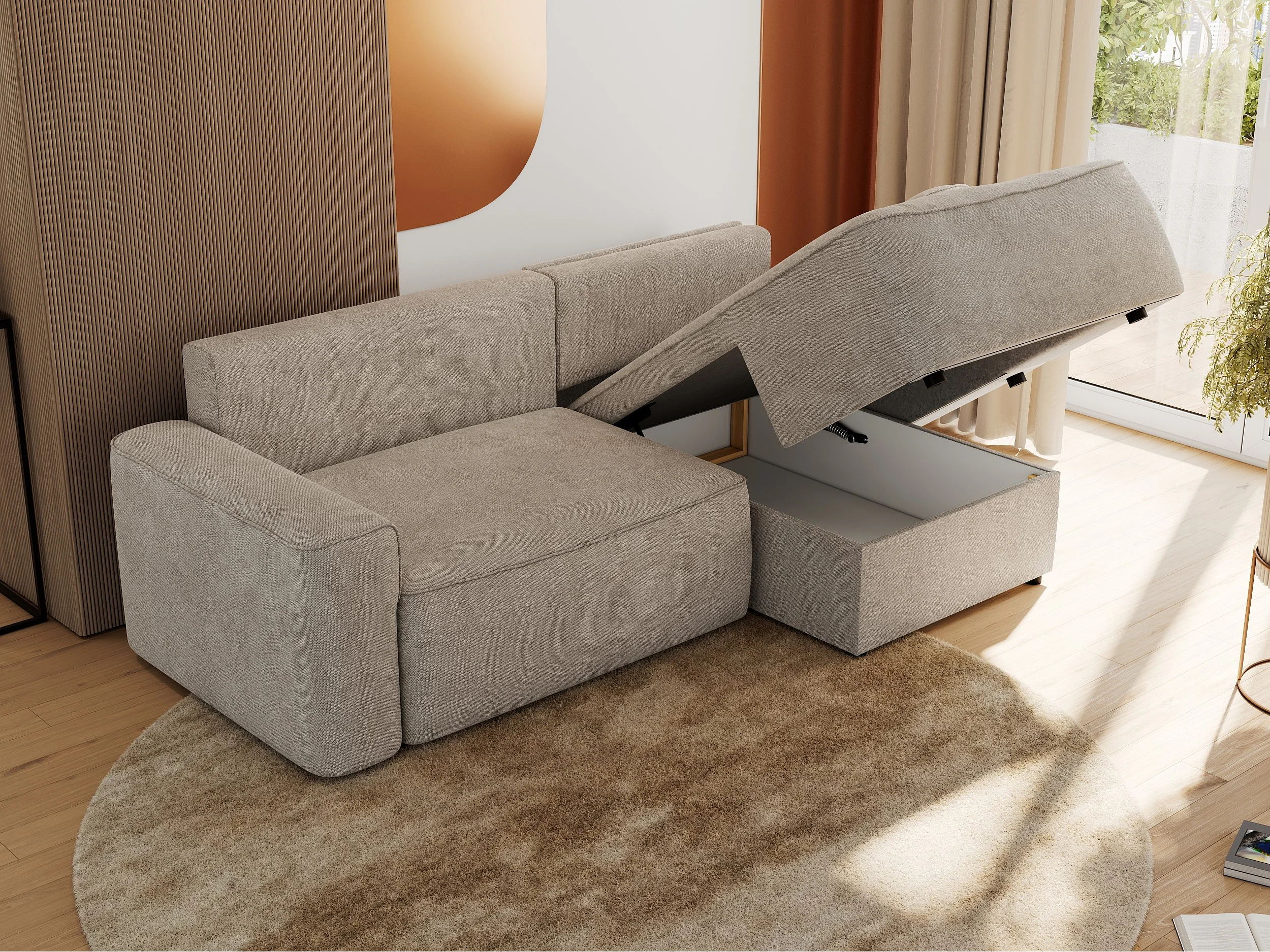 Ecksofa BELLUNO - Schlafsofa mit Bettkasten, Armlehnen, Couch L-form mit Schlaffunktion - Beige Strukture - Ecke Rechts