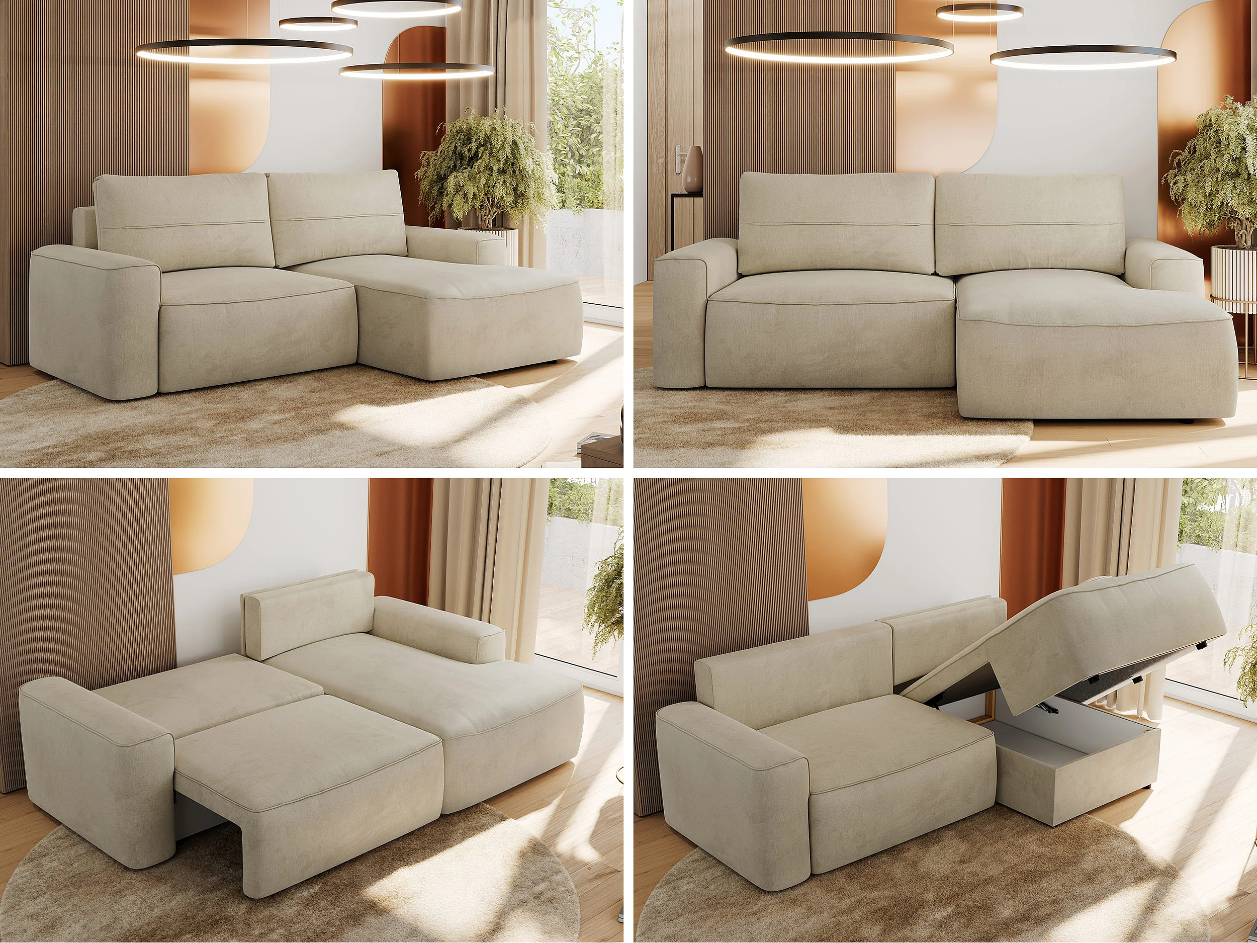 Ecksofa BELLUNO - Schlafsofa mit Bettkasten, Armlehnen, Couch L-form mit Schlaffunktion - Beige Velvet - Ecke Rechts